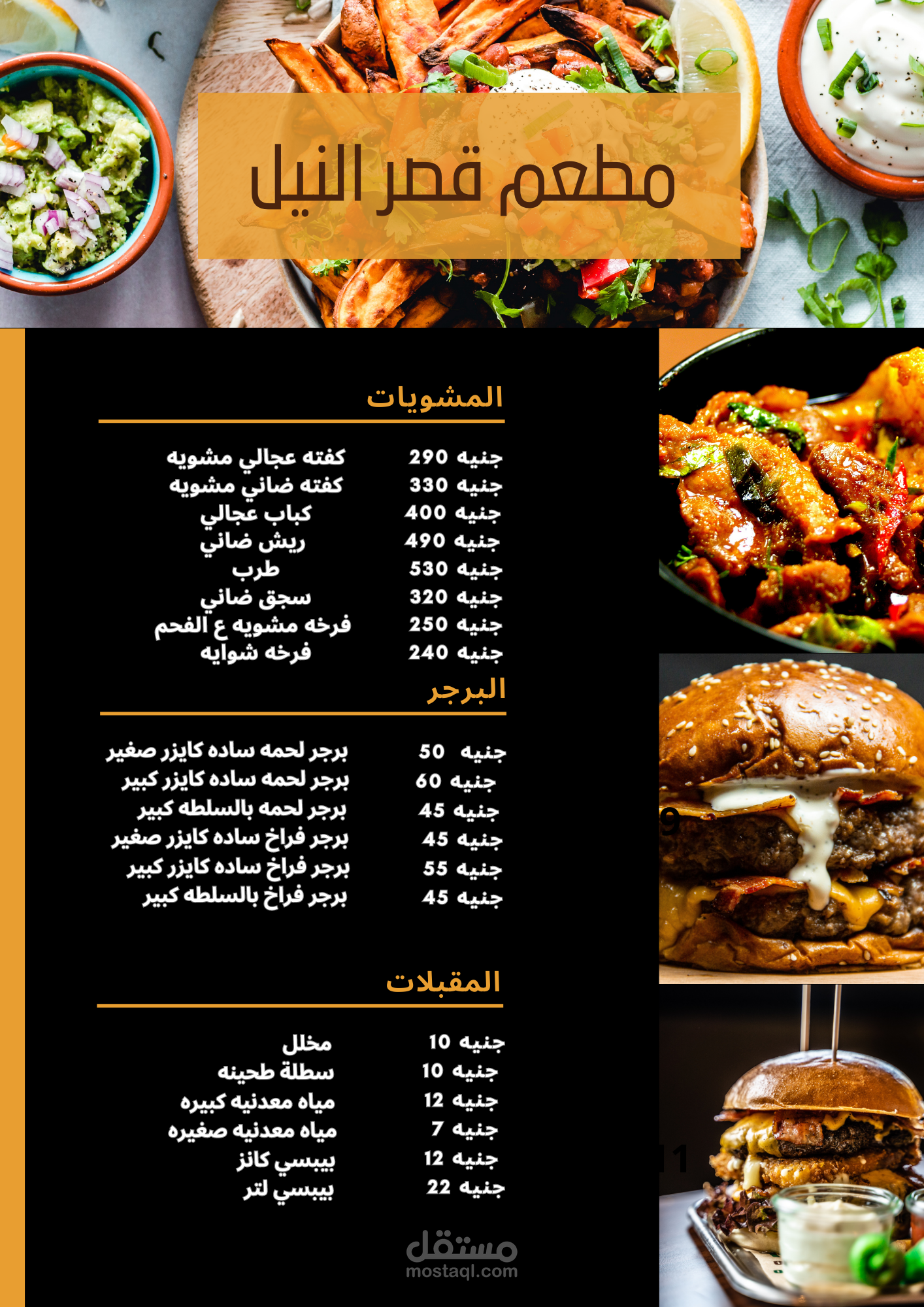 عمل منيو كامل لمطعم مختص بالمشاوي والبرجر