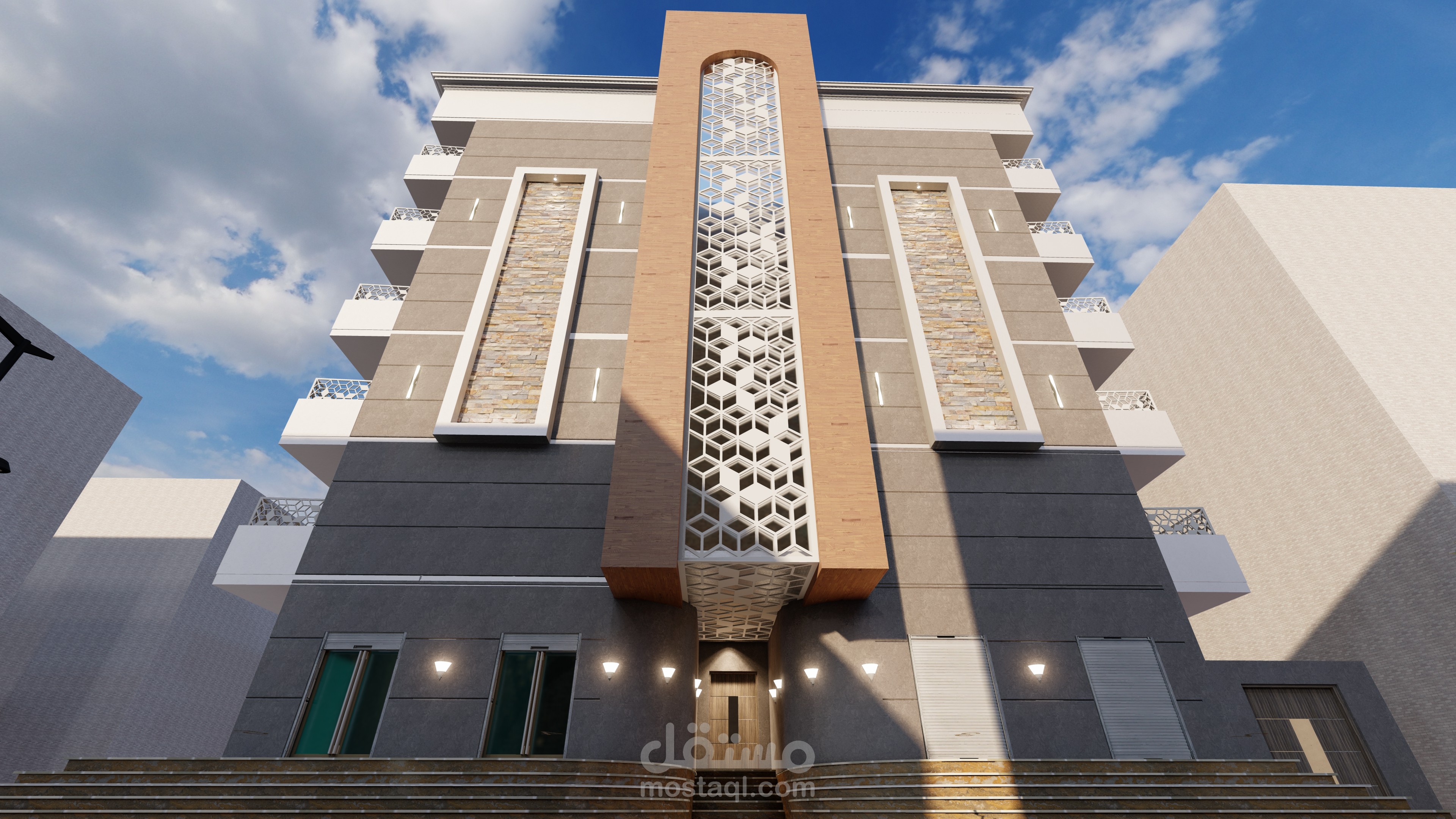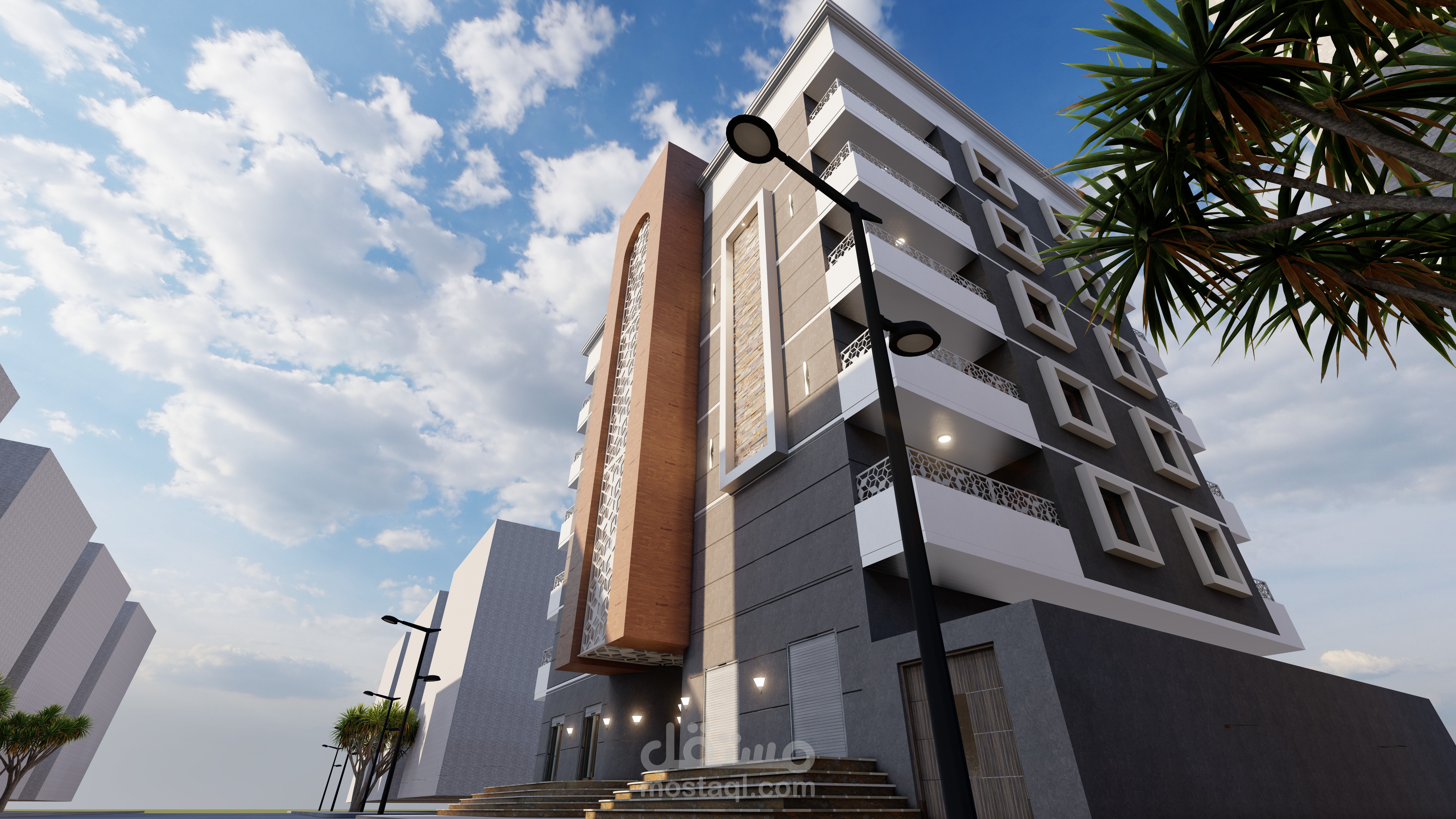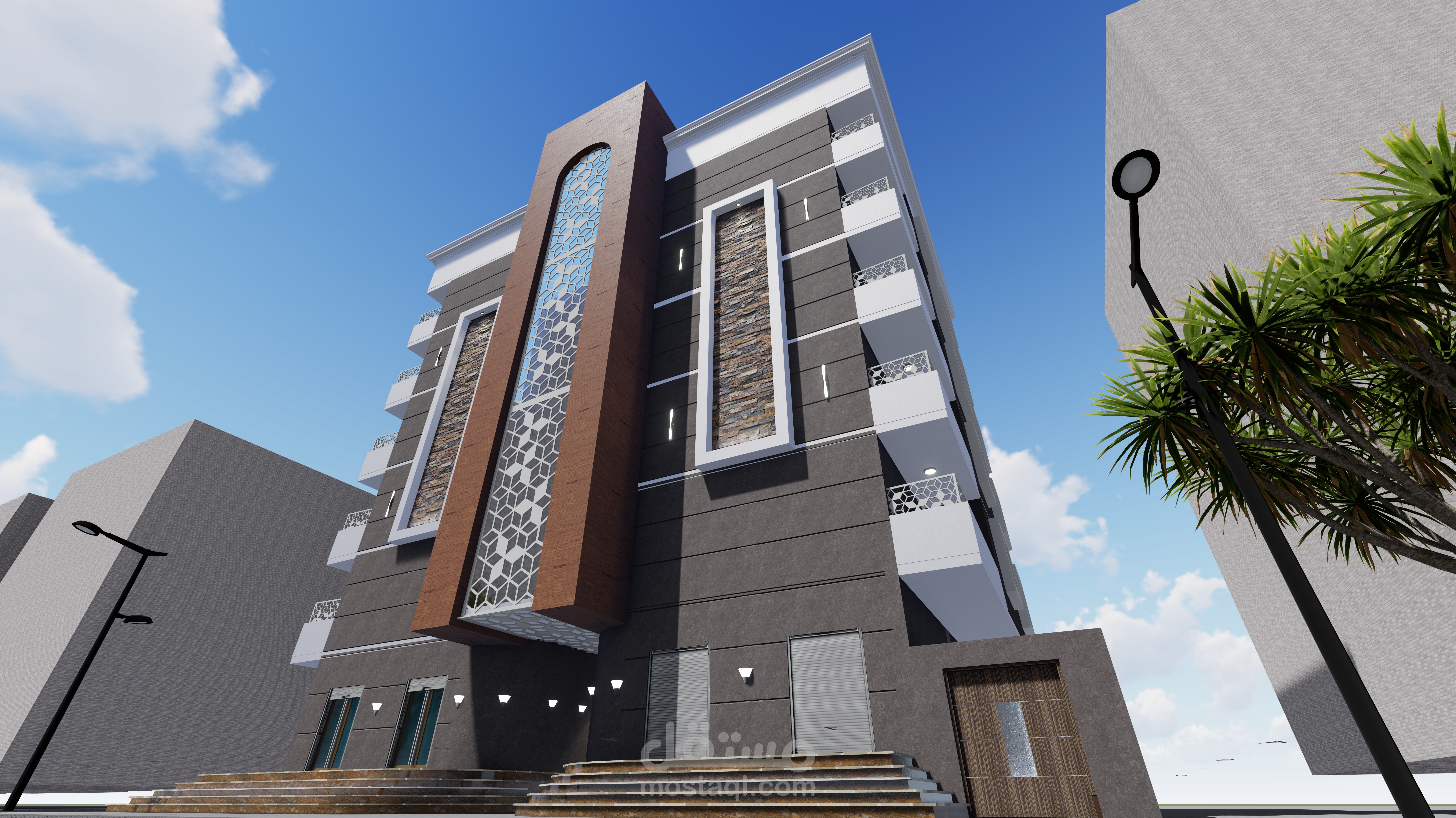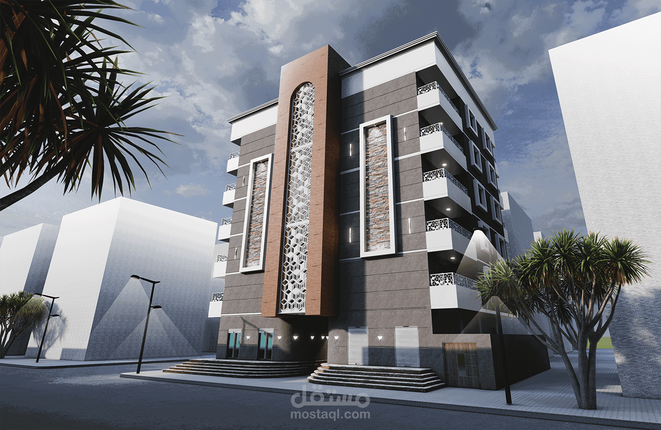 مبنى سكني تجاري مكون من 5 طوابق الارضي محلات تجارية والطوابق العلوية شقق سكنية الموقع في السودان