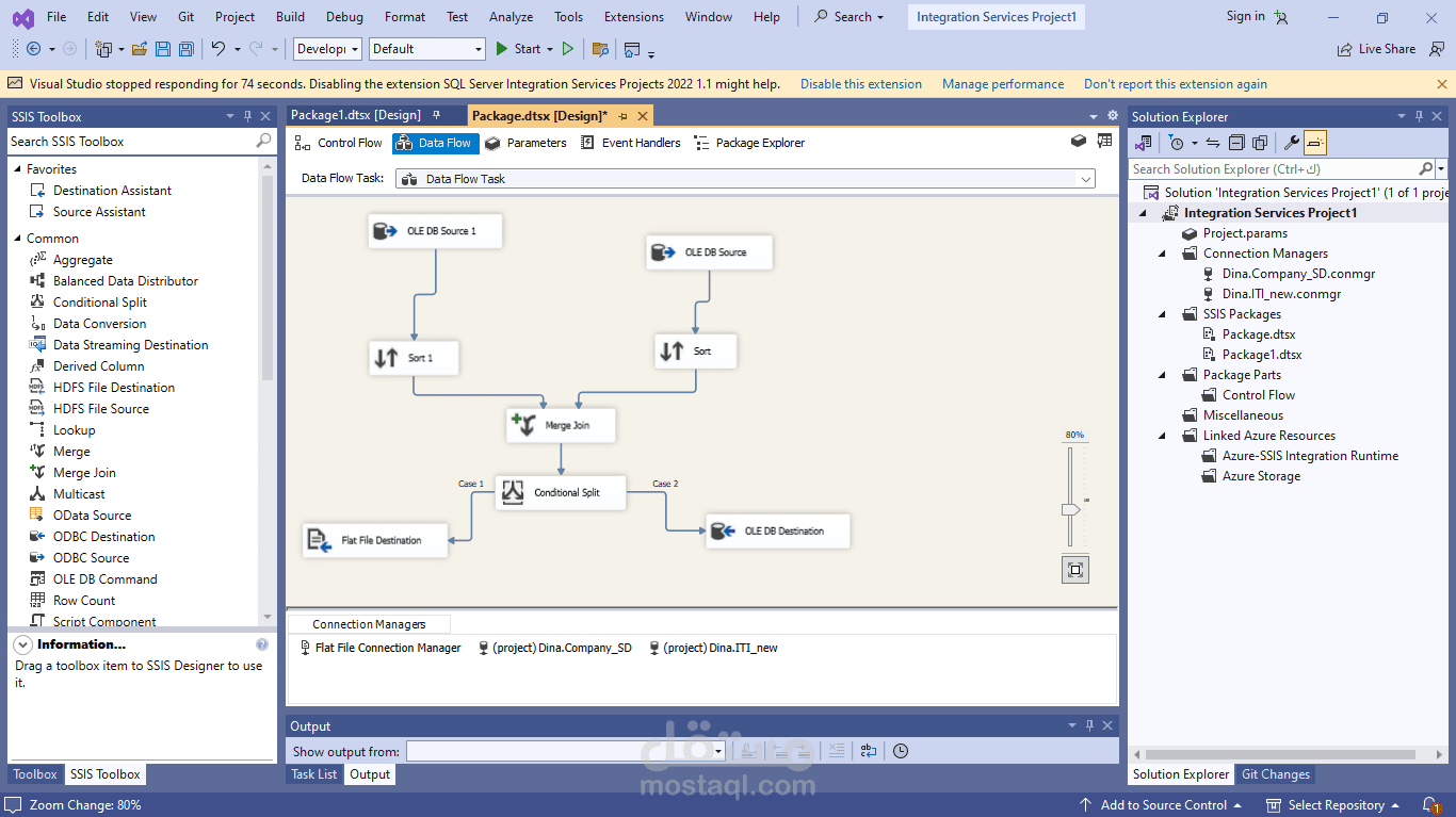 In this SSIS (SQL Server Integration Services) project, the primary objective is to integrate and transform data from two distinct databases, facilitating the seamless flow of information between systems. The project consists of two key packages, each designed to extract, process, and load data according to specific criteria. Here is an overview of the project's components: