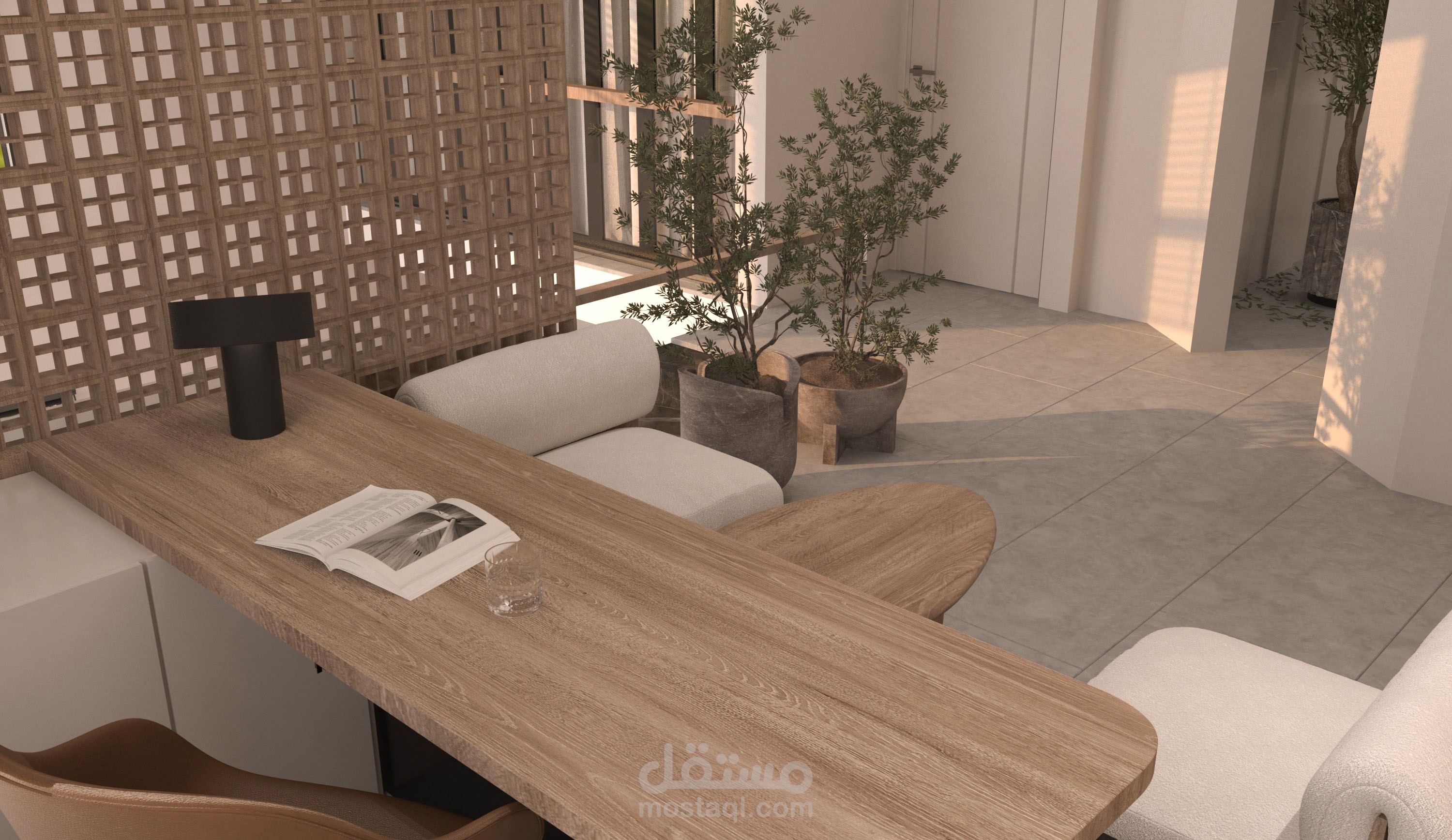 With the use of white and beige cladding materials. Which gave amplitude to the void