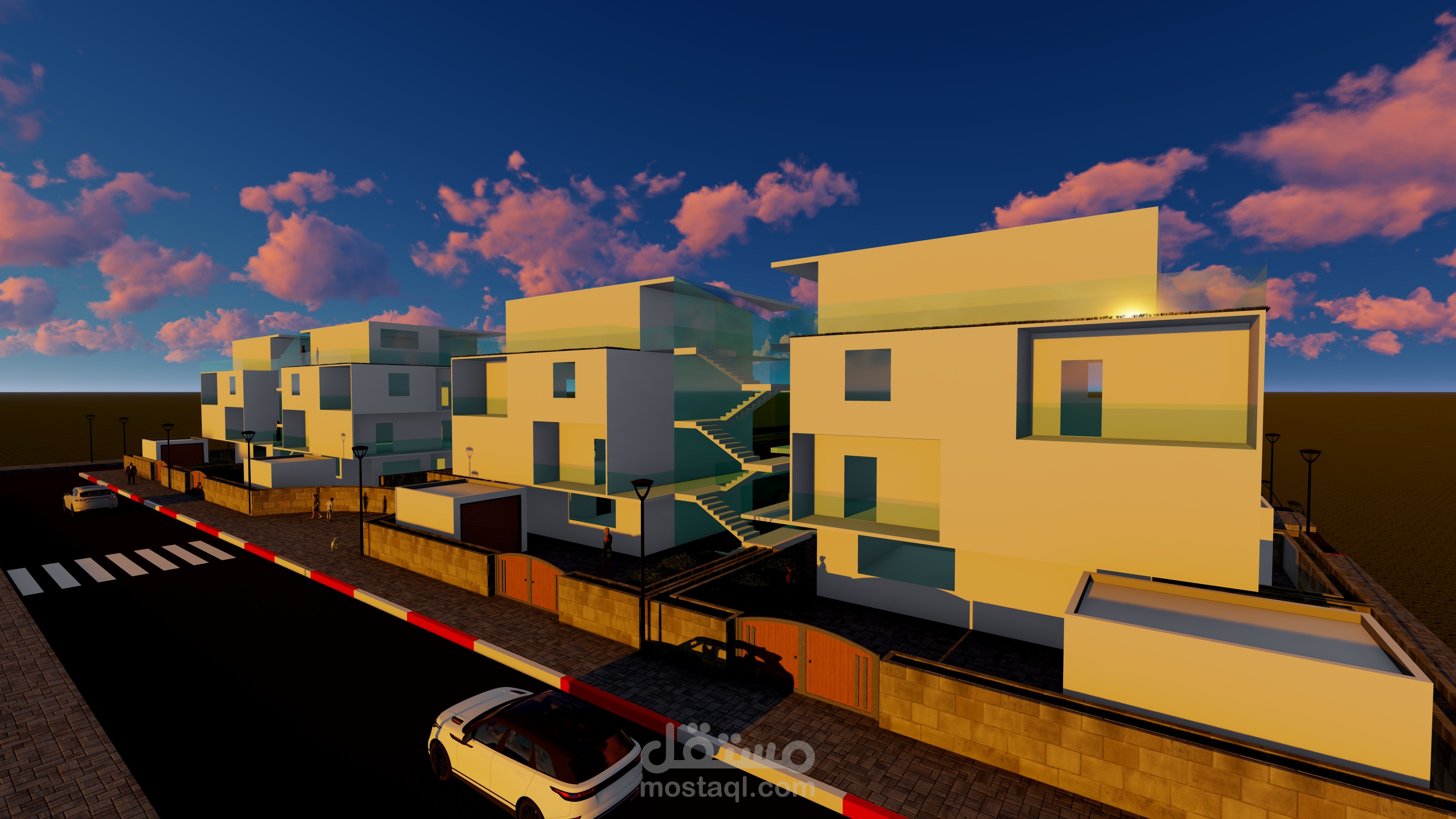 The project consists of a semi-collective housing complex comprising 4 units, with each unit containing two duplexes. The structure of the units is R+3. The houses are semi-detached, and in their design, an open floor plan was utilized.