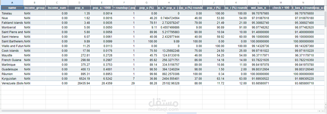 Imported WHO water access dataset into Google Sheets and cleaned data to ensure accurate analysis.