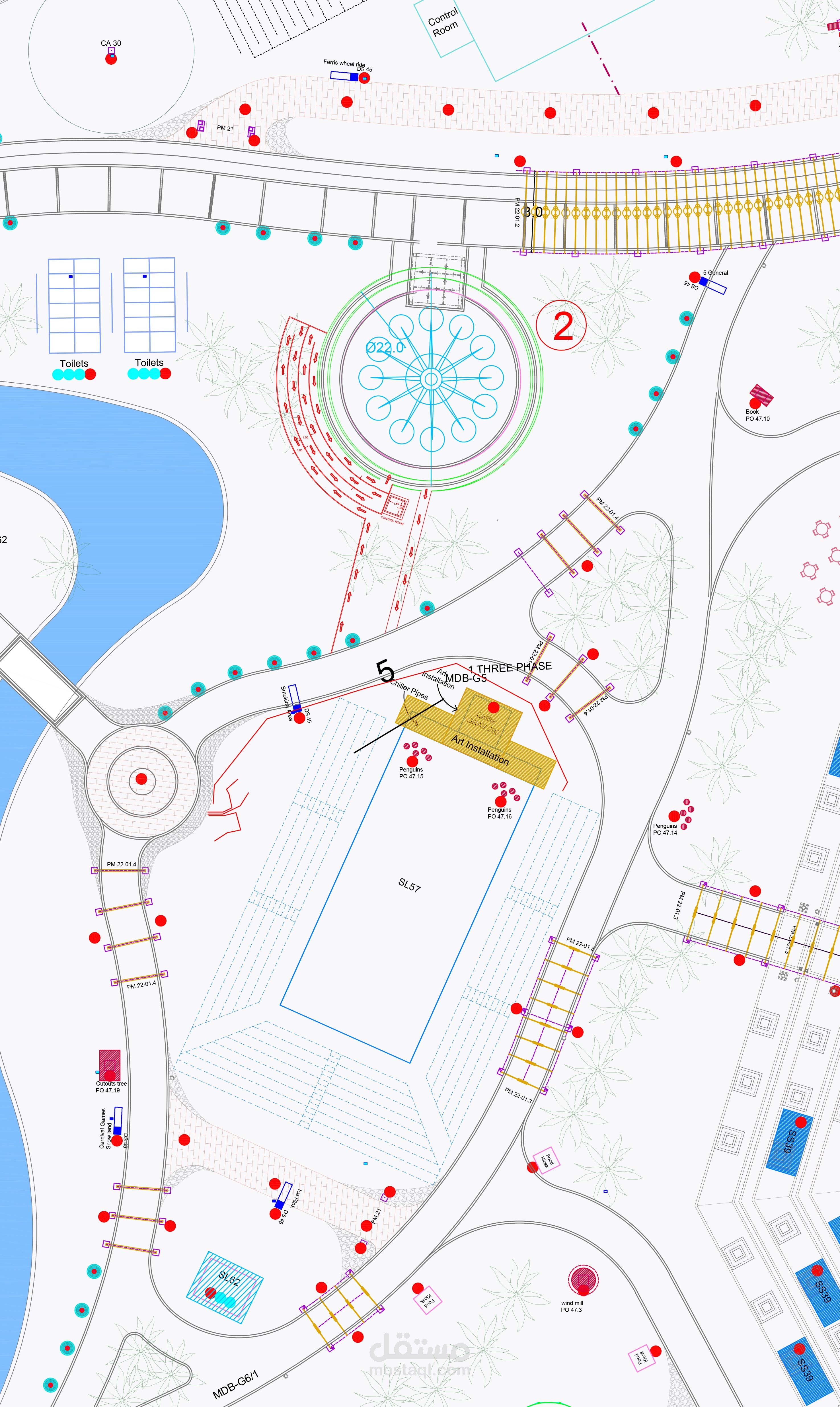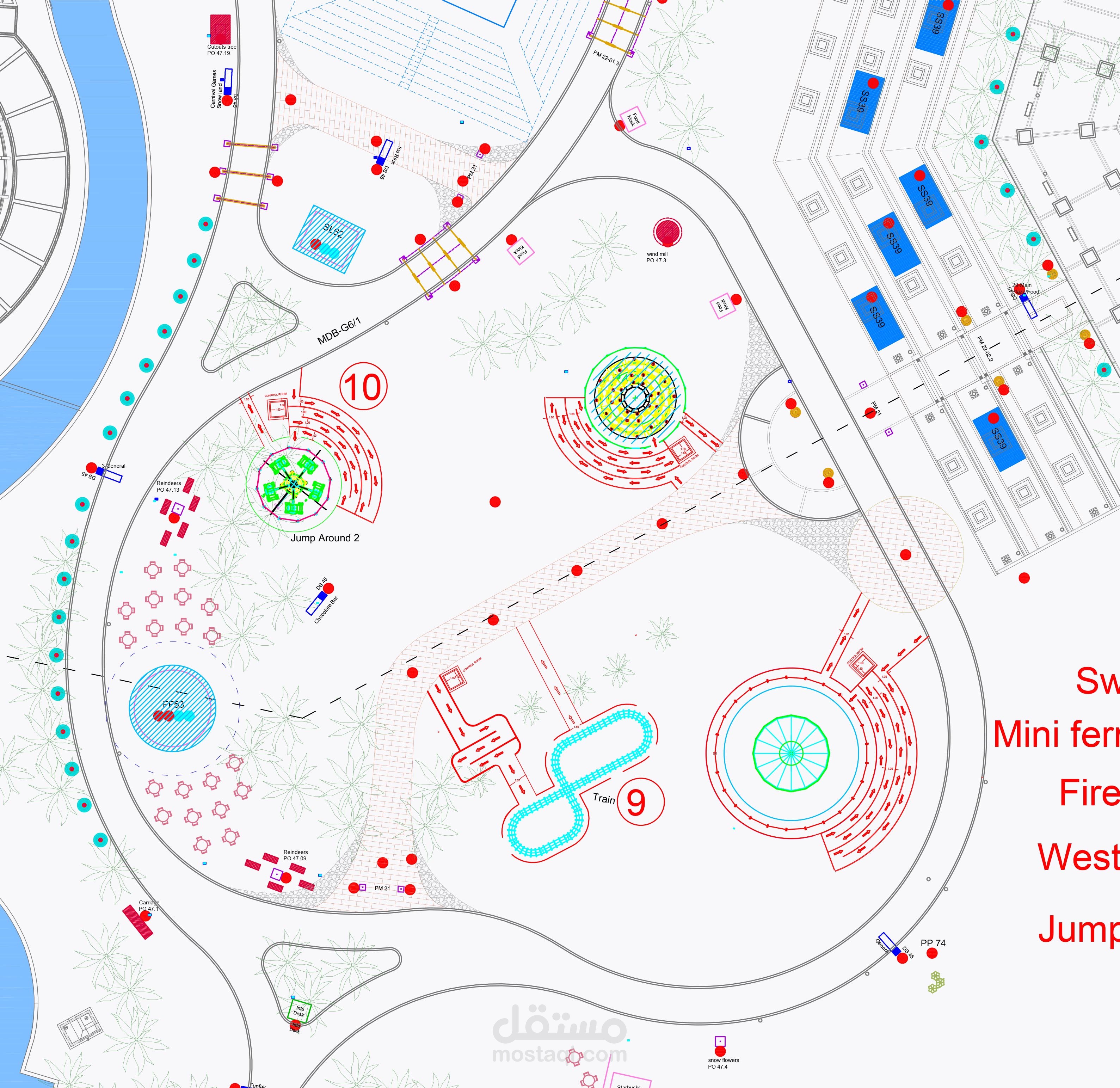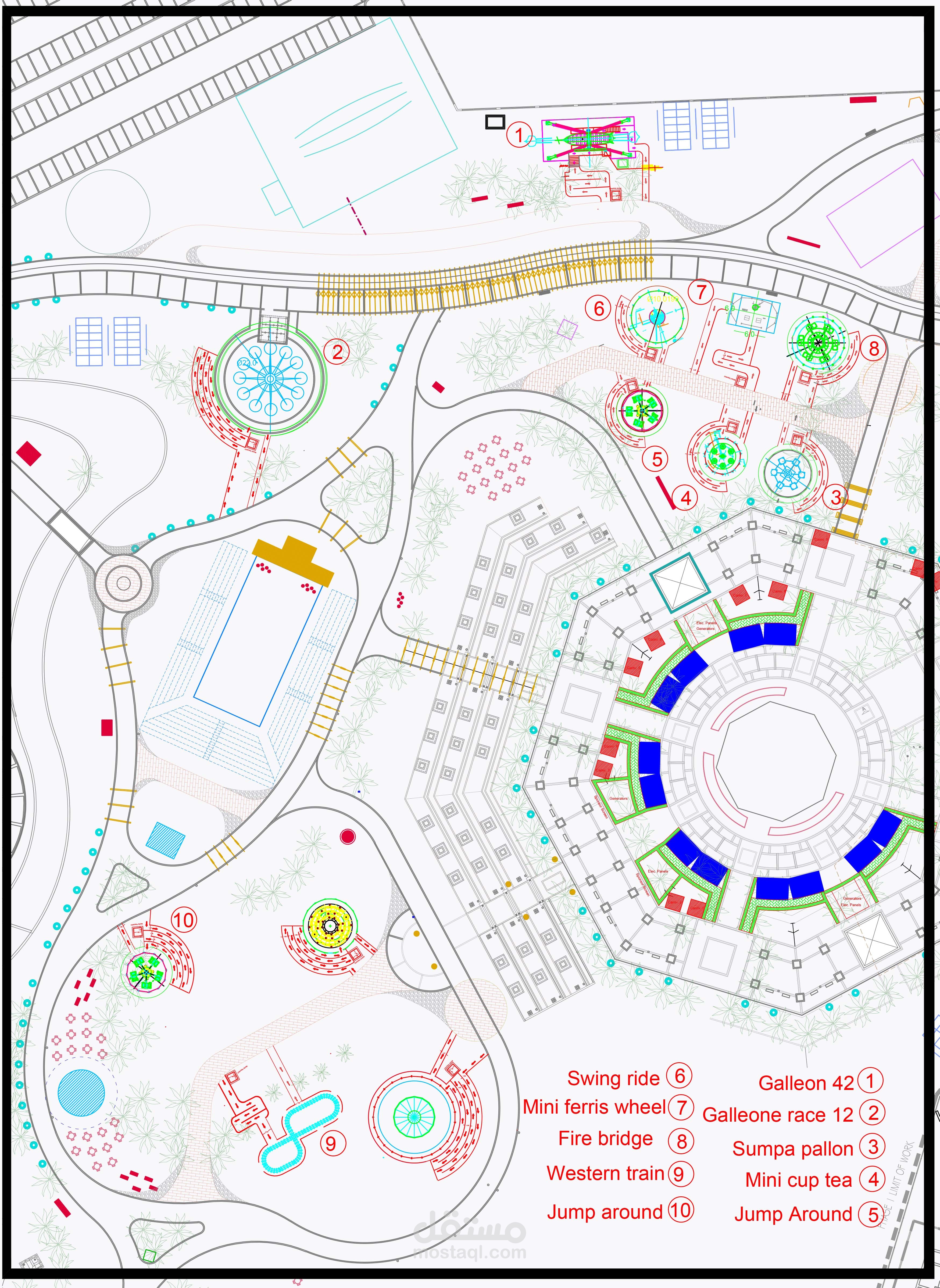 وضع مقترح لأماكن الألعاب لتتناسب مع اللاند سكيب و عمل ممرات الحركه