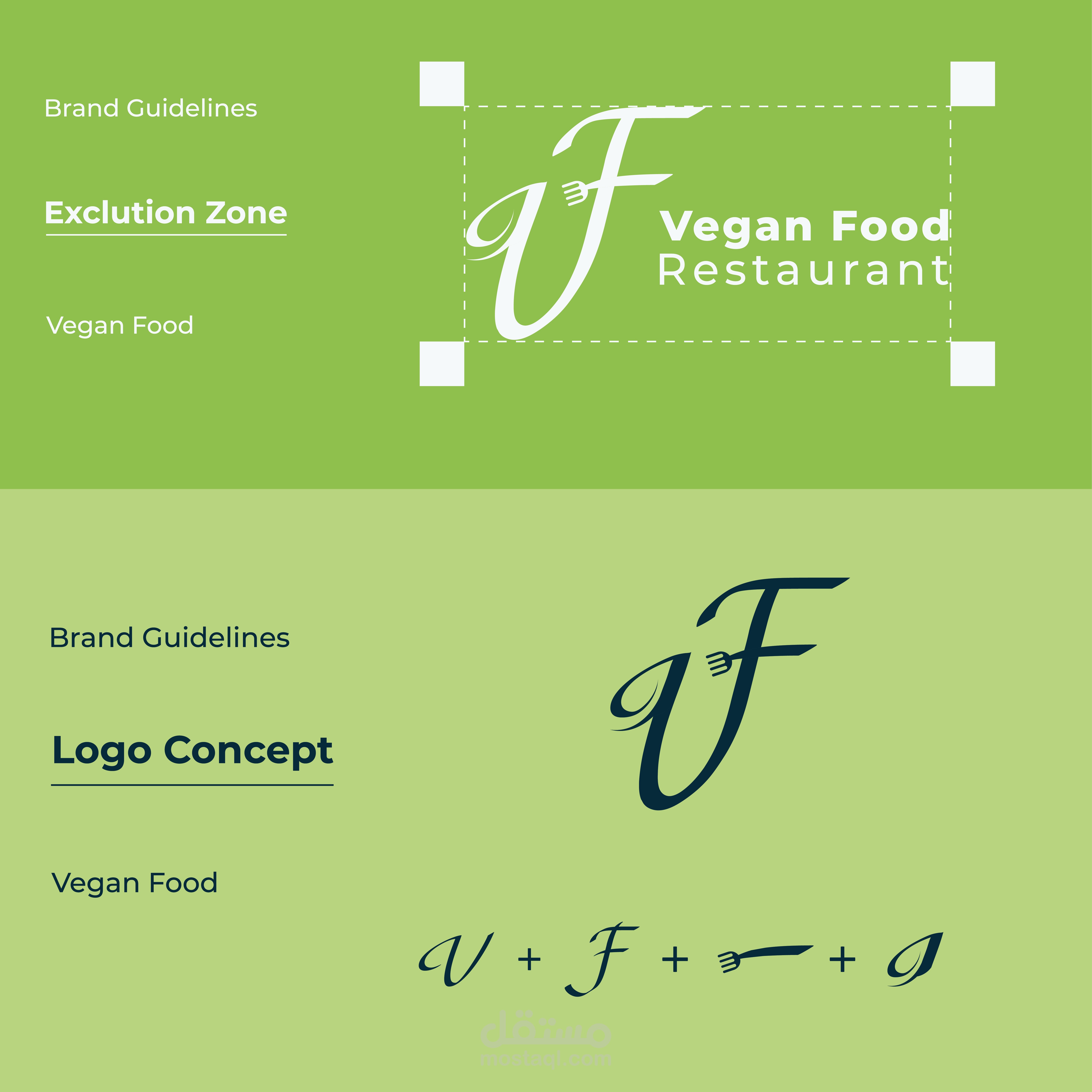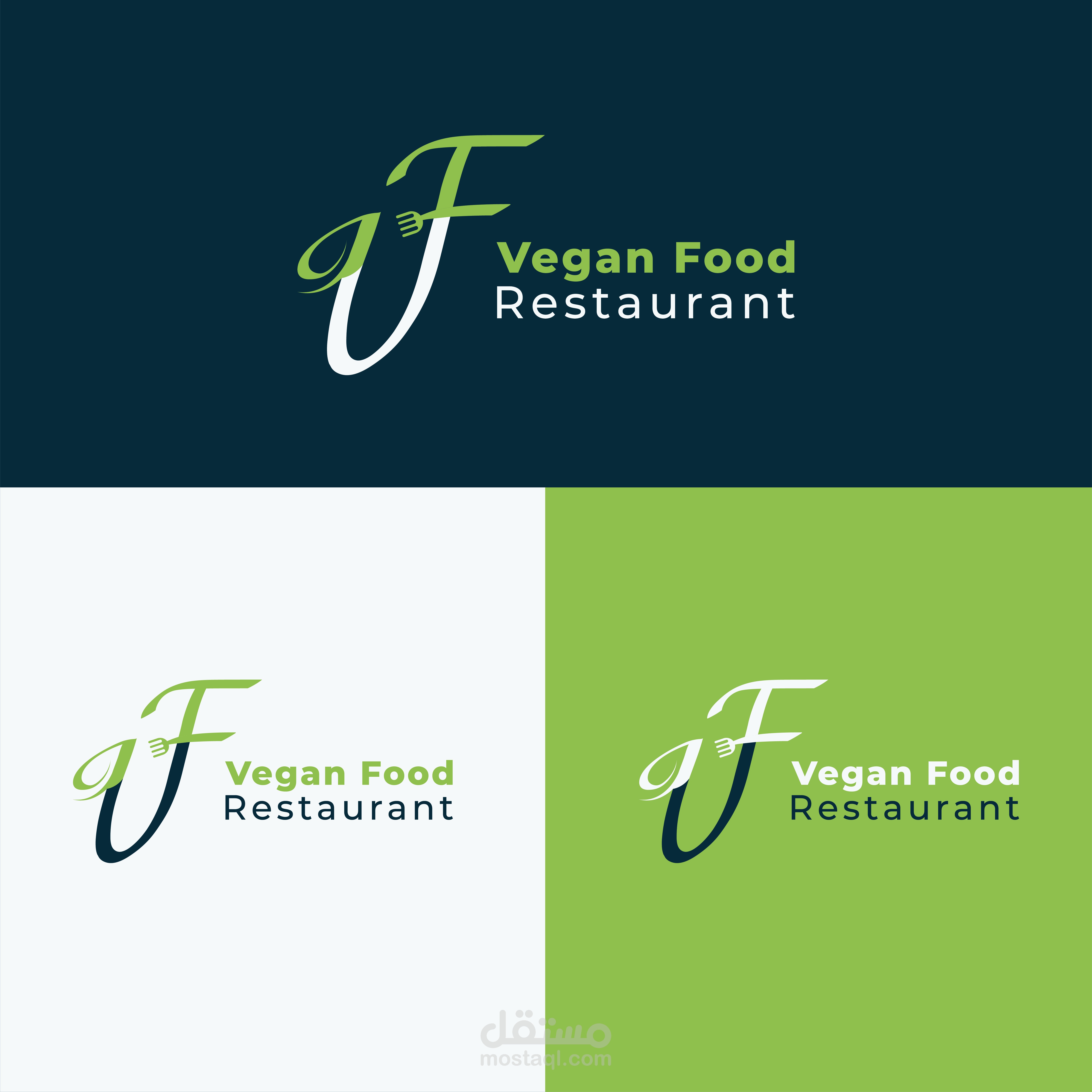 شعار Vegan Food تشير الورقة الخضراء إلى الأطعمة النباتية الصحية، بينما يشير القلب إلى الشغف والاهتمام بالبيئة ورفاهية الحيوان. تشير الشوكة إلى أن Vegan Food تقدم مجموعة متنوعة من الأطعمة النباتية اللذيذة