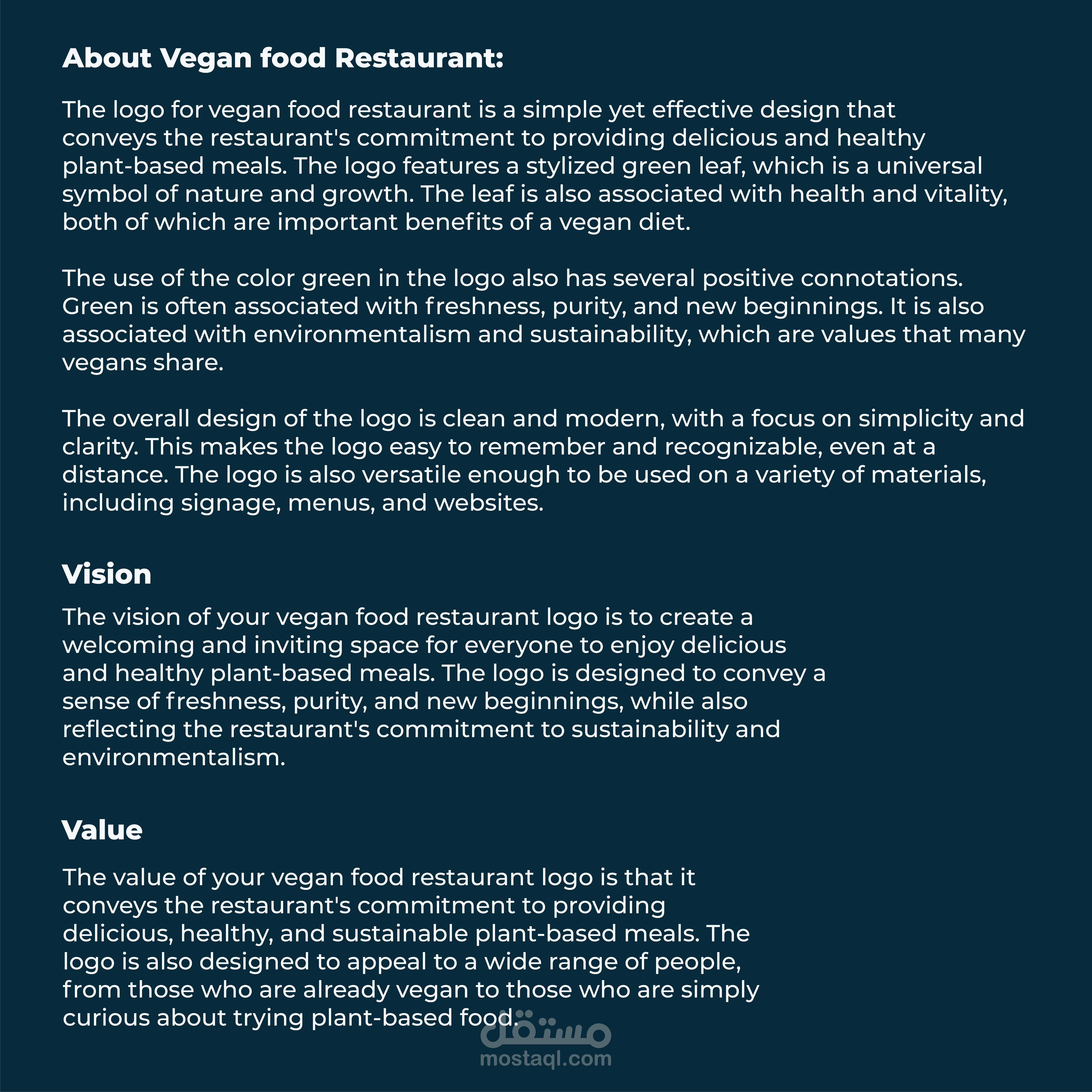 بشكل عام، يعكس شعار Vegan Food التزام الشركة بتقديم مجموعة متنوعة من الأطعمة النباتية الصحية واللذيذة، التي يتم تقديمها بشغف واهتمام.