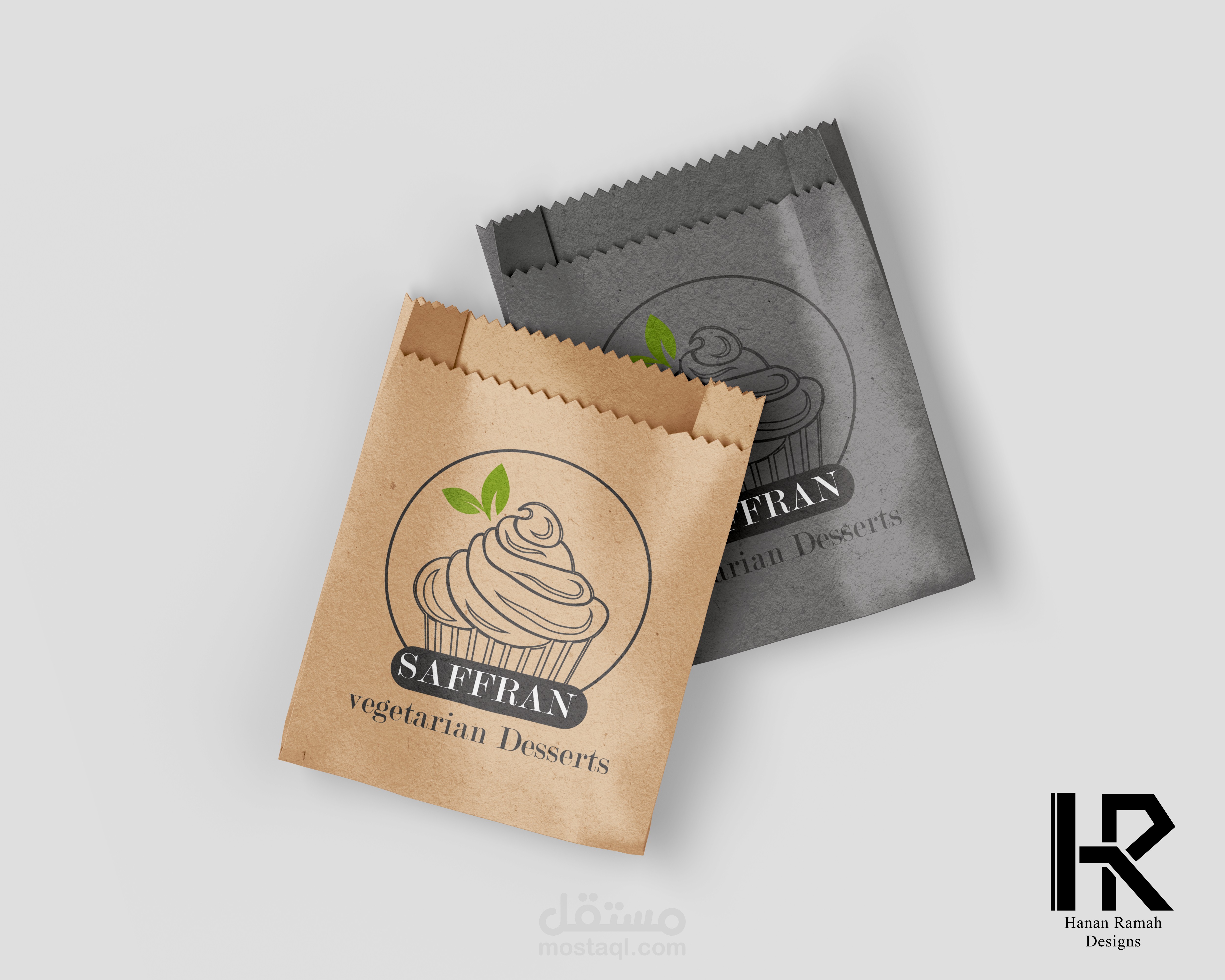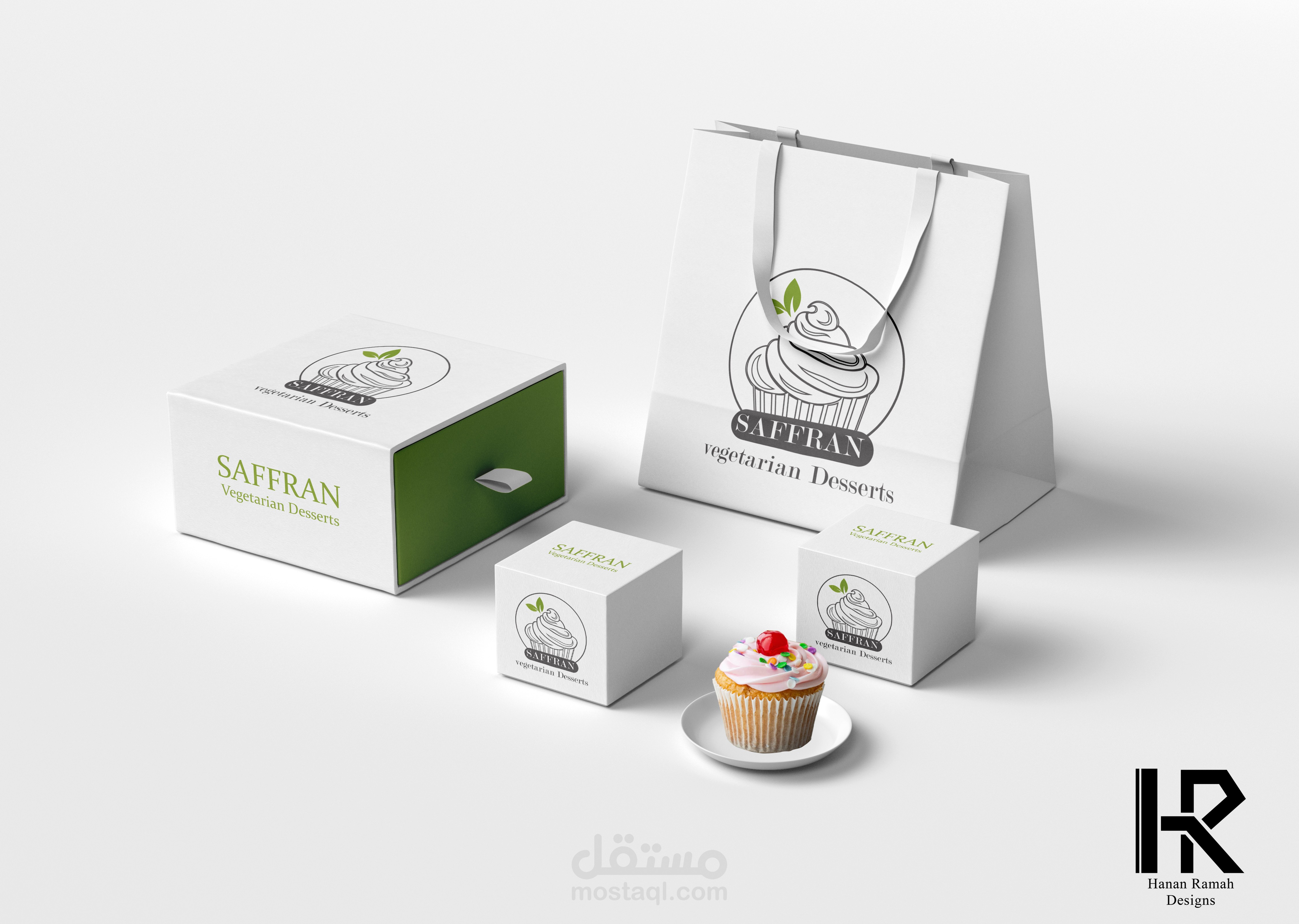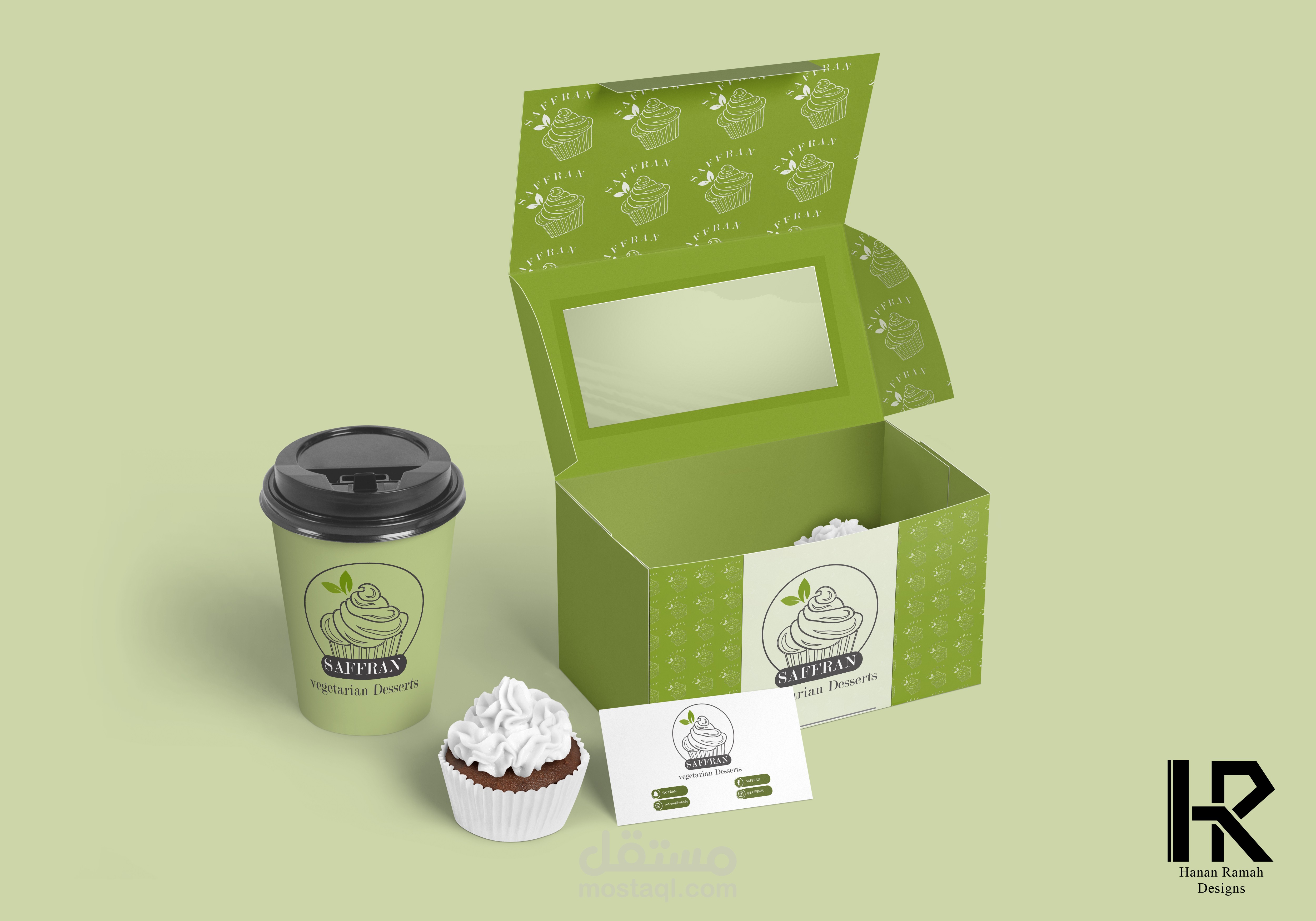تصميم شعار محل حلويات نباتية مع تصميم الكارت الخاص به والاشياء الخاصة بالتعبئة والتغليف