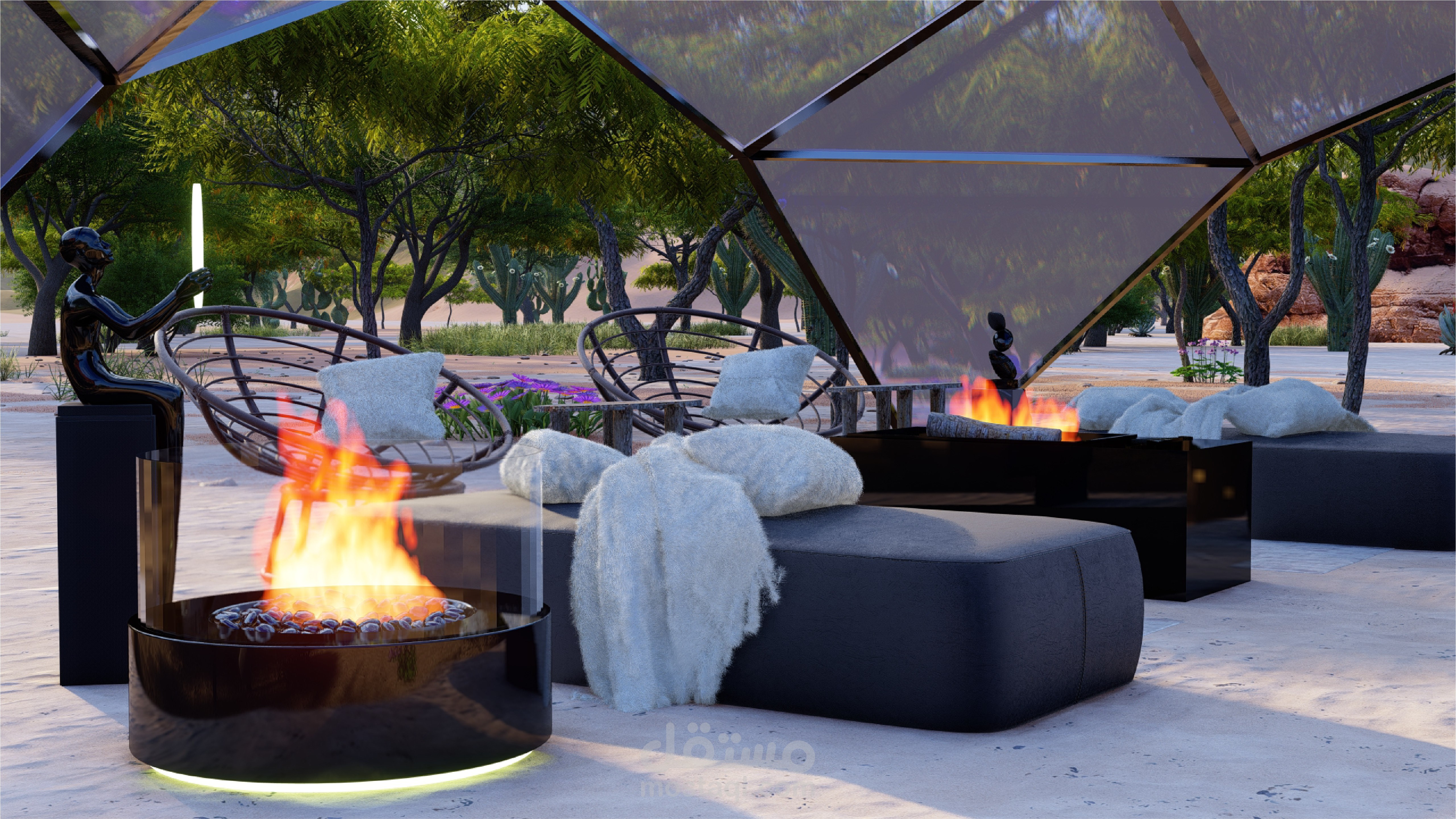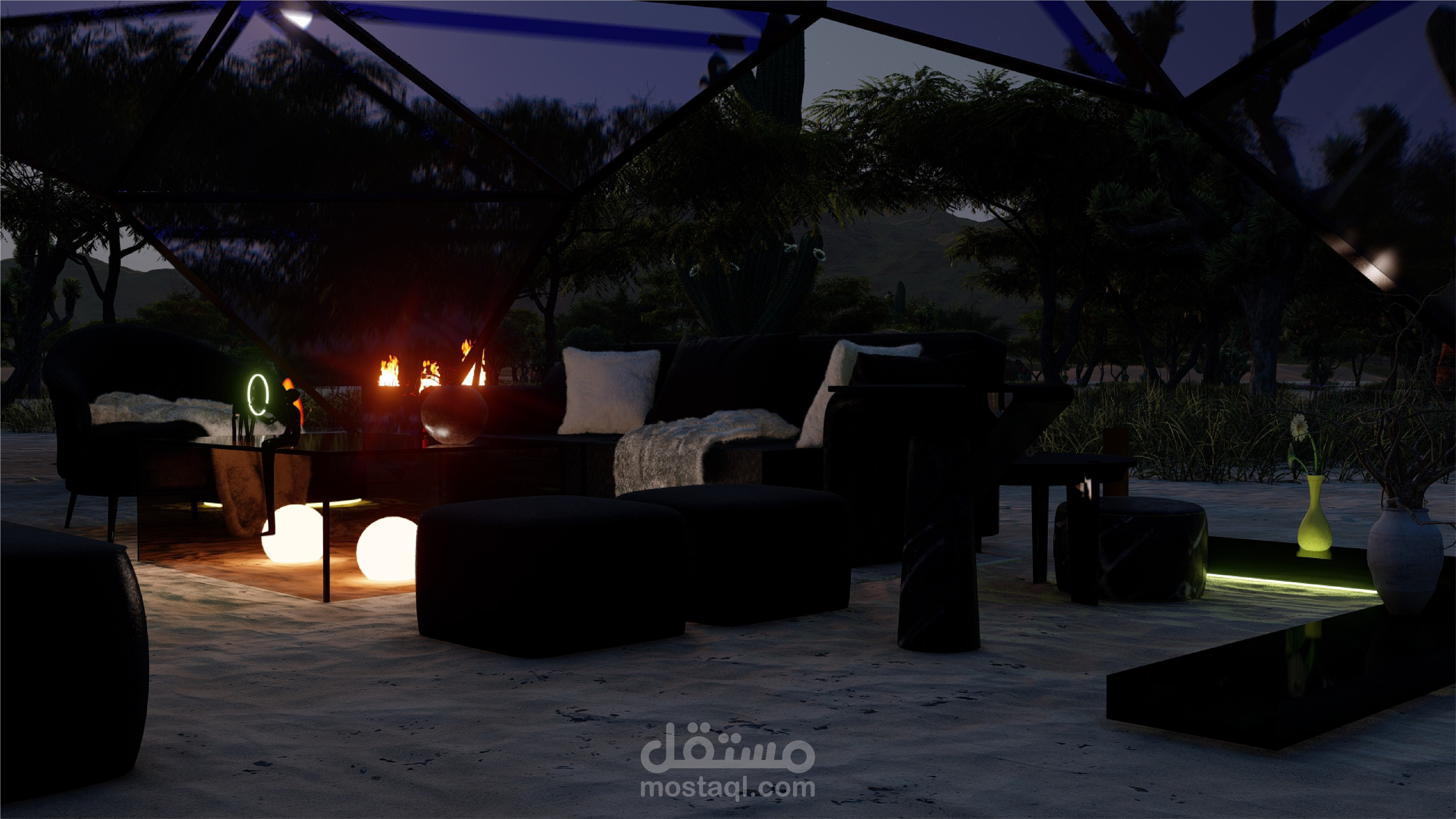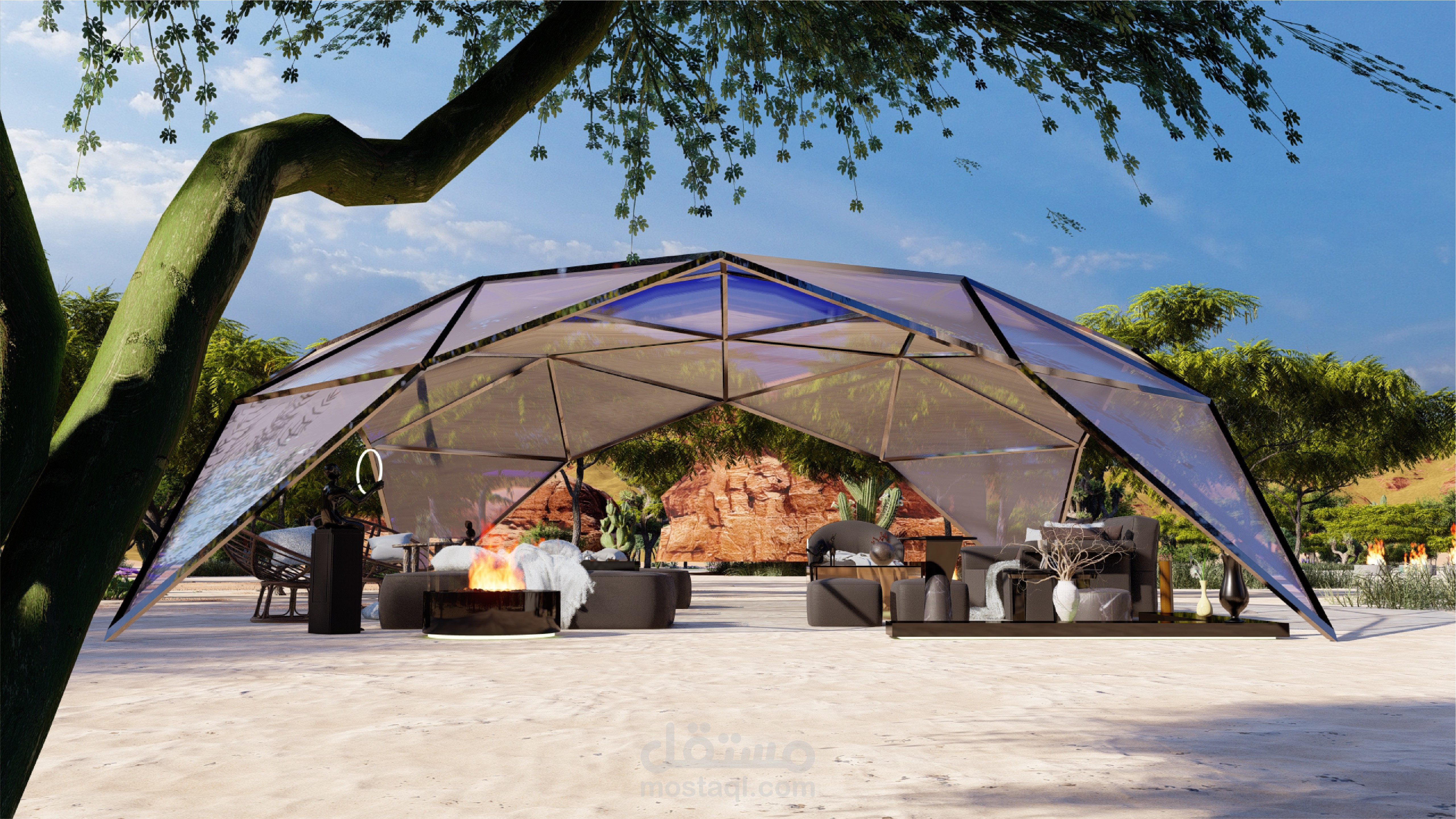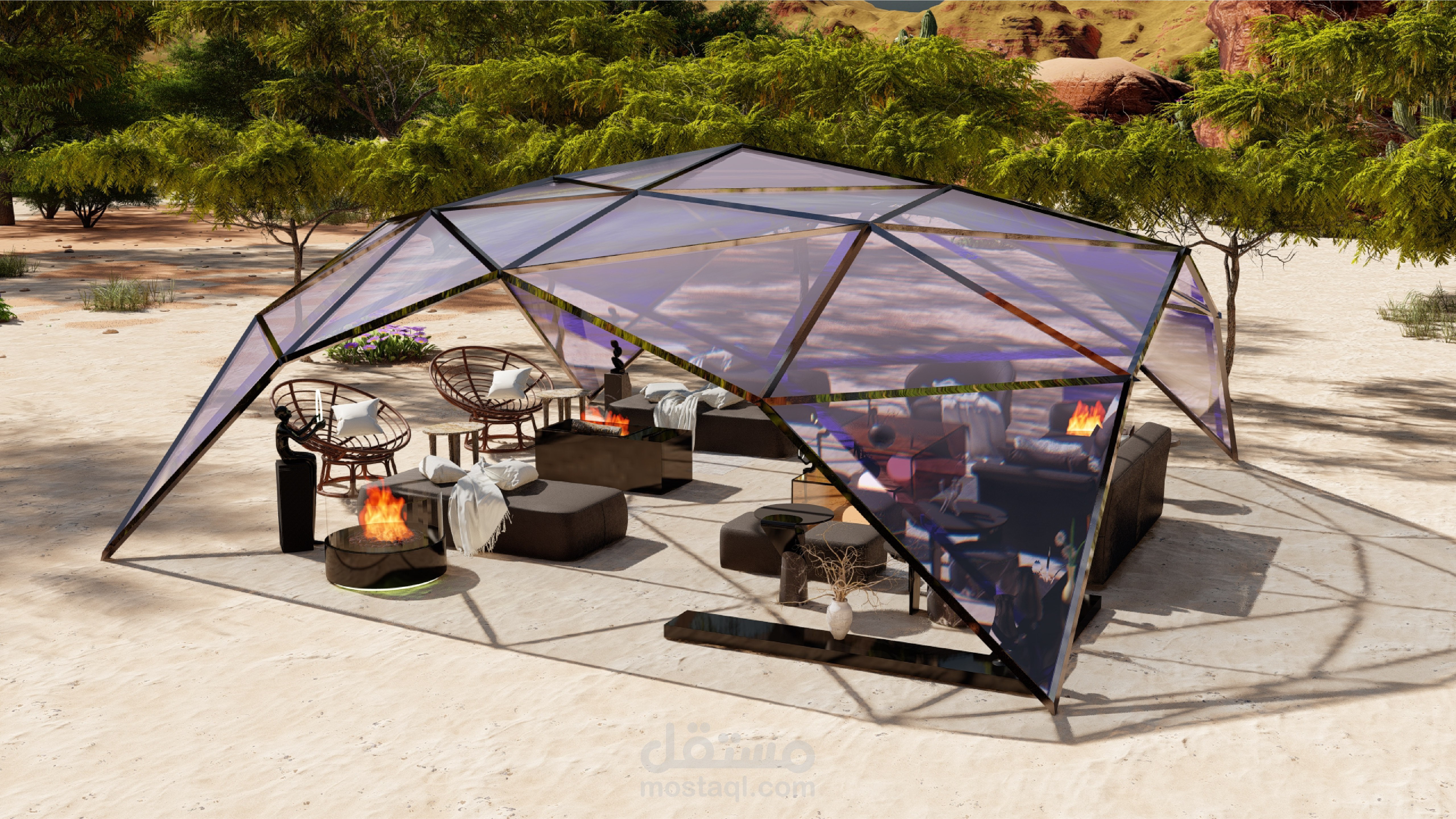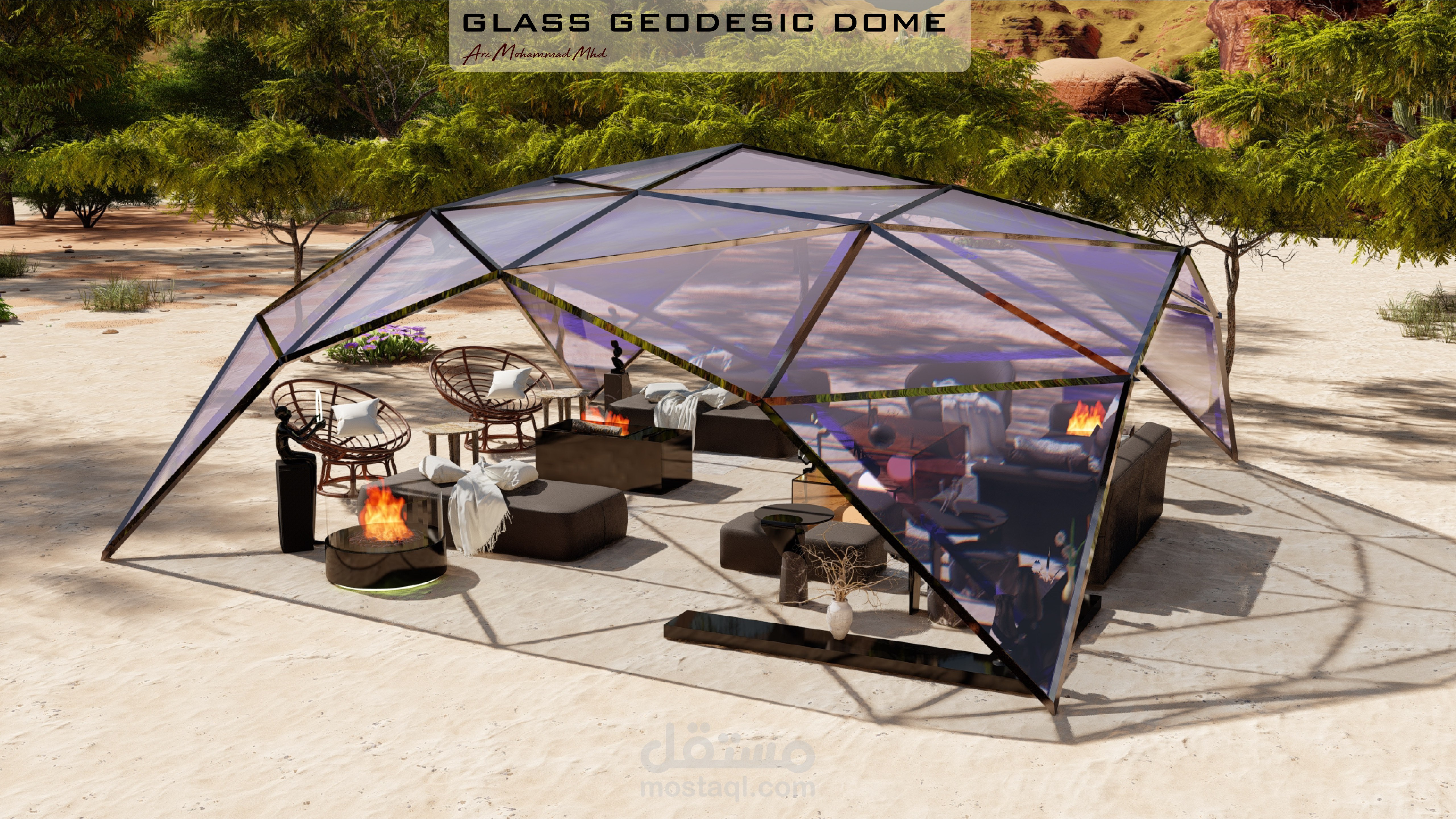 تصميم قبة جيوديزية زجاجية في صحراء المملكة العربية السعودية