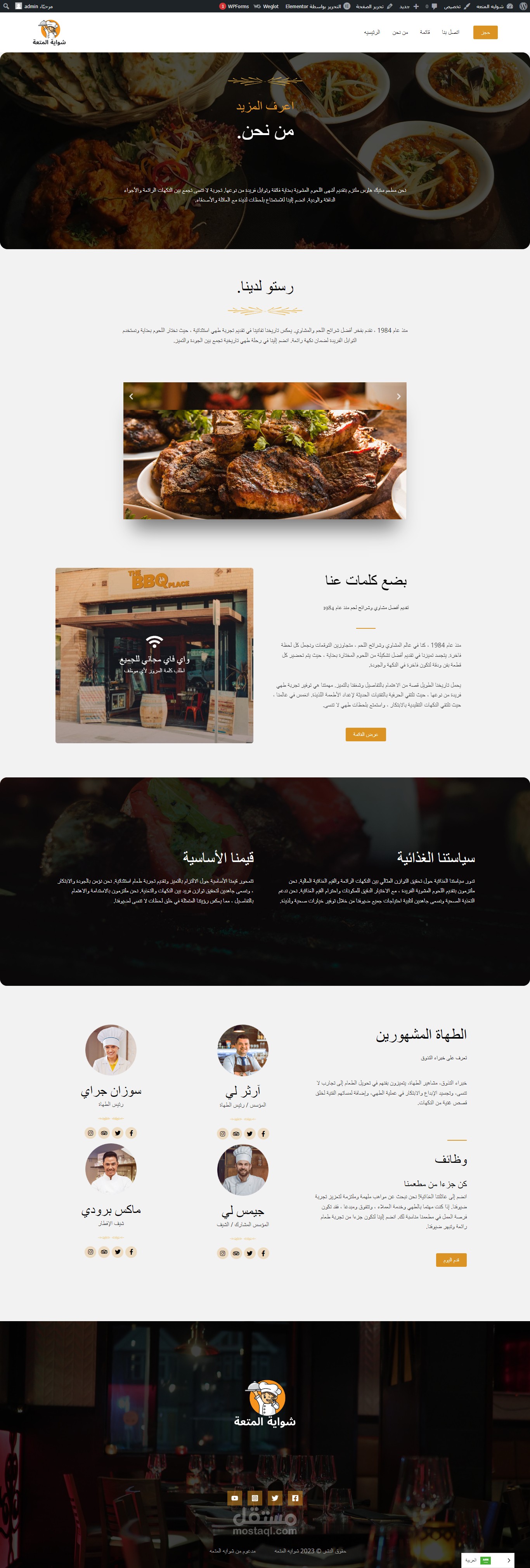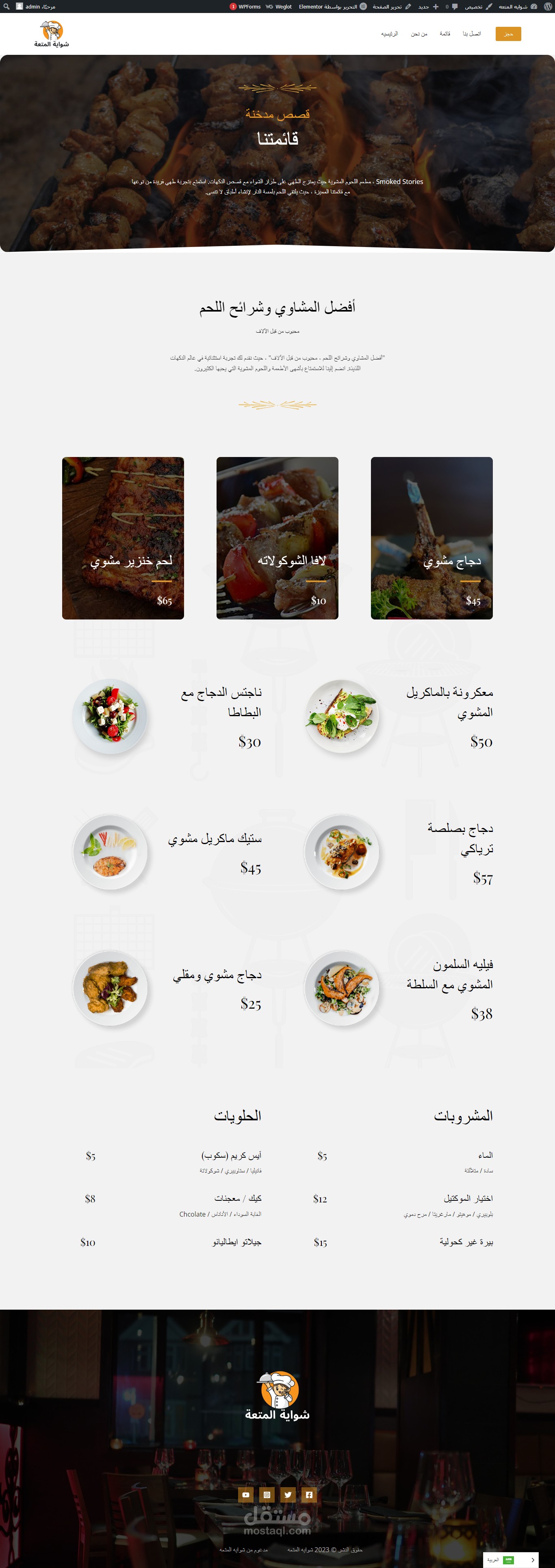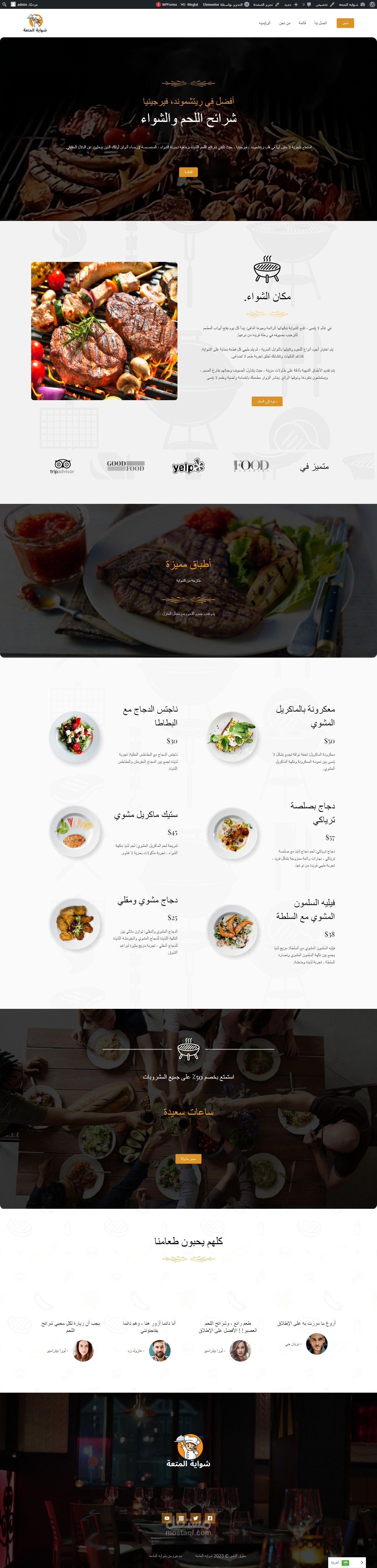 صفحات الموقع تعكس أسلوب المطعم بألوانه وتفاصيل تصميمه، مما يجعل الزوار يشعرون بأجواء الشواء. تم التركيز على تحسين تجربة المستخدم بجعل قائمة الطعام وصفحات الطلب سهلة الوصول وجاذبة.