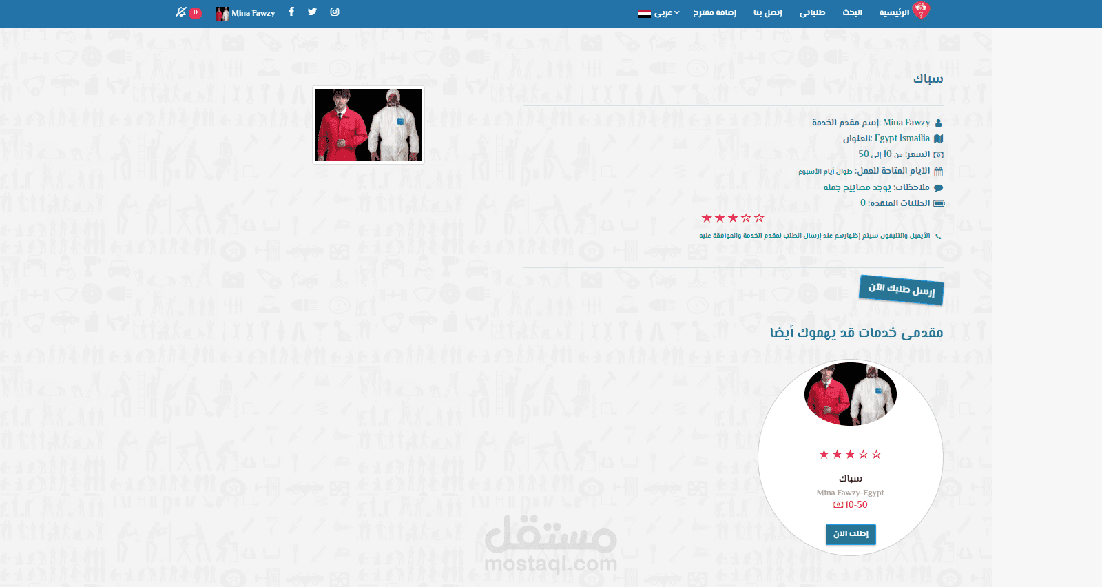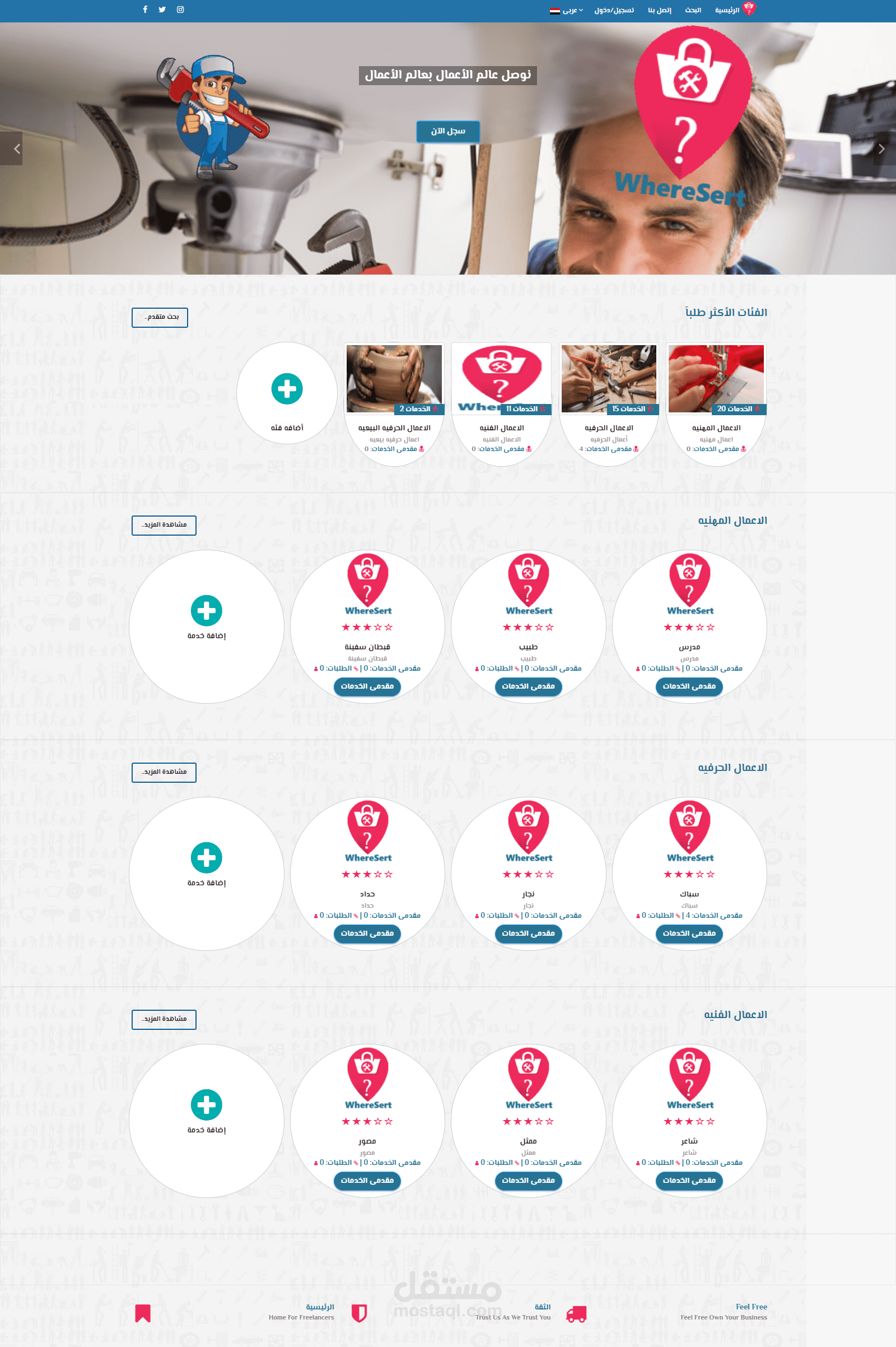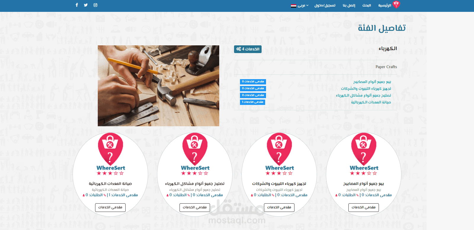 موقع وتطبيق موبايل (Android , IOS) يهدف إلى توصيل أصحاب المهن الحره وخدماتهم إلى طالبى الخدمة