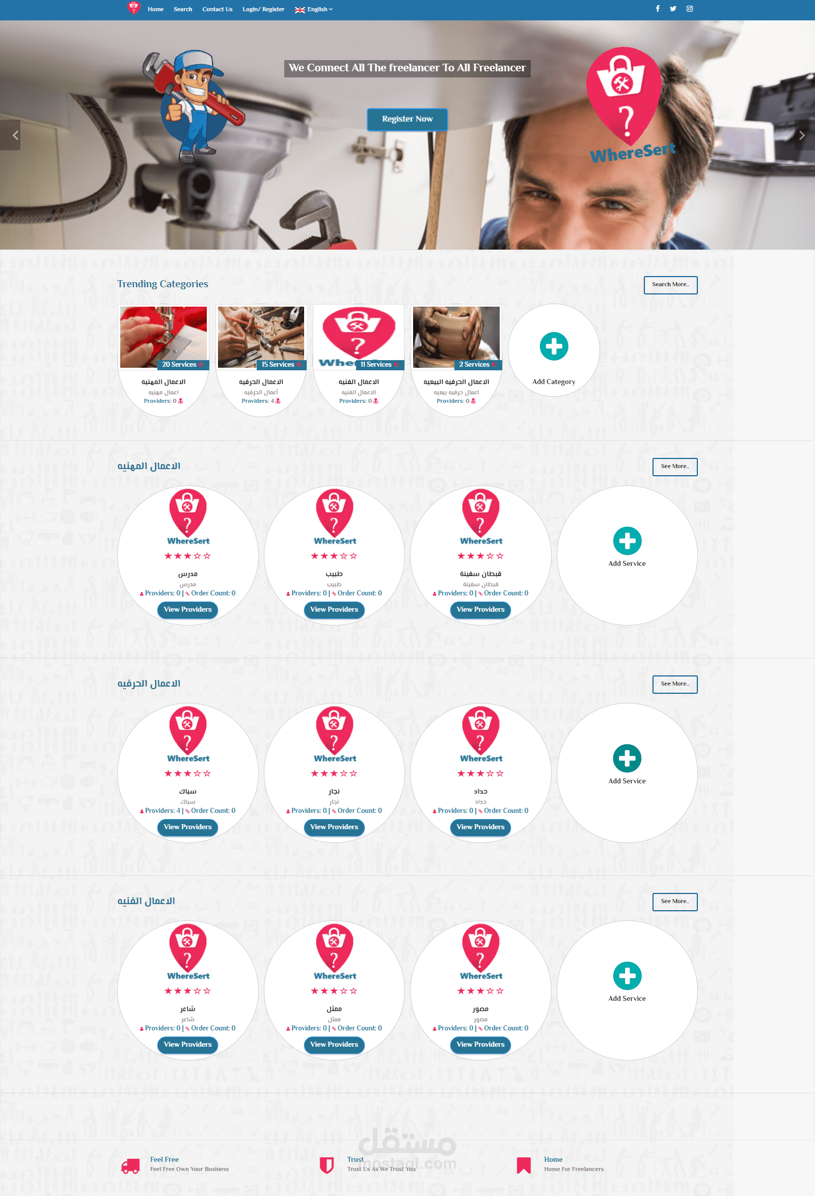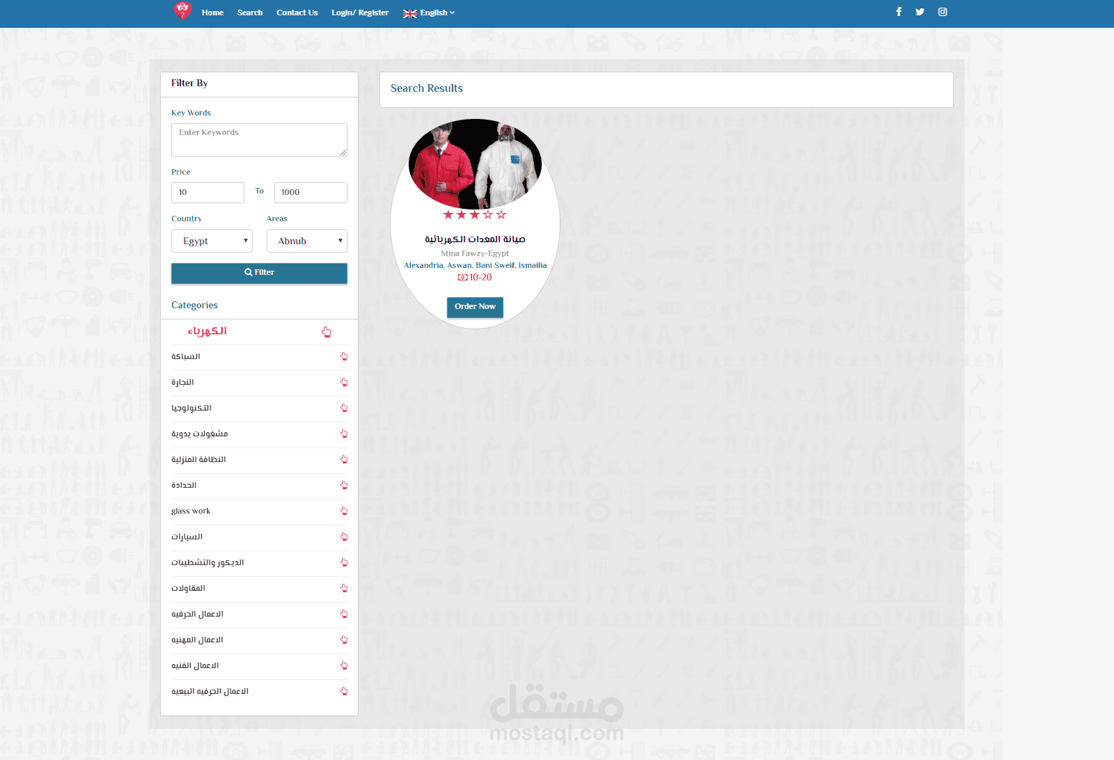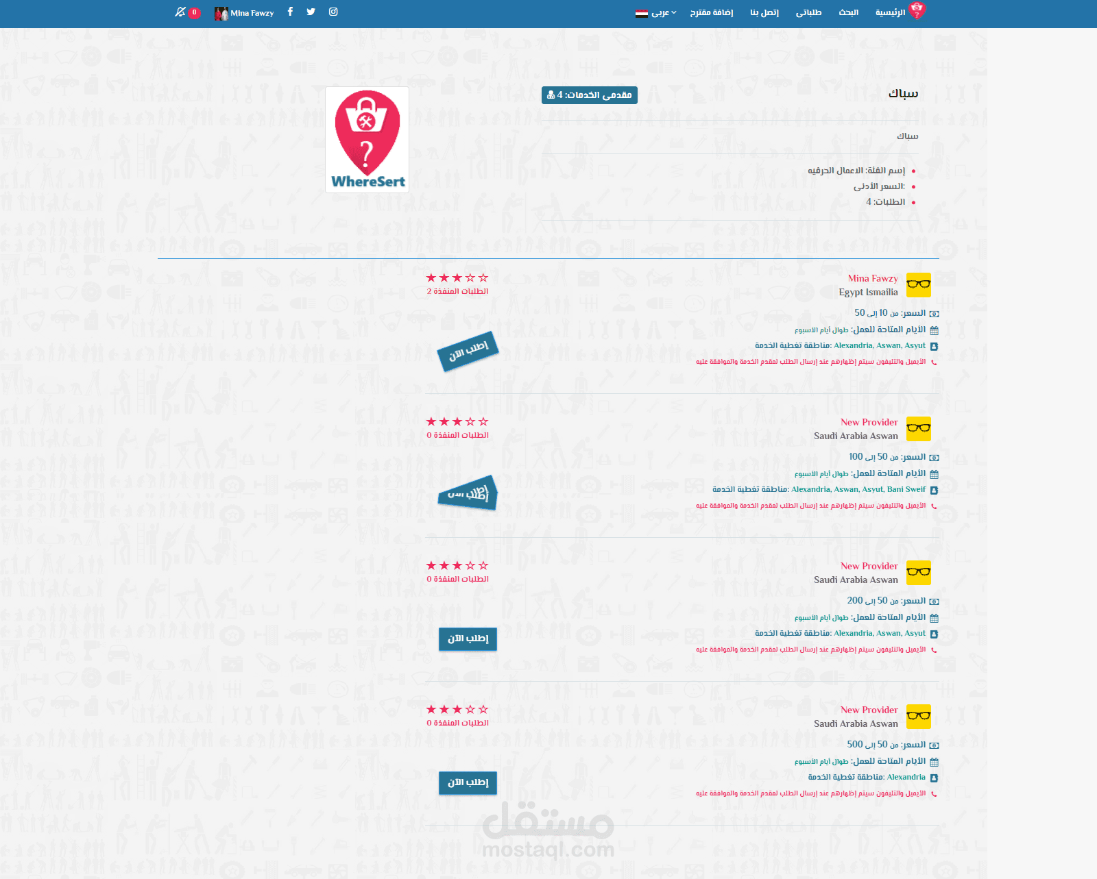 موقع وتطبيق موبايل (Android , IOS) يهدف إلى توصيل أصحاب المهن الحره وخدماتهم إلى طالبى الخدمة