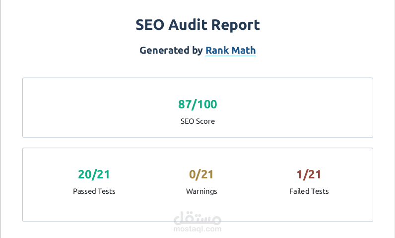 - رفع السيو على أداة Rank Math SEO من 58 إلى 87 نقطة
