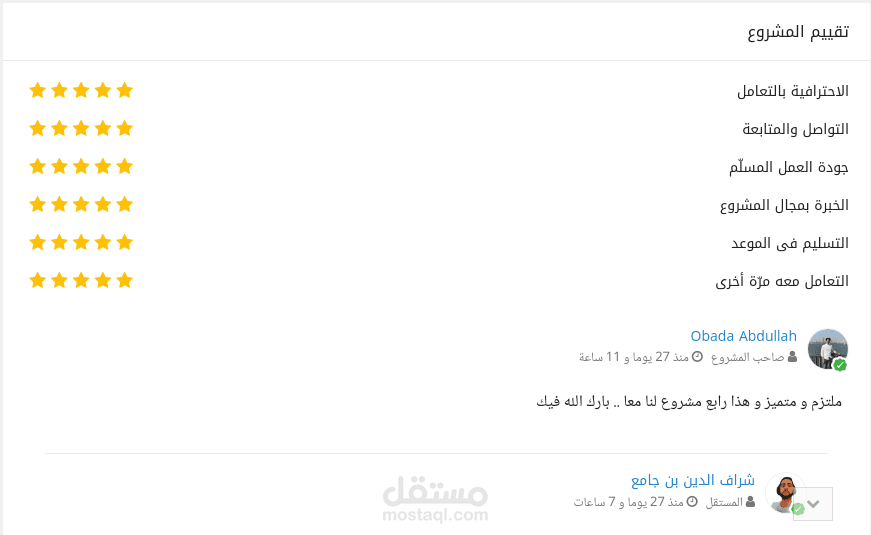 "ملتزم و متميز و هذا رابع مشروع لنا معا .. بارك الله فيك" - 5 نجوم