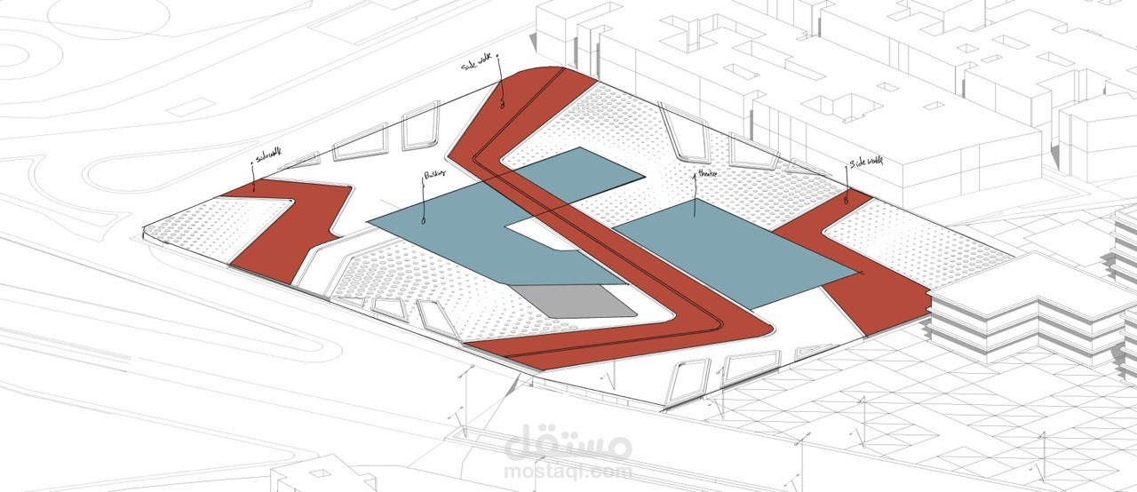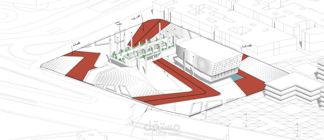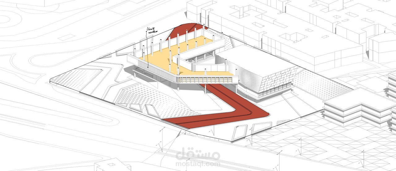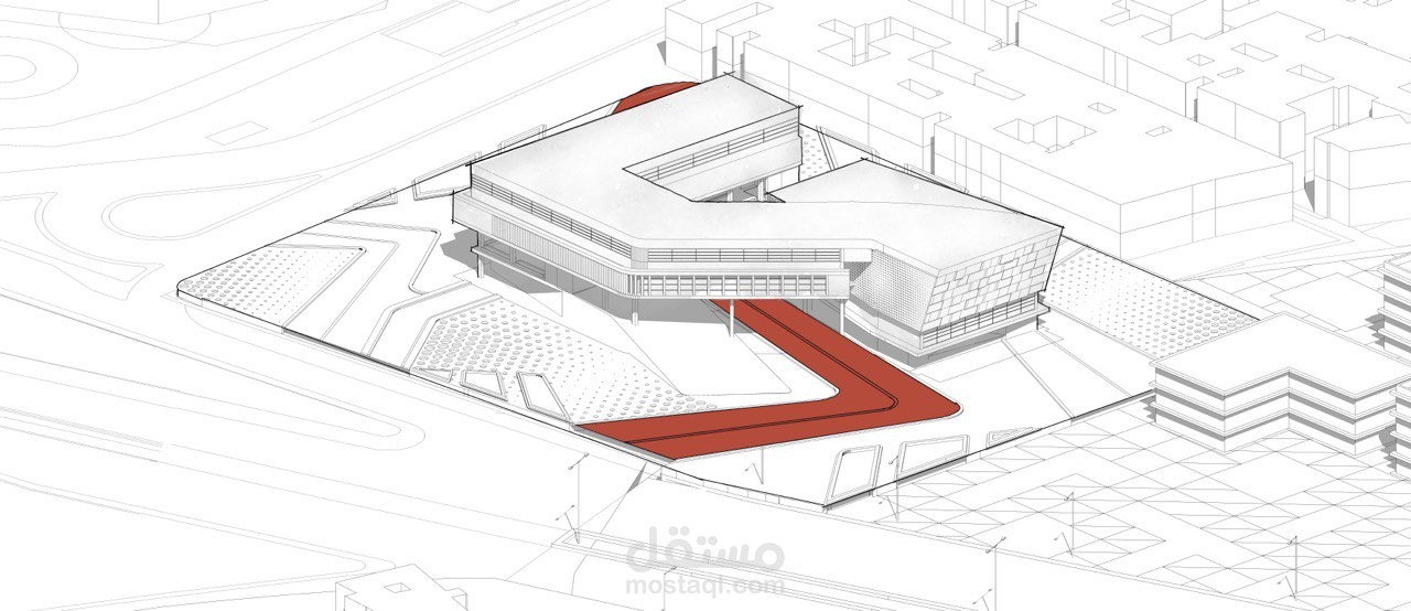It is an academic project designed in a modern and unique style, consisting of two main parts and an entry courtyard, in addition to activating the ground floor as a garden, so that the project is social, environmental and cultural.