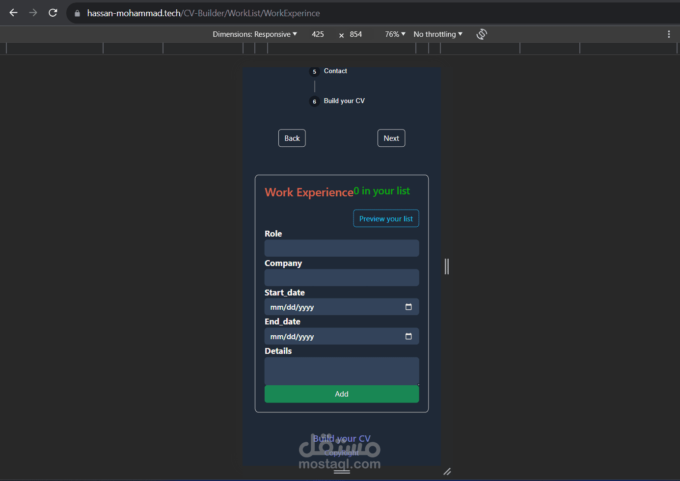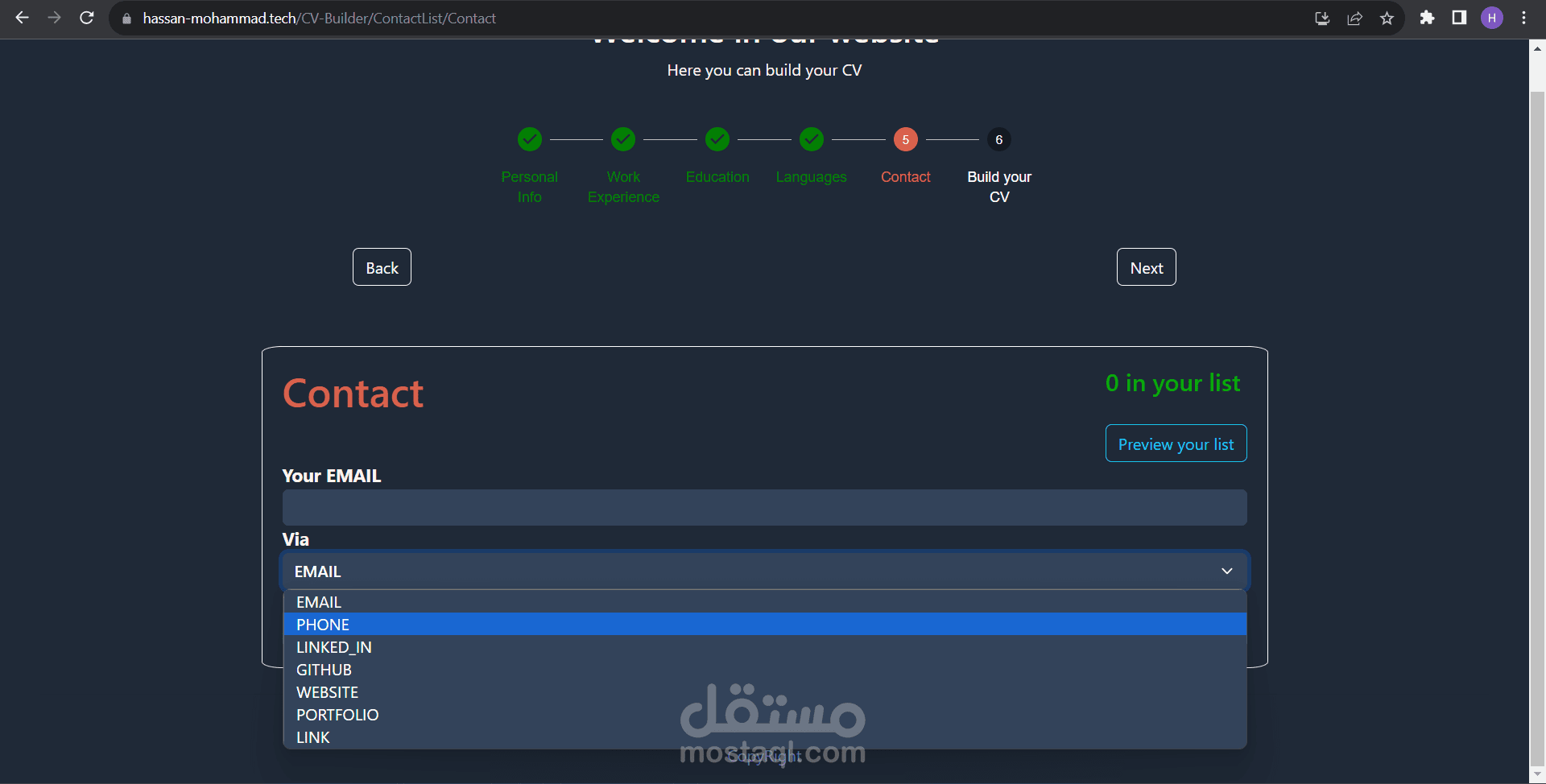 يمكنك من خلال هذا الموقع إدخال بياناتك وخبراتك حيث يقوم الموقع بتوليد وإنشاء الCV.