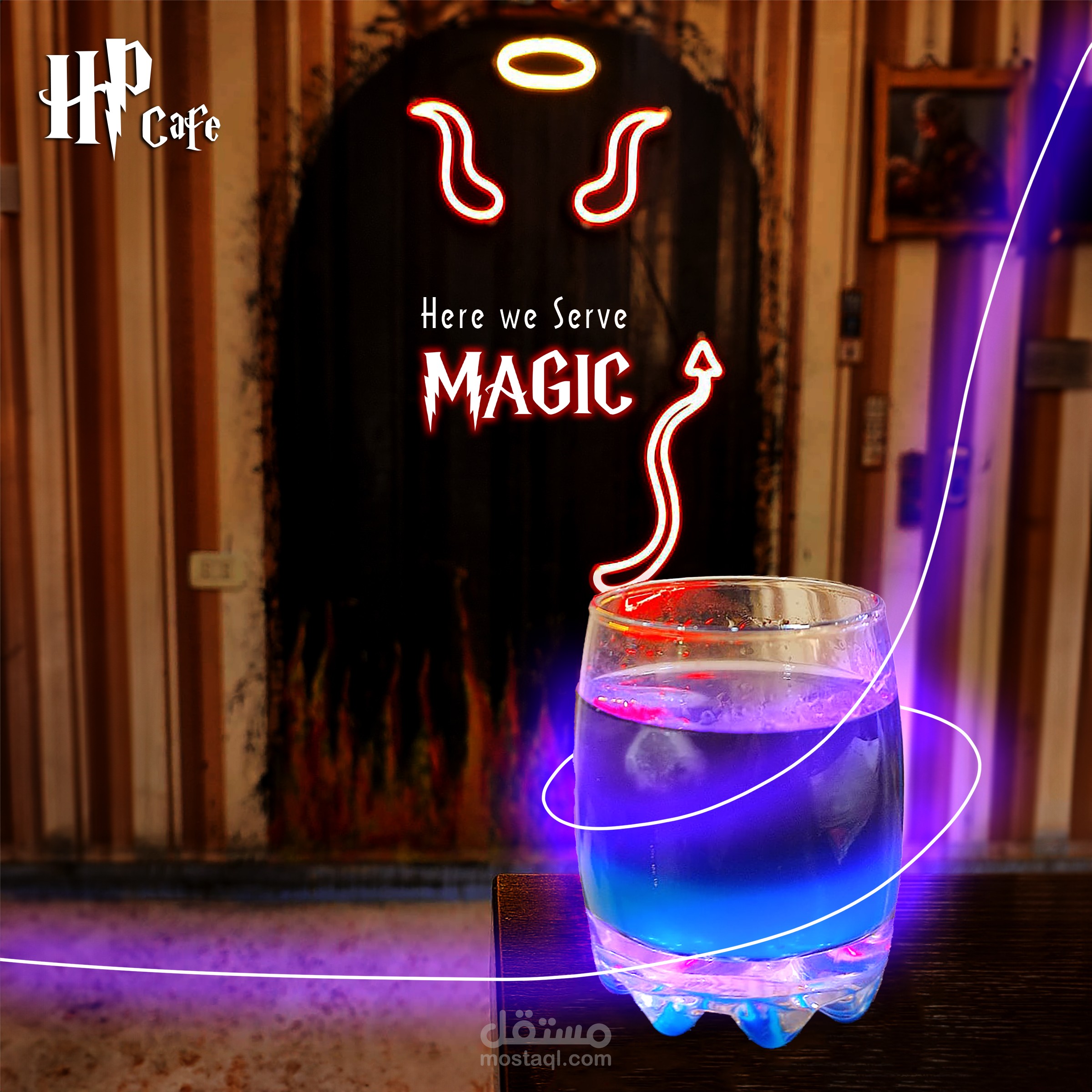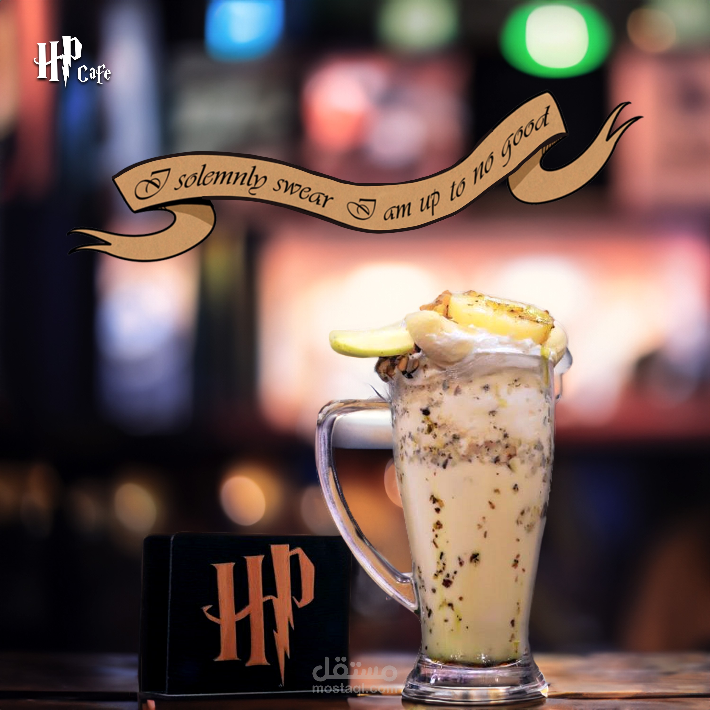 مجموعة من الإعلانات الترويجية لكافيه بثيم هاري بوتر
