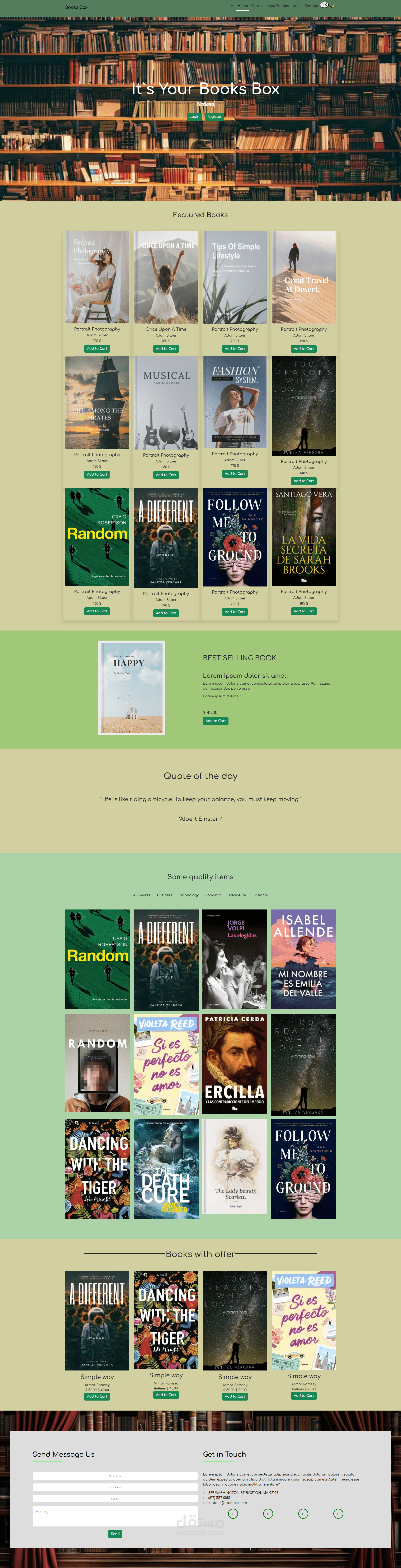 قمت بتصميم وتطوير واجهة متجر إلكتروني لبيع الكتب يُدعى "Books Box"، يتميز بتصميم جذاب وتجربة مستخدم سلسة، ويعرض مجموعة متنوعة من الكتب في أقسام مصنفة لتسهيل التصفح والشراء.