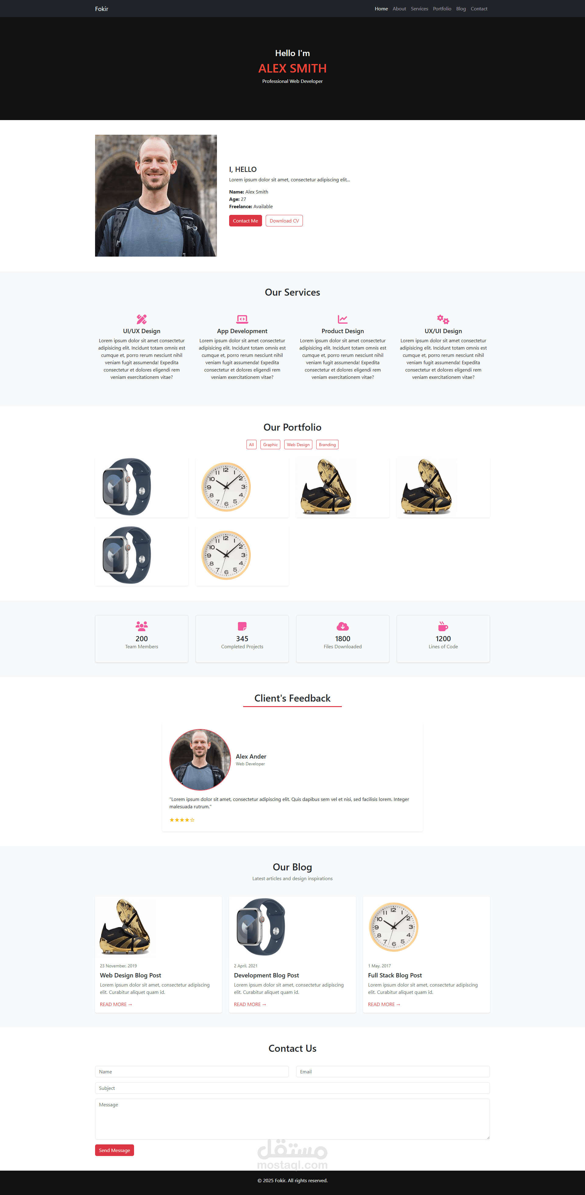 قمت بتصميم وتطوير موقع بورتفوليو شخصي مستوحى من قالب "Fokir" الشهير. يهدف هذا الموقع إلى عرض المهارات والخدمات الشخصية بطريقة احترافية ومنظمة، مع إبراز الأعمال السابقة وآراء العملاء.