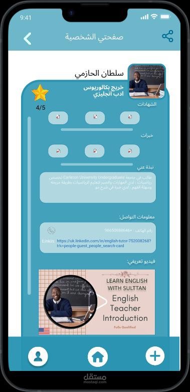 عباره عن ابلكيشن للمعلم والطلاب لحجز الحصص وتقييم المعلمين ومساعده الطلبه في دراستهم