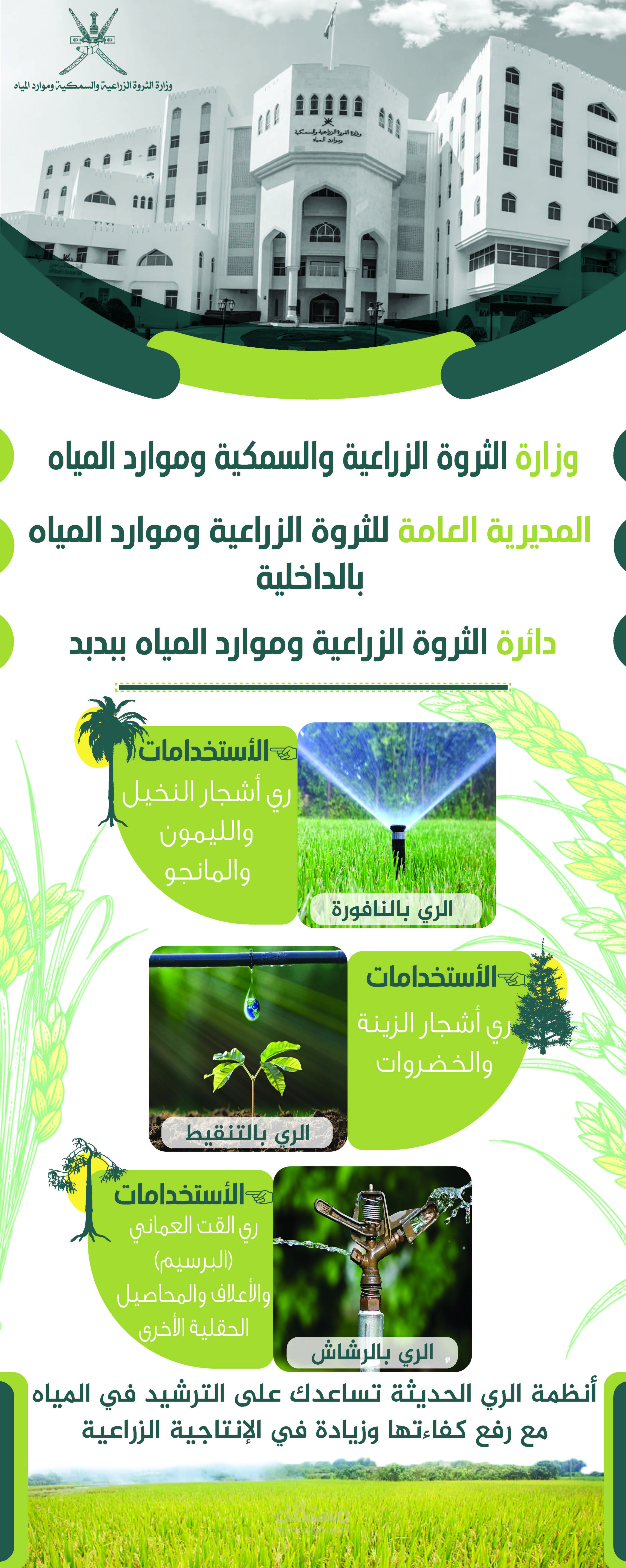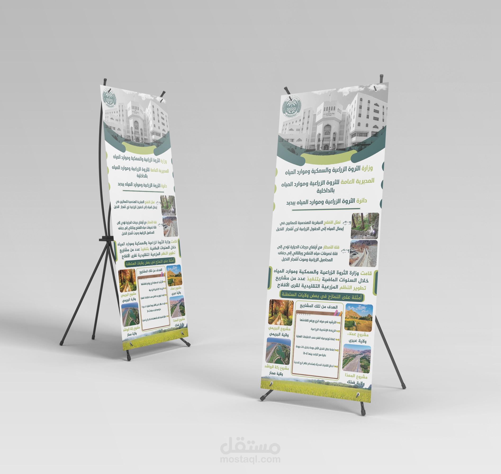 بنرات مصمم لوزاررة الثروة السمكية والري وتم اعتماد هذة الالوان لان هذة الوزارة تعمل على تخضير المناطق وخاصة بالتخضير ايضا لذلك تم اعتماد هذة الالوان بموافقة العميل