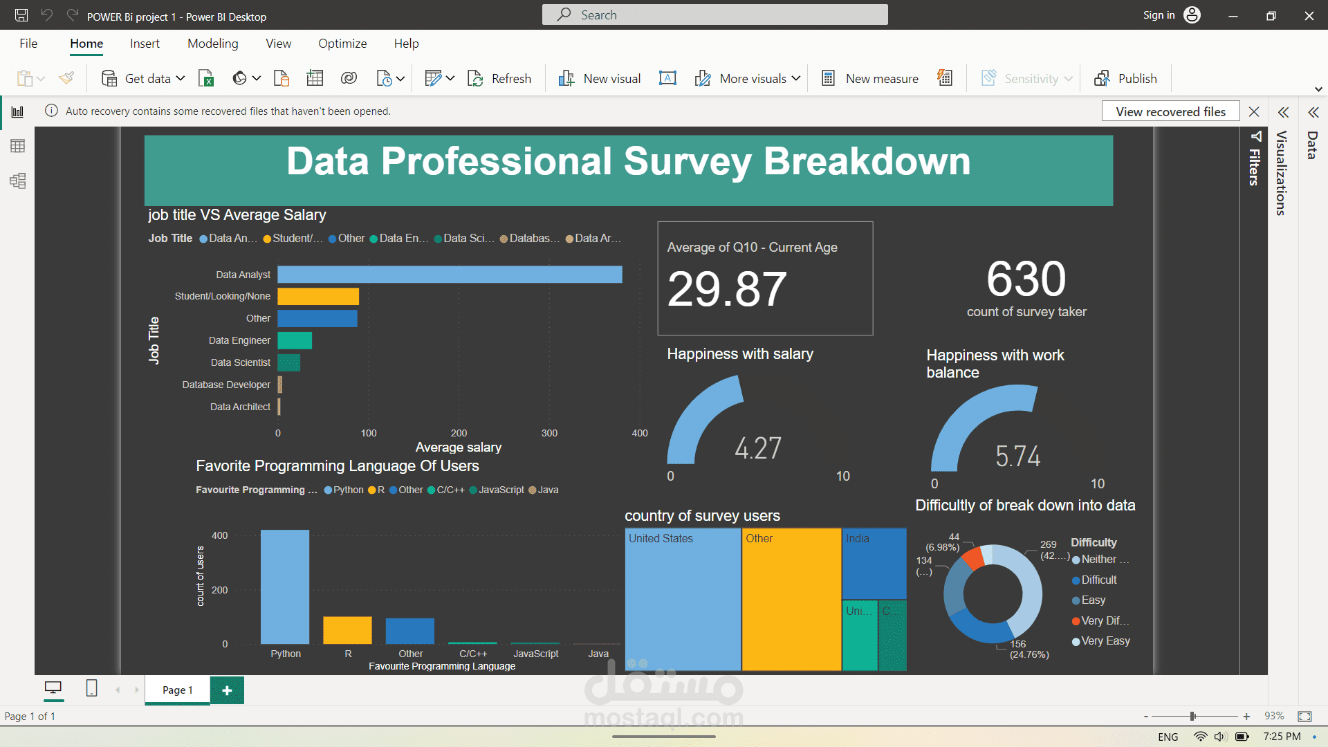 سوف اقدم لحضرتكم تقرير تفاعلي علي برنامج power bi مكون من اربعه رسوم بيانيه ف صفحه واحده