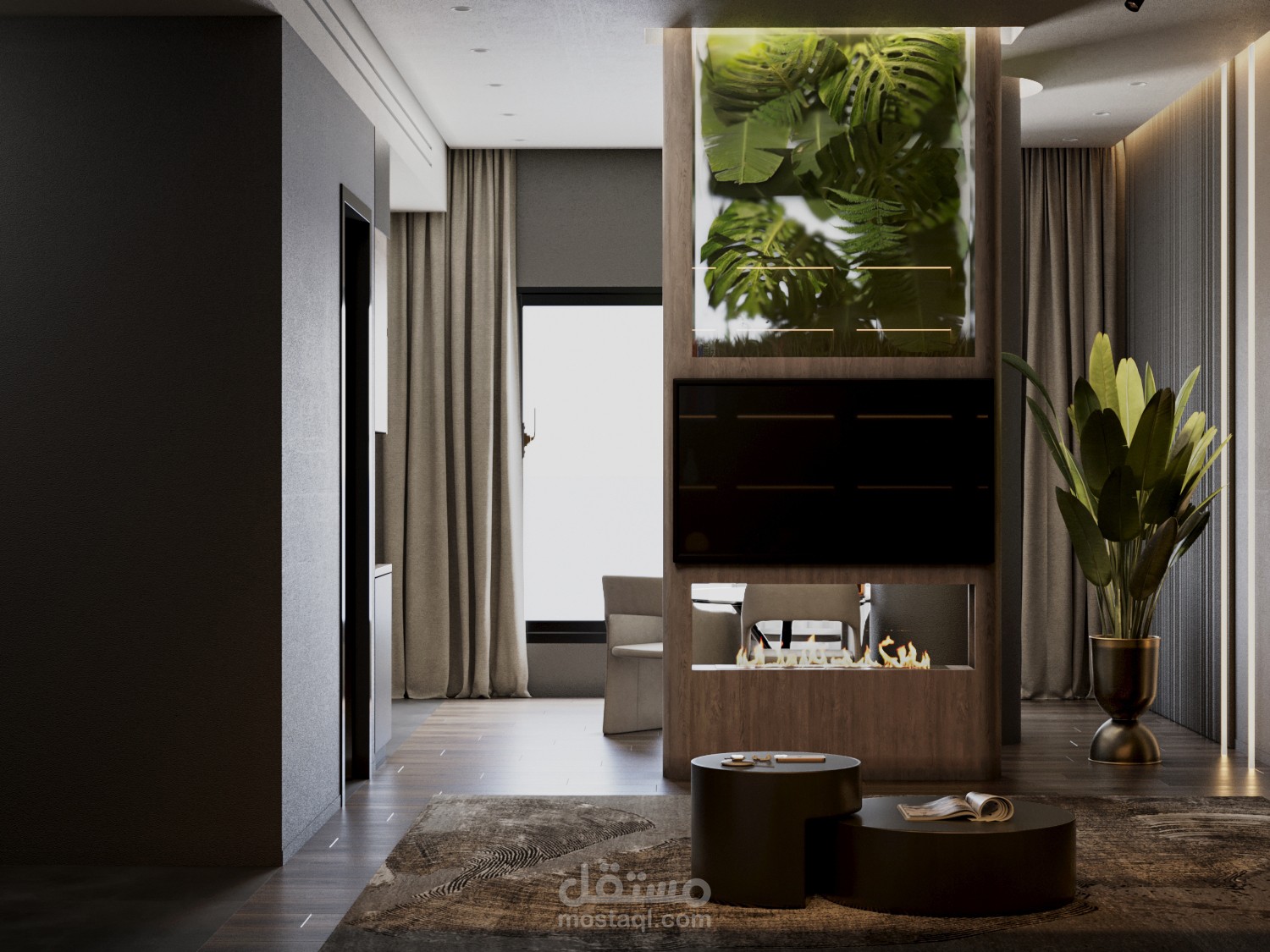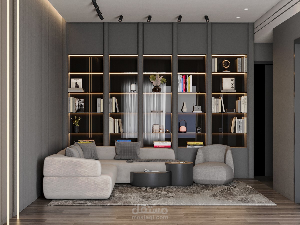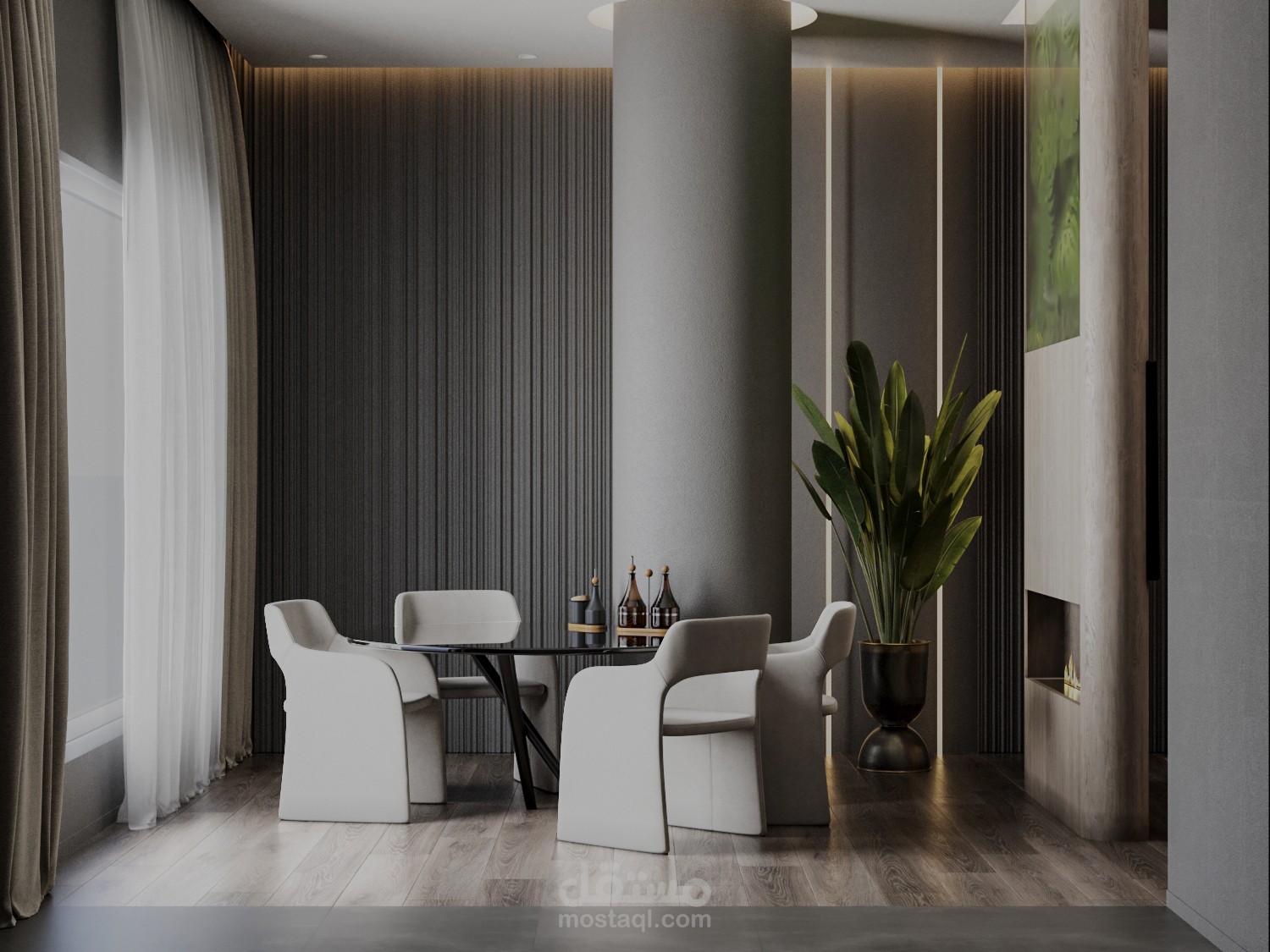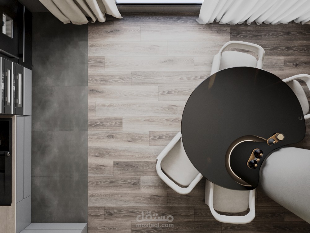العمل : صالة استقبال استوديو / مطبخ/ طاولة الطعام