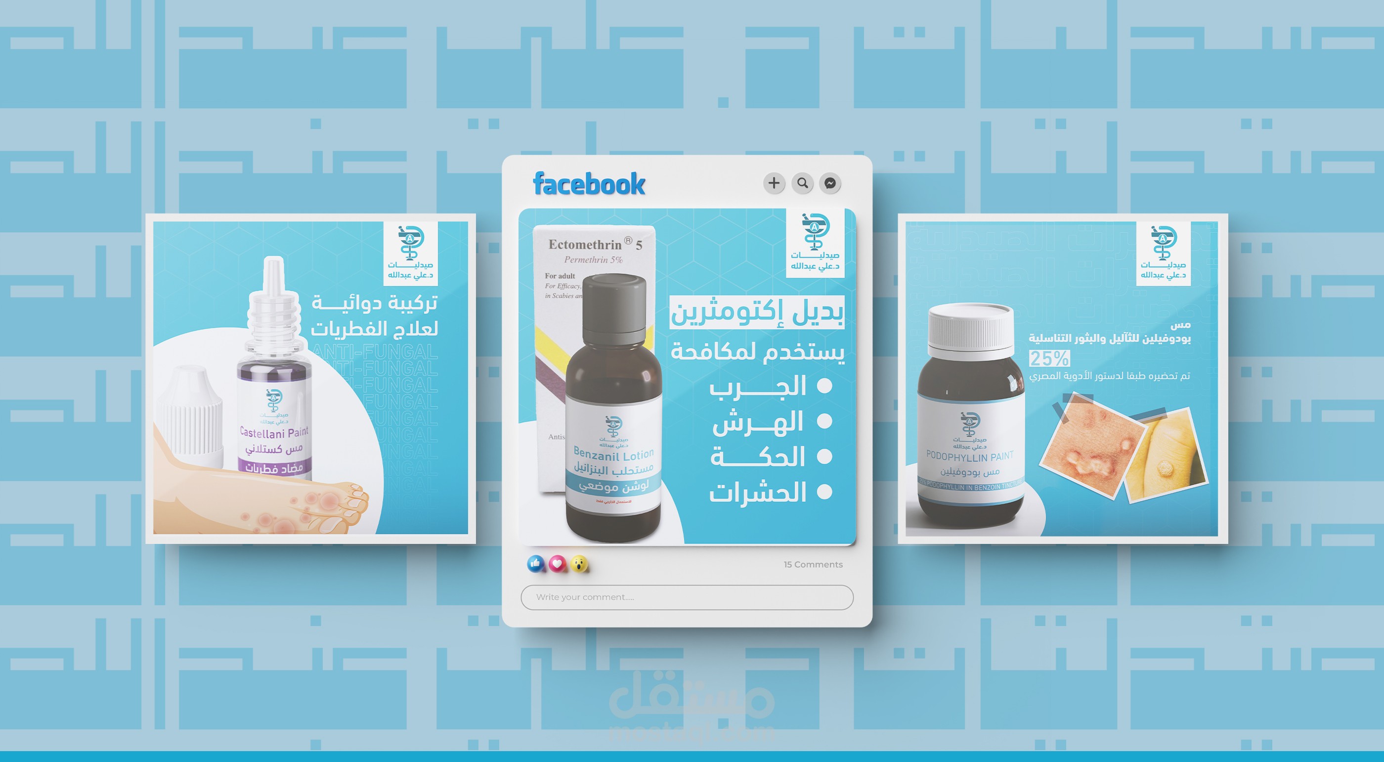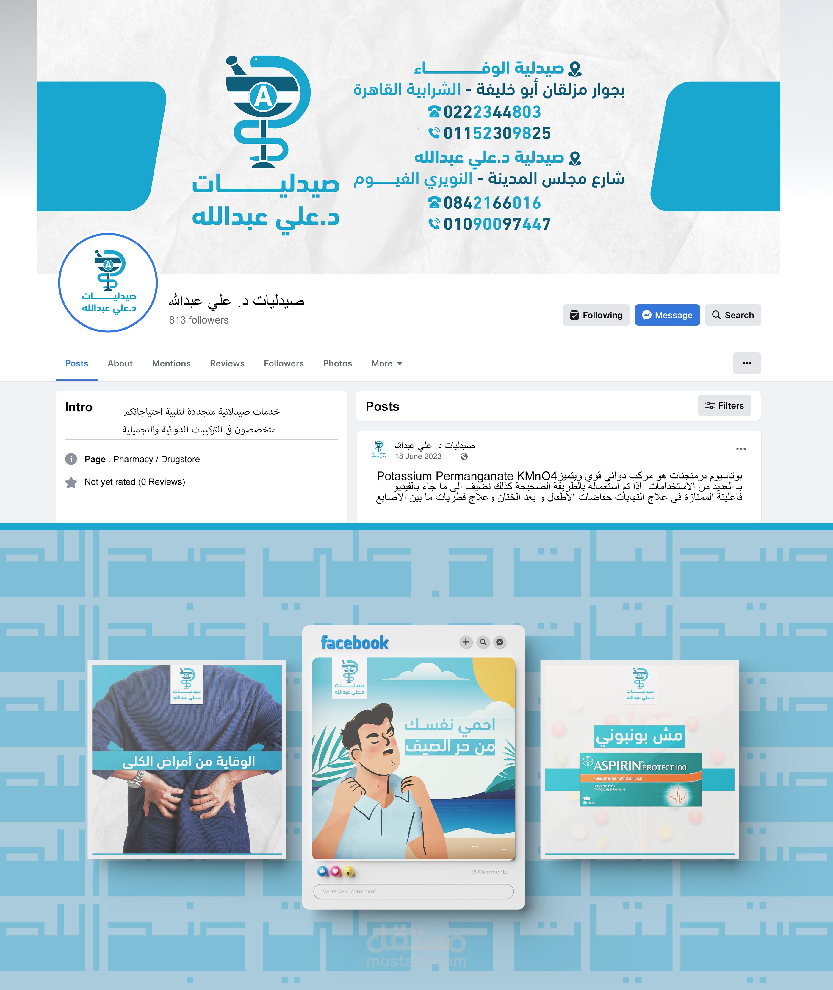 تم عمل تصميمات دعائية وتصوير فيديوهات ومنتجات وعمل تغليف لمنتجات خاصة بالصيدلية