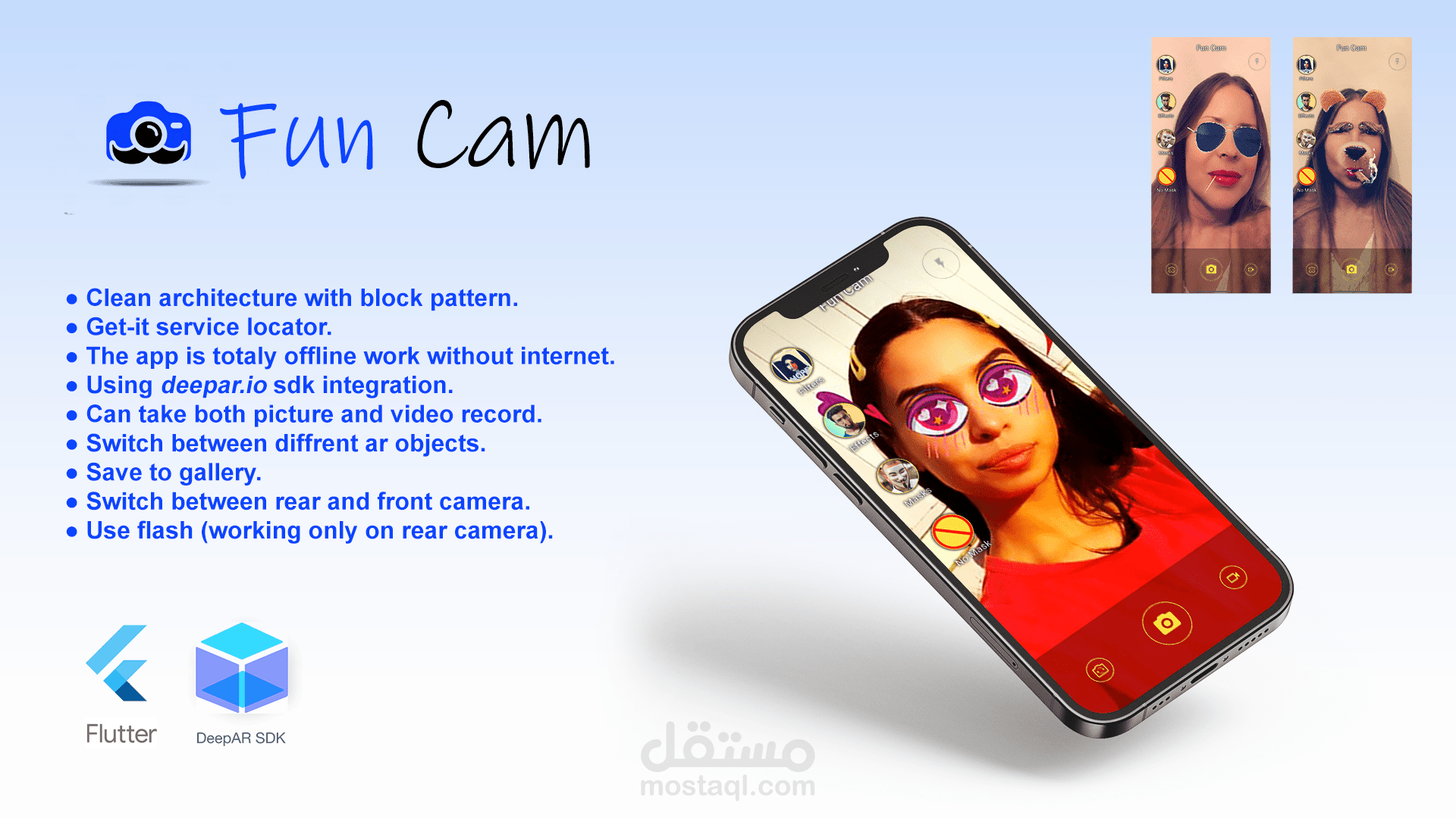 برنامج كاميرا باستخدام deepar.io sdk و flutter لتسجيل و تصوير ببعض الفلاتر و ال ar models