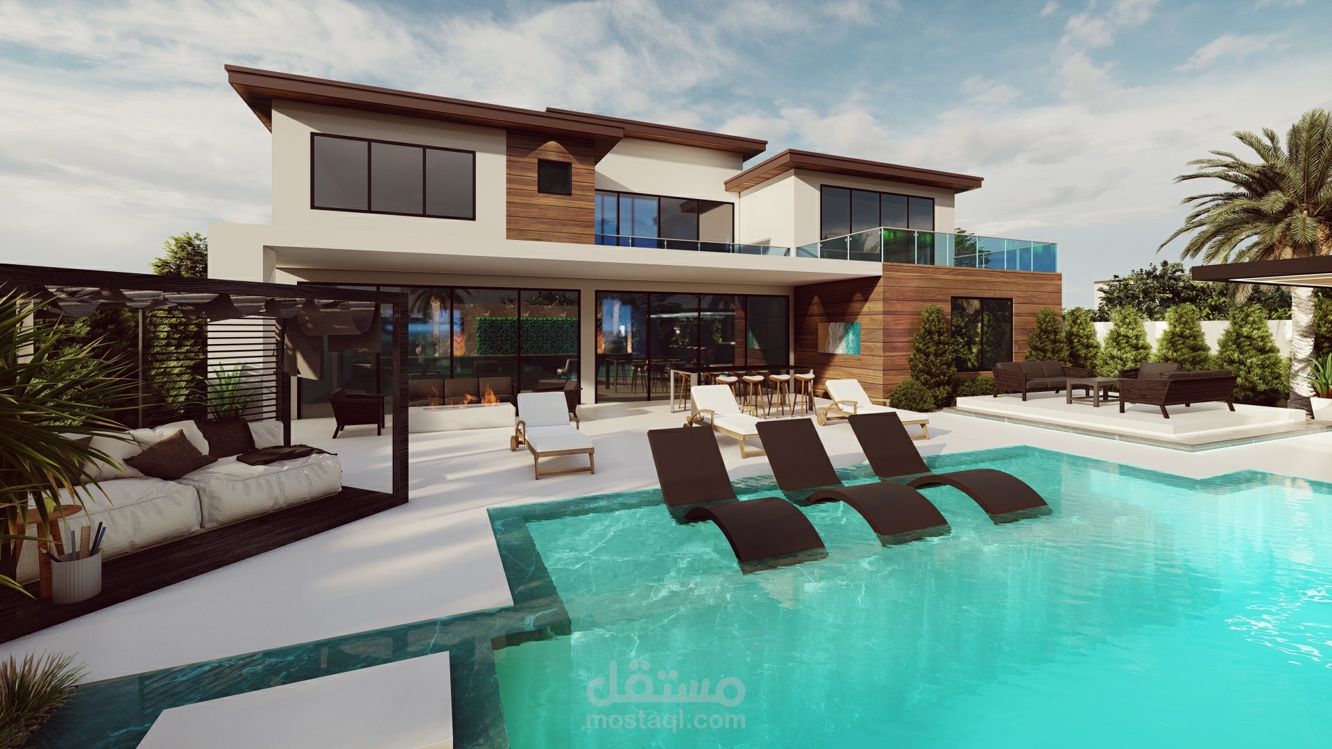 تصميم واجهة ولاندسكيب فيلا لعميل بالولايات المتحدة الامريكية.