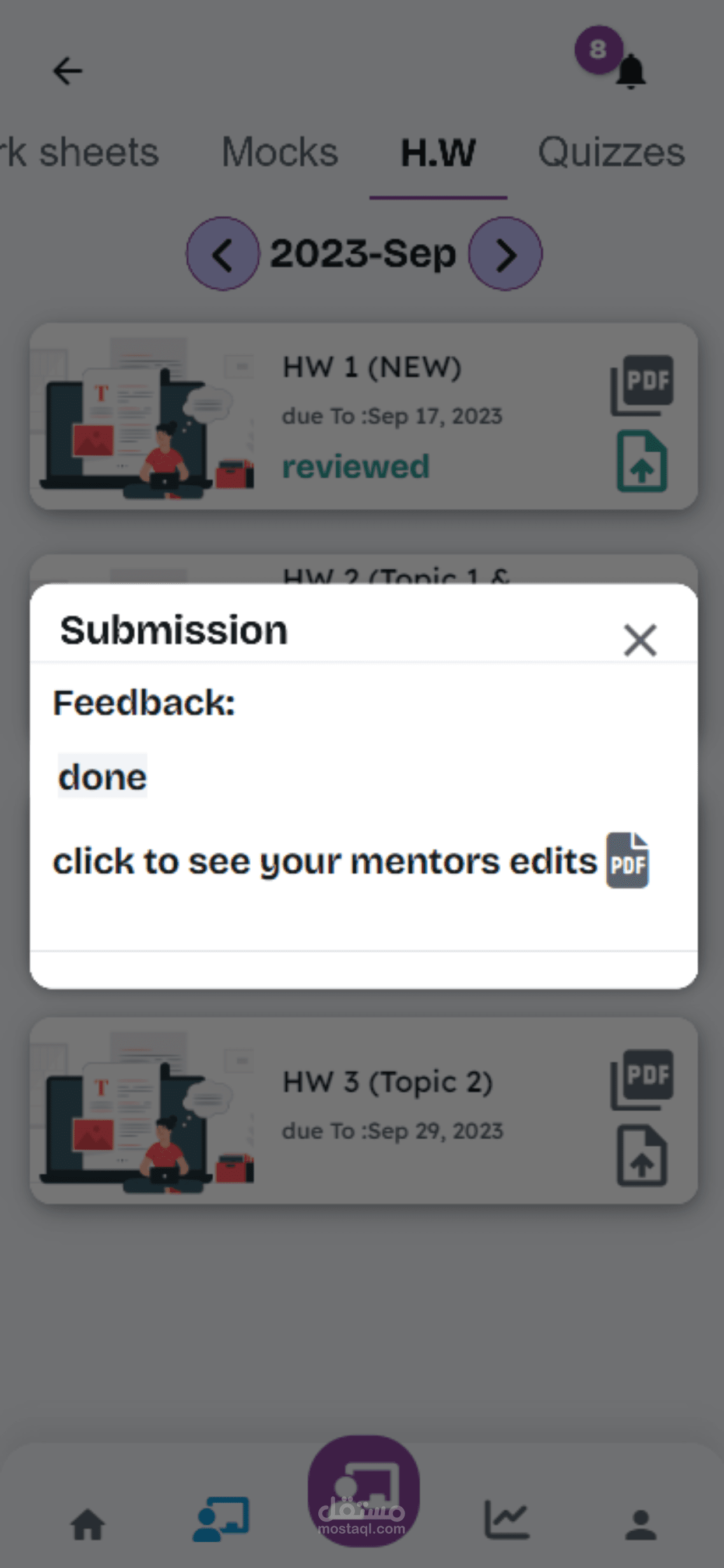 تسهيل تسليم الواجبات ومتابعة حضوره واستلام الملازم والتسجيلات مع إشعارات دورية بكل تصحيح من تسليماته