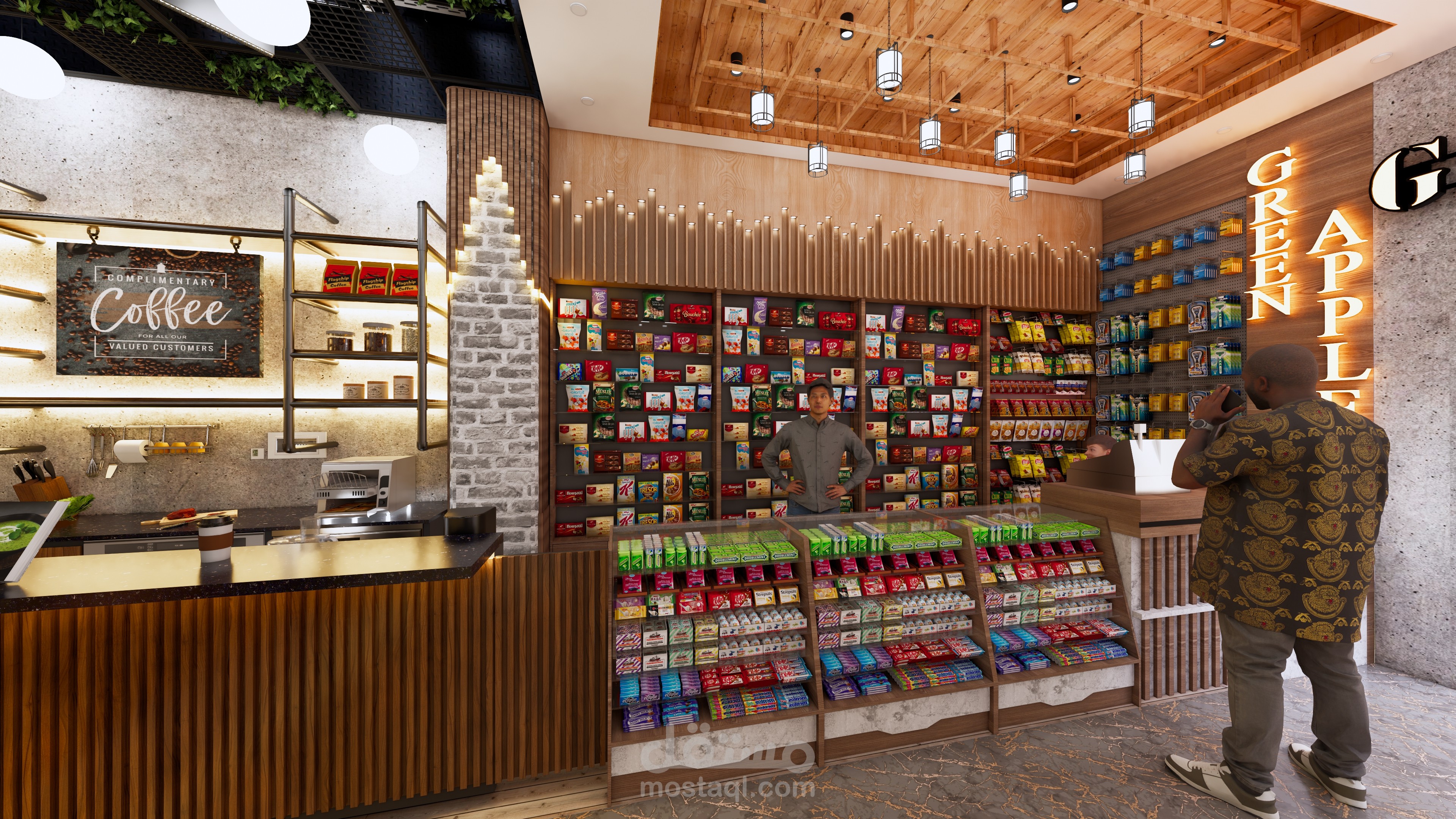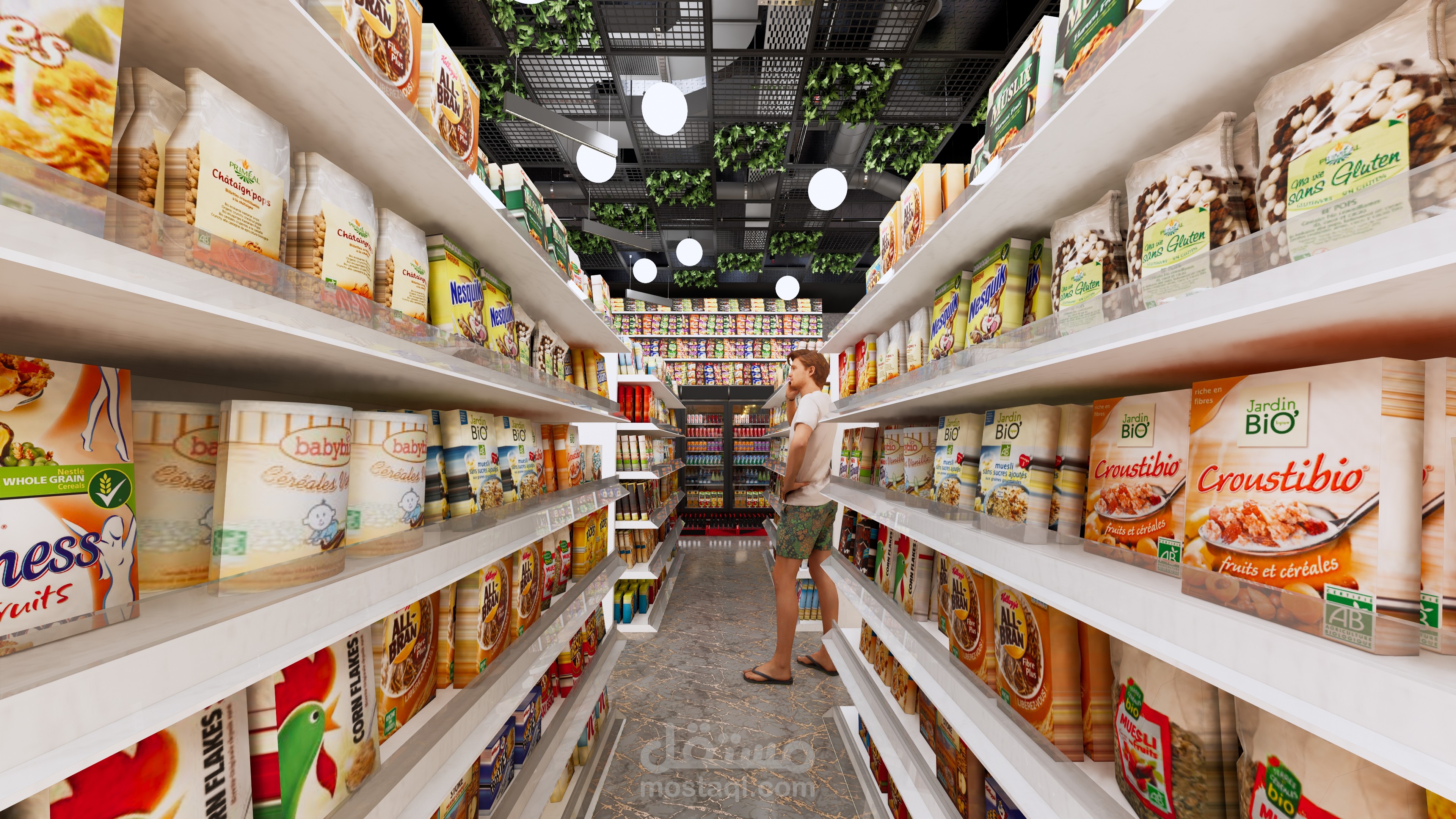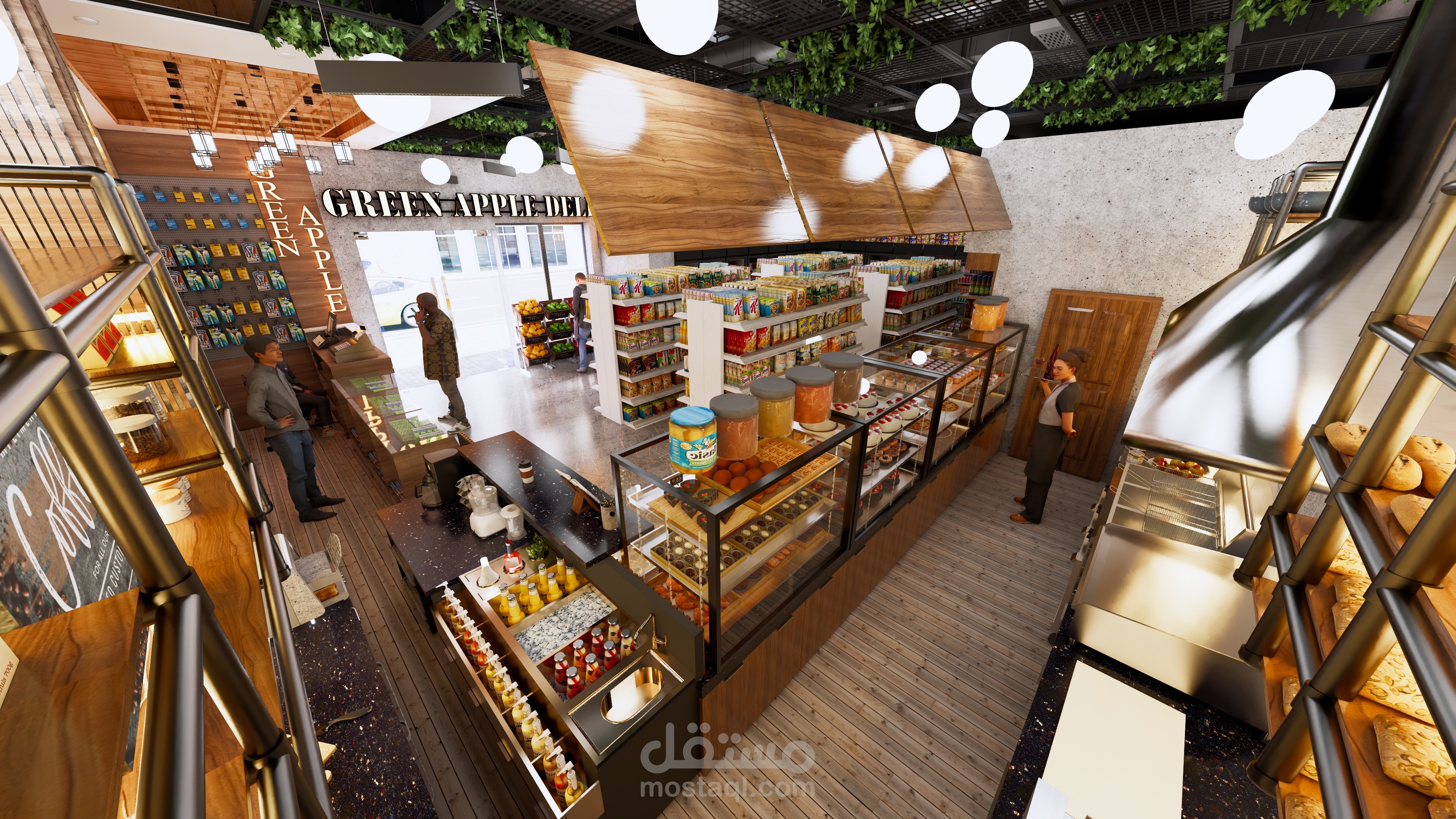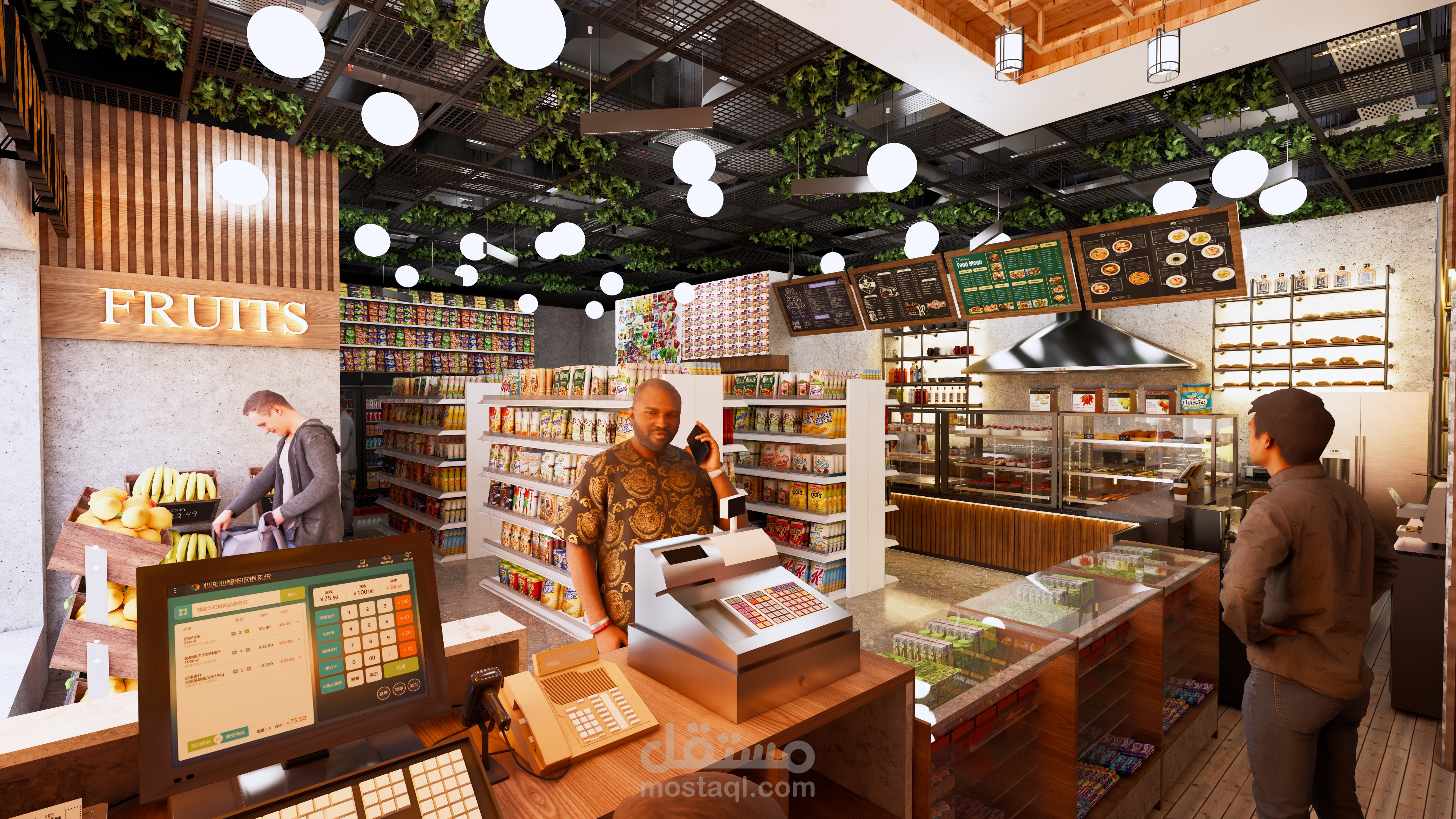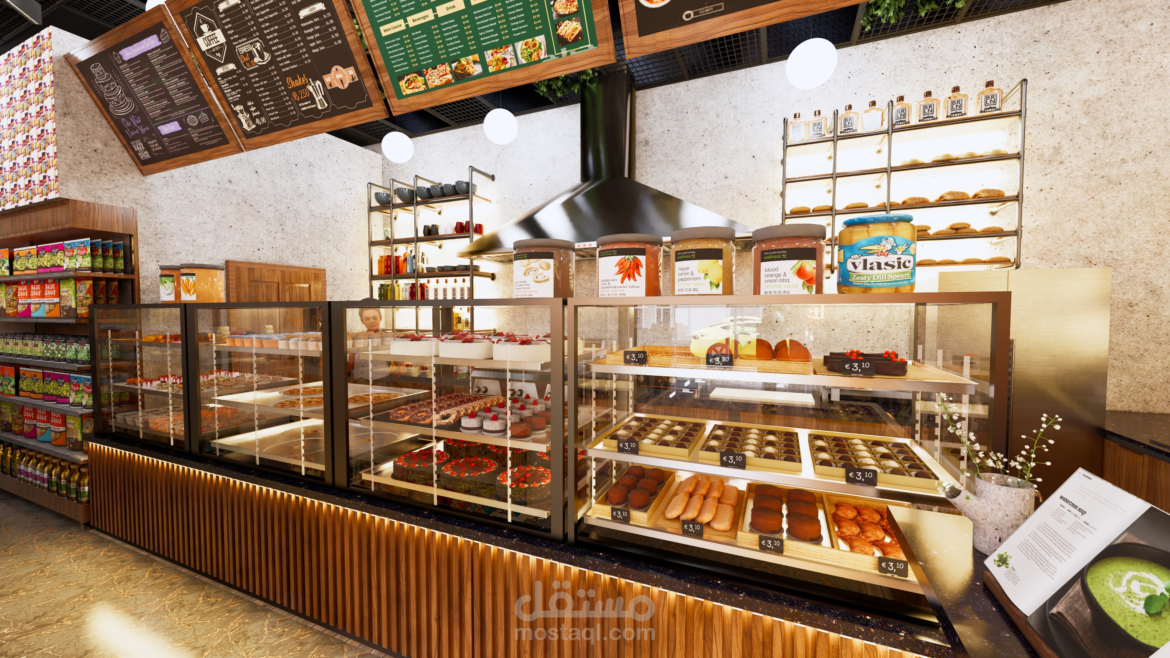 سوبر ماركت + قسم Deli بتوزيع عملي ومرن يُراعي راحة المتسوقين.