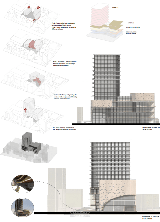 Civic Center is a building that combinessporting, cultural and administrative uses to service the neighborhood. It's also a center of activity or interest or commerce or transportation focal point around which events revolve.