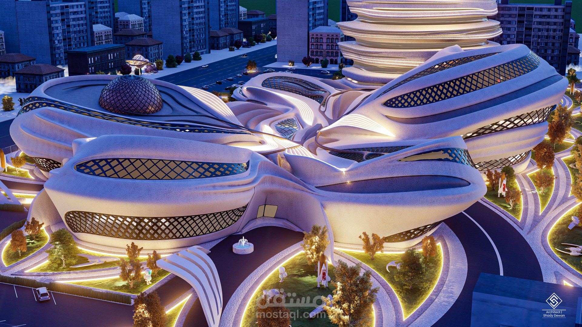 Miraj's design seamlessly integrates with its surroundings, echoing the celestial wonders above. The fluid lines and captivating curves of the architecture mimic the mesmerizing trails left by stars as they dance across the night sky. The interplay of light and shadows further accentuates the celestial theme, evoking a sense of wonder and curiosity.