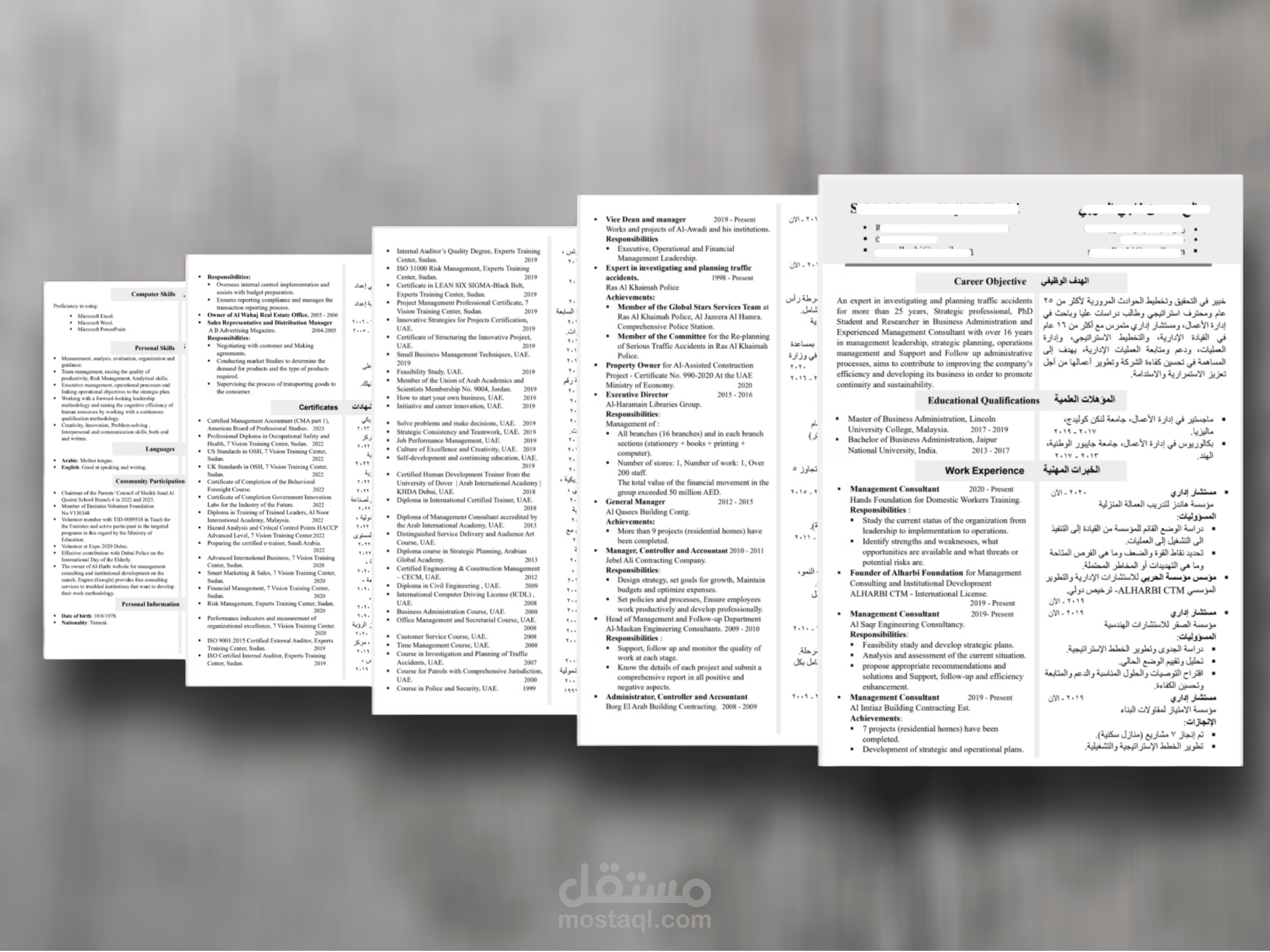 كتابة و تصميم سيرة ذاتية احترافية مُدمجة باللغتين معاً العربية والإنجليزية في نفس النموذج.
