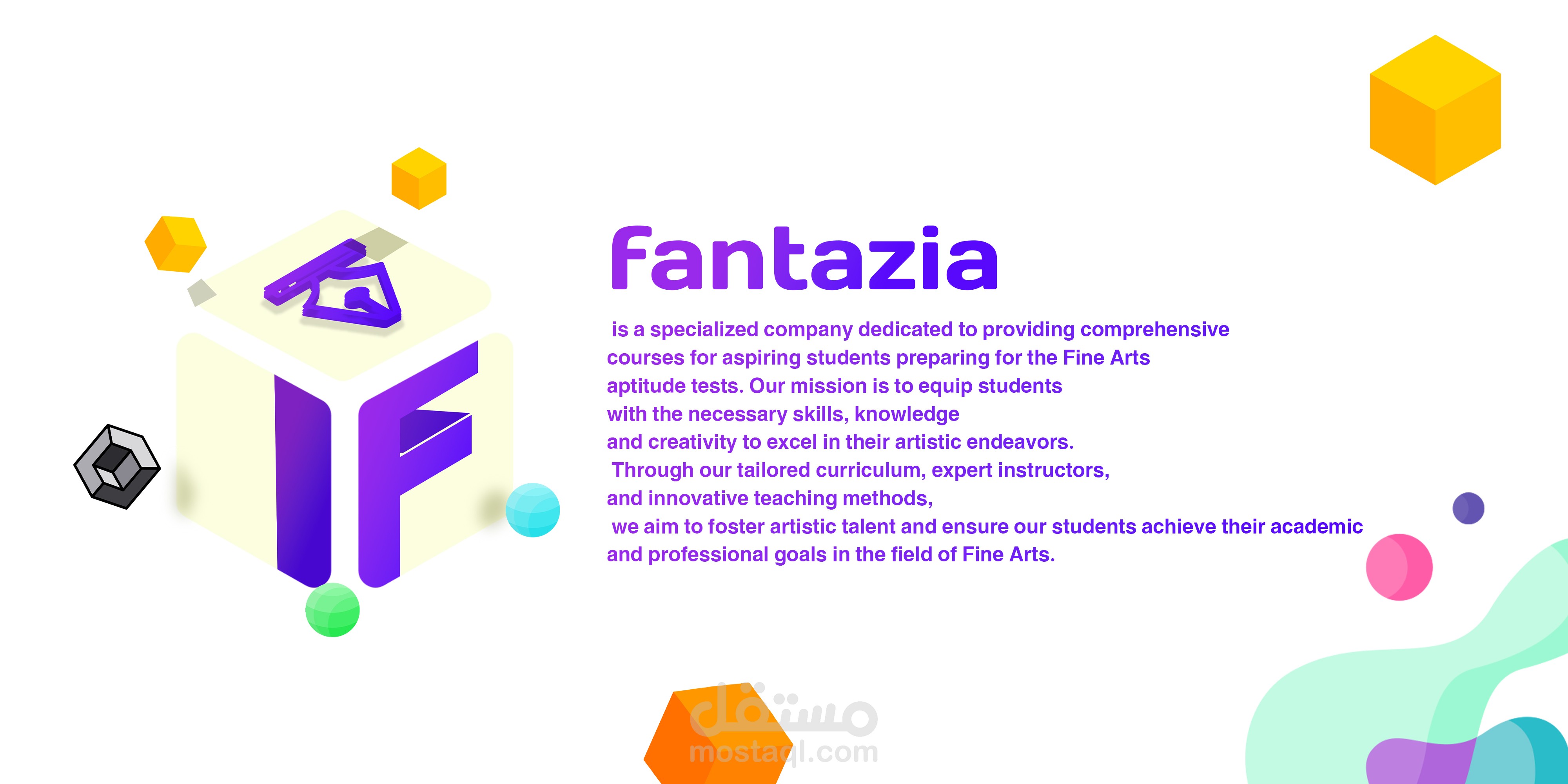 مجموعة تصميمات سوشيال لشركة فانتازيا لكورس قدرات فنون جميلة والكليات الفنية بمصر مع تصميم للوجو وواجهة مستخدم لتطبيقهم
