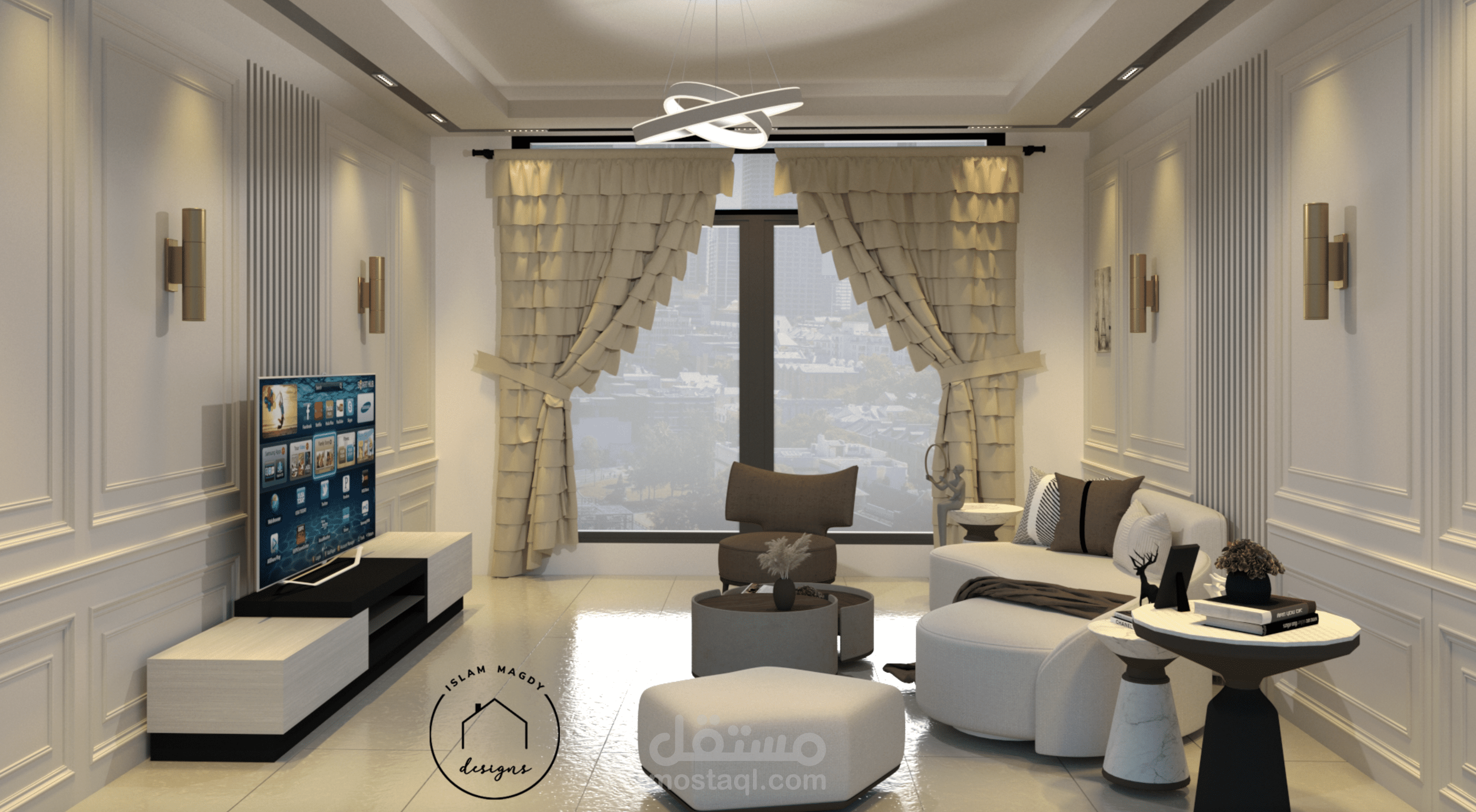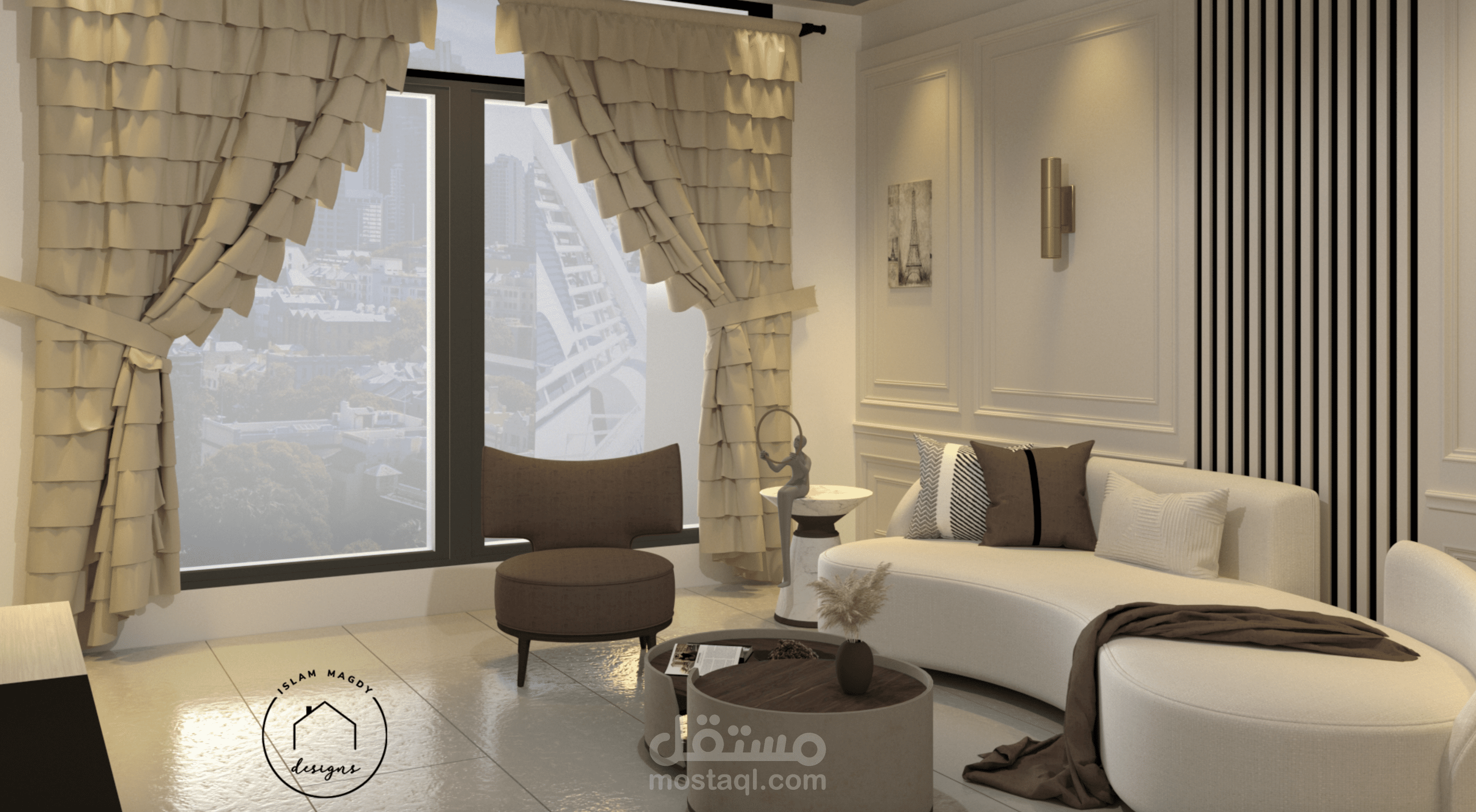 The room is bathed in natural light, thanks to expansive floor-to-ceiling windows that provide breathtaking views of the surrounding cityscape or landscape. These windows create a sense of openness and connectivity with the outside world, while also allowing ample natural light to fill the space.