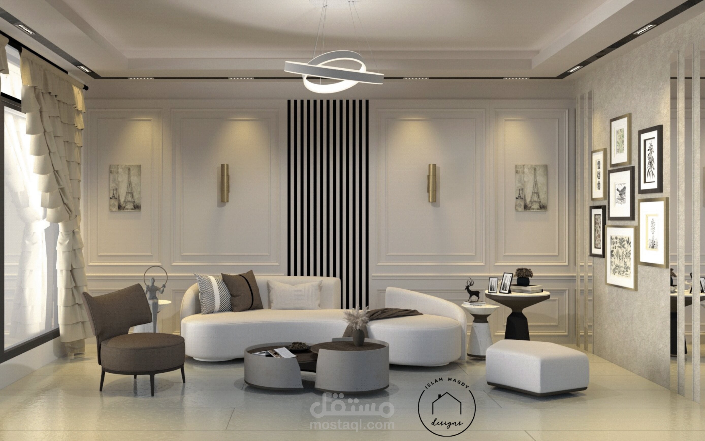 The render picture portrays a sleek and contemporary reception room that exudes sophistication and professionalism. The room features clean lines, a minimalist aesthetic, and an emphasis on open space.
