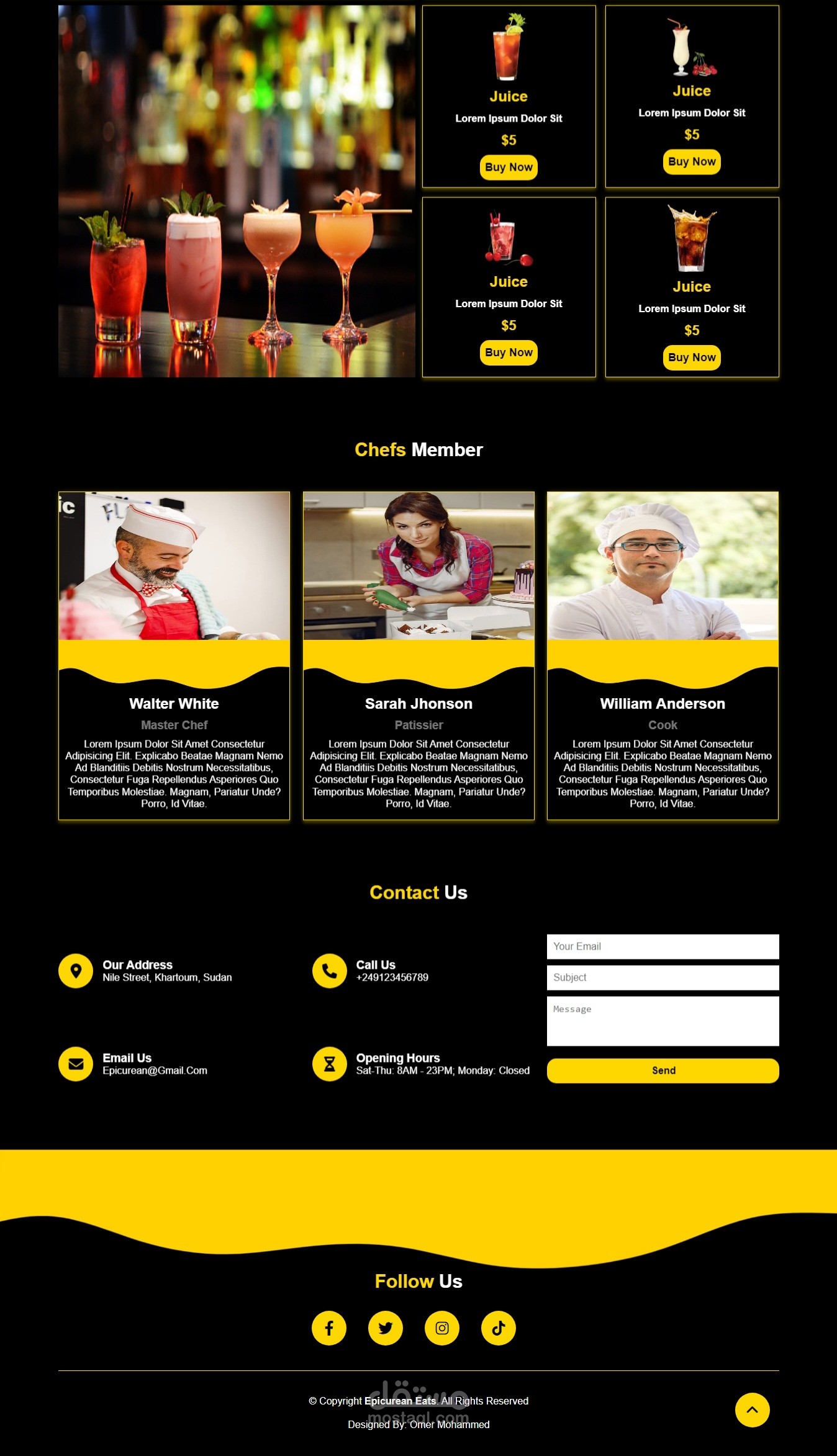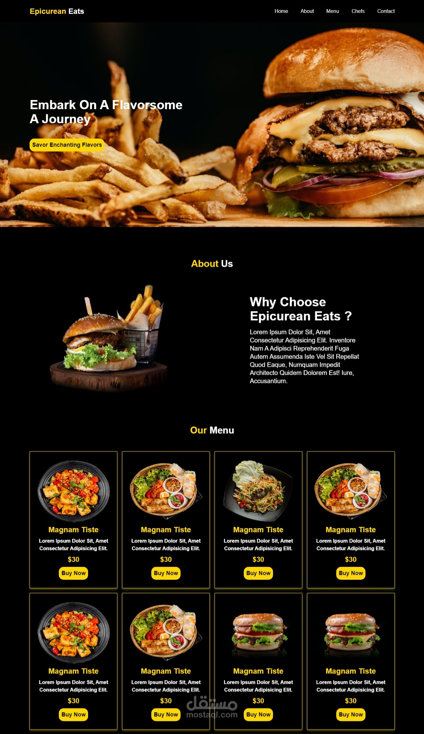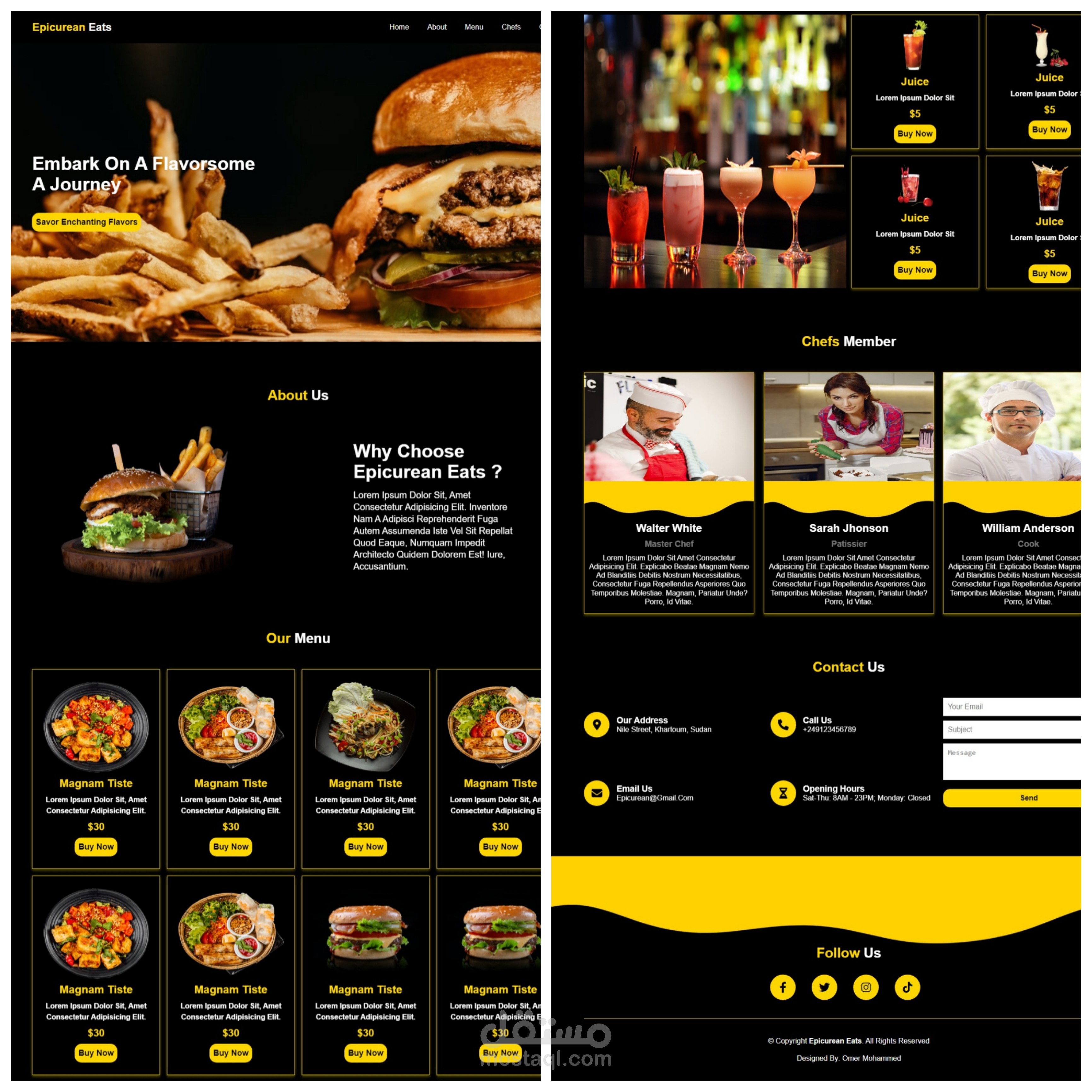 Epicurean-Eats هو وجهتك المثالية للاستمتاع بتجربة طعام استثنائية عبر الإنترنت. يتميز الموقع بتصميمه الأنيق والحديث الذي ينعكس عبقرية المطعم ورؤيته الفريدة.