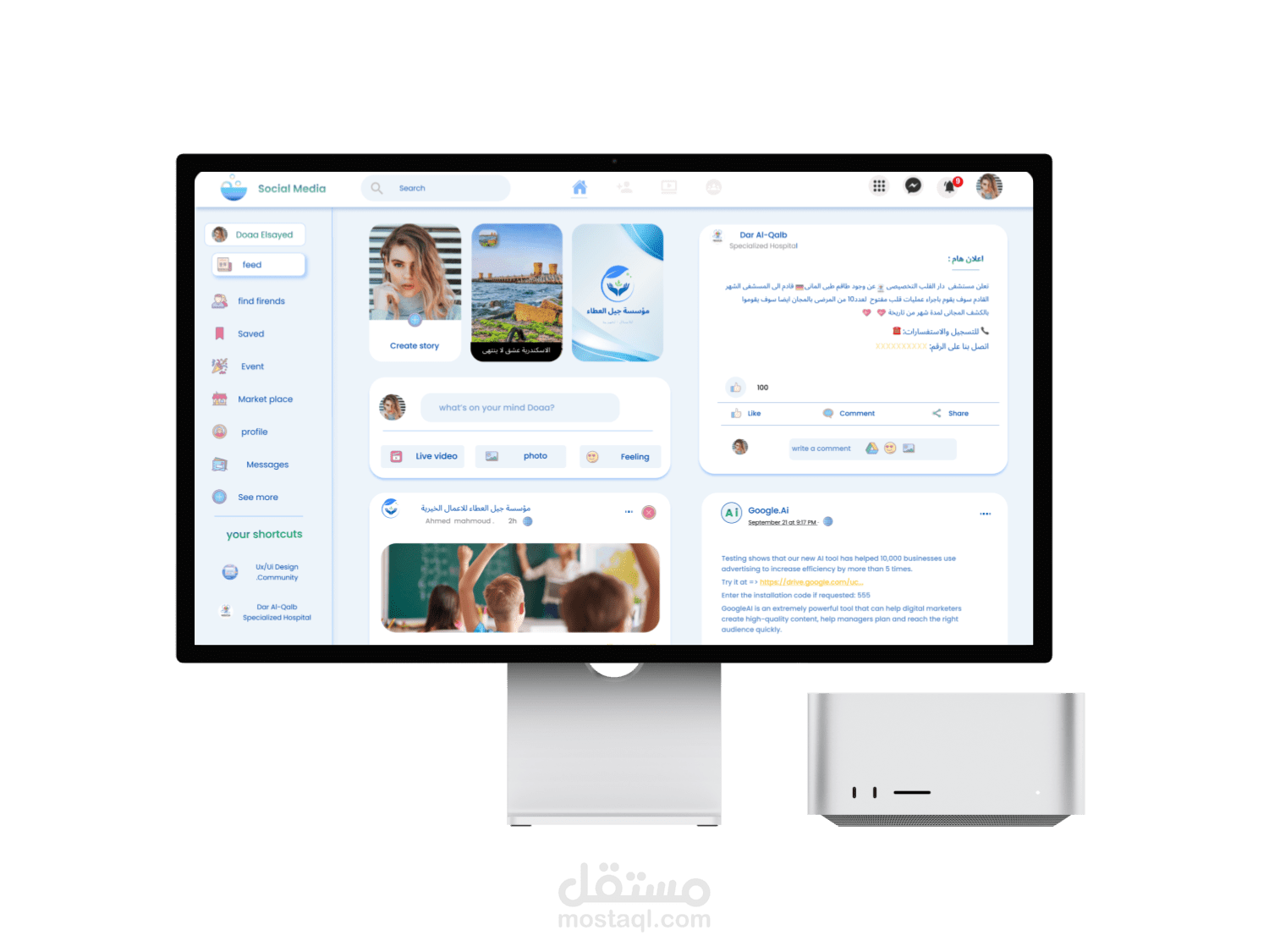 برجكت جديد social Media Feed ه برنامج سوشيال ميديا جديد شبيه للفيس بوك يمكن من خلالة مشاركة المواضيع مع اصدقاءك ايضا عمل مواضيع جديدة والتفاعل مع الاصدقاء الجروبات المشترك بها وعمل شات مع الاصدقاء ارجو ان ينال العمل على اعجاب حضراتكم