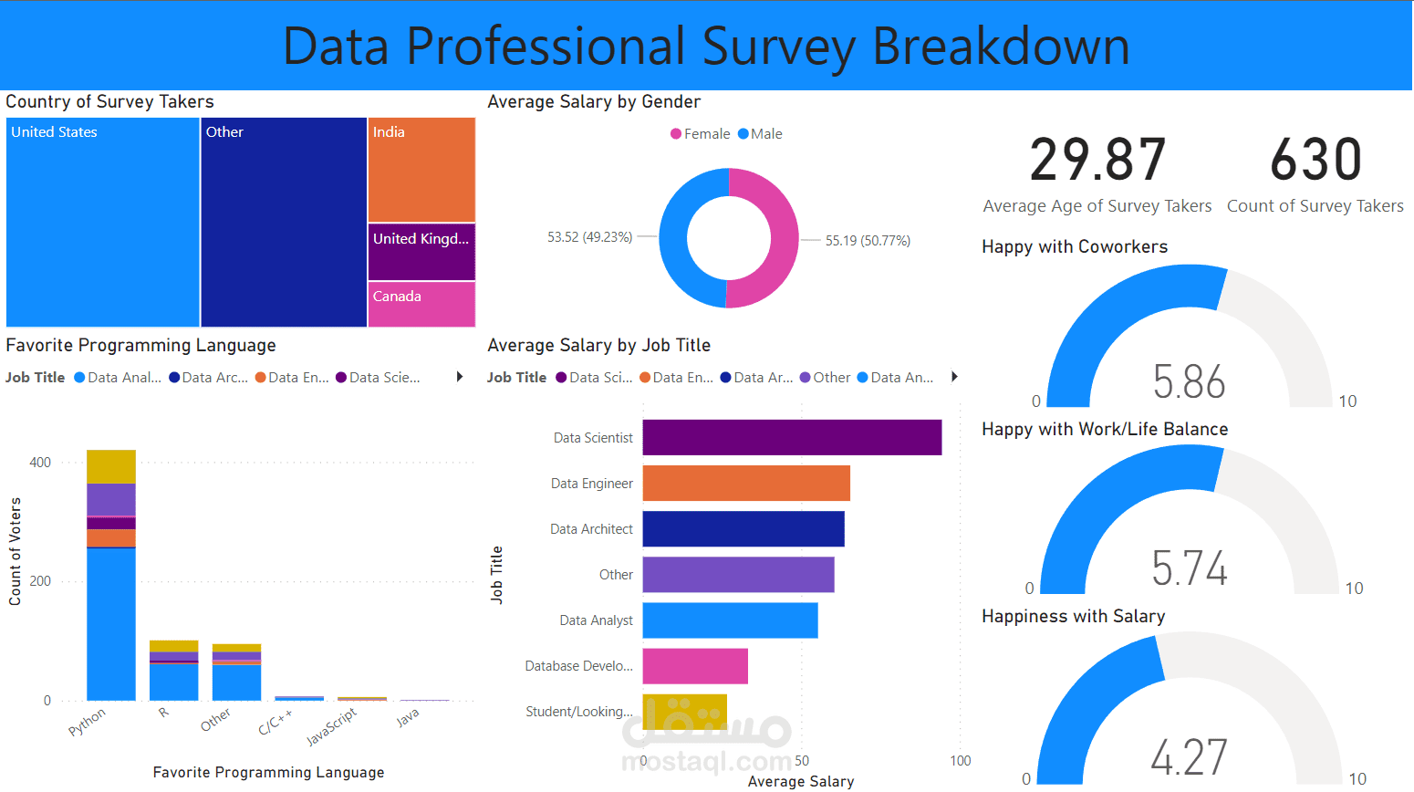 تحليل استبيان خاص ببيانات شاغلي وظائف البيانات وعرضها علة باور بي اي
