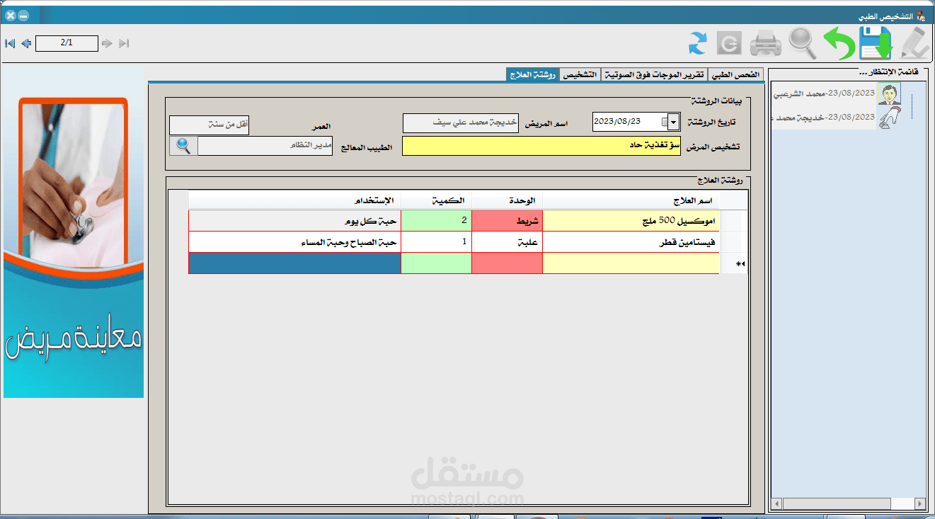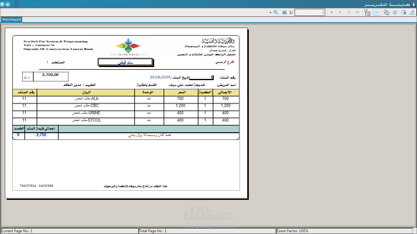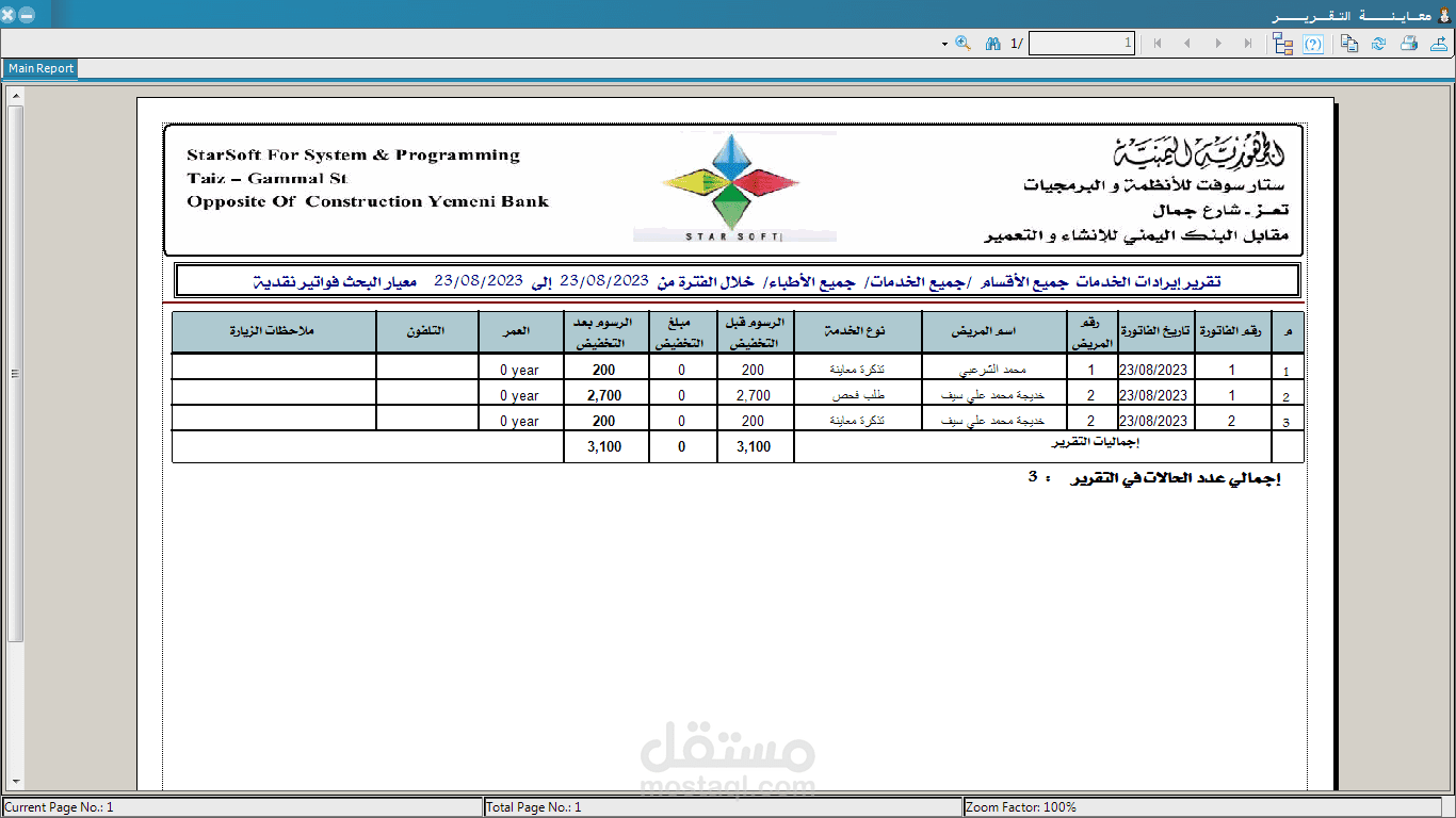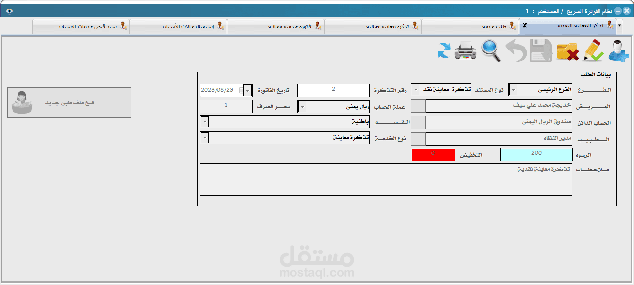 تم تطوير النظام من قبل شركة ستارسوفت للأنظمة بحيث يتلائم النظام مع طبيعة عمل اي عيادة طبية كبيرة ام صغيرة و يعمل النظام على حفظ بيانات المرضى و كل مايتعلق بزيارة المريض إلى العيادة ابتدا من دخول المريض و قطع تذكرة معاينة و عمل الفحوصات و تسجيل تشخيص المرض للمريض و صرف العلاج و حتى خروج المريض من العيادة