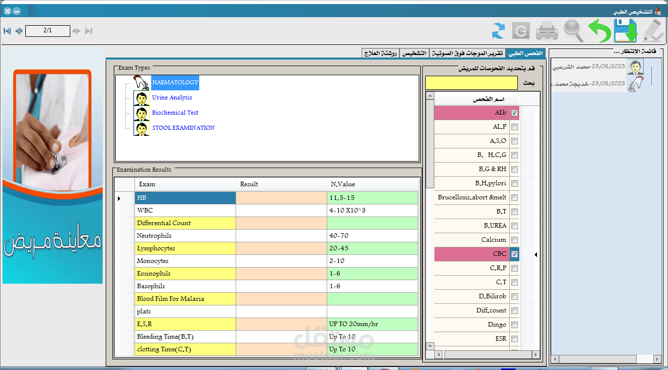 تركيب النظام في الاستقبال و عند الطبيب و في المختبر من خلال شبكة داخلية في العيادة مجانا .
