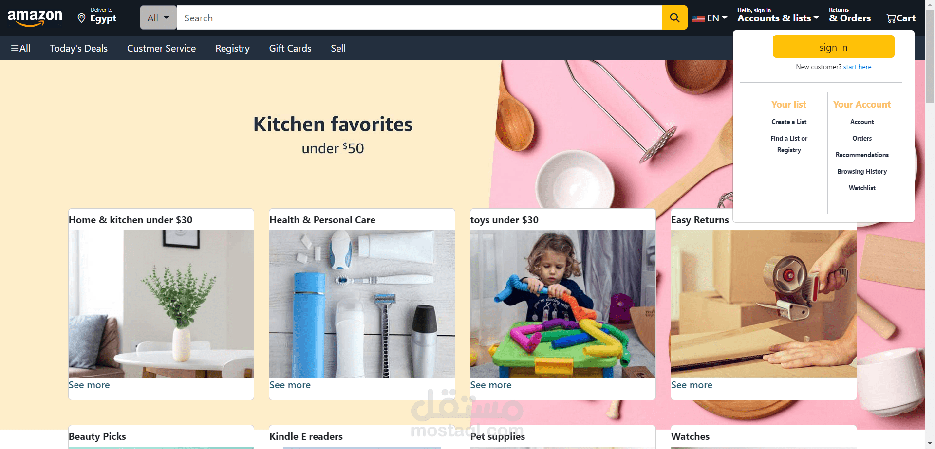 This is an Amazon Clone. I did this project using html, Css, JavaScript, Jquery and Bootstrap. This a simple website consists of 3 pages: landing page that fetches products for fake API, sign in page and sign up page.