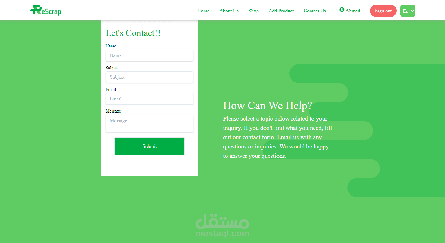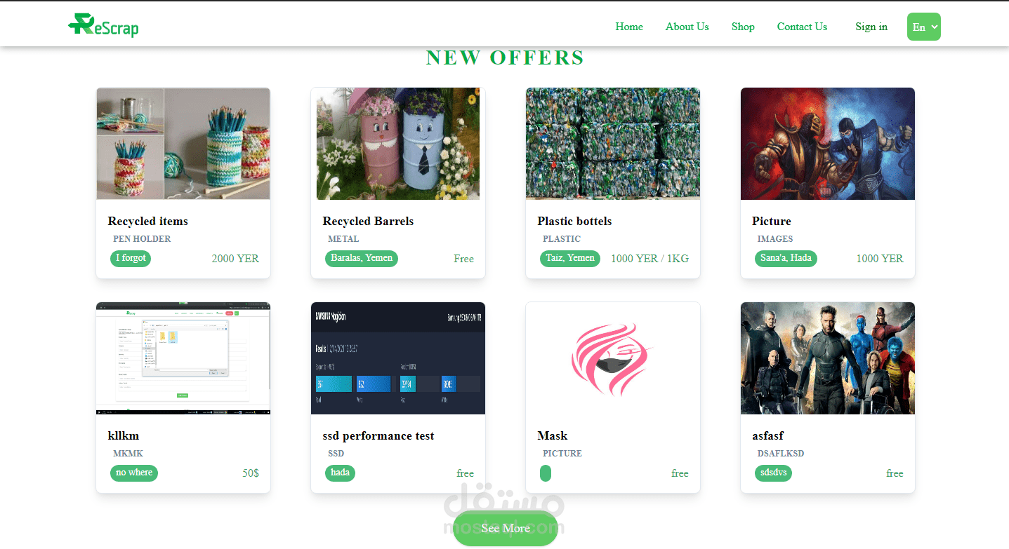 المشروع عبارة عن متجر يسمح لمن يمتلك اجهزه او خرده او اثاث او اي مواد بالتبرع بهذه المواد او بيعها للاشخاص الموهوبين والمبتكرين الذين يمكنهم اعادة تدوير مثل هذه المواد او اعادة استخدامها من اجل المساهمه في تحسين البيئة.