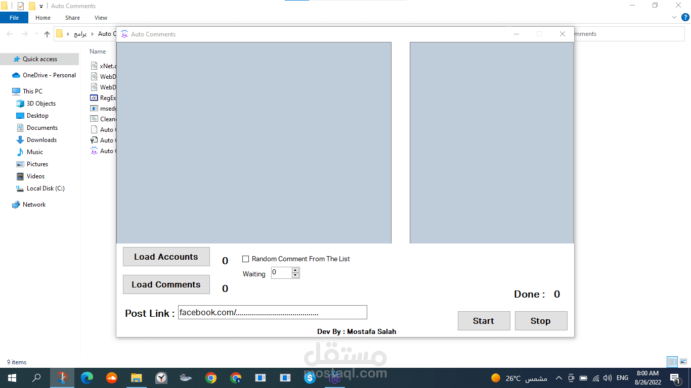 برنامج عمل تعليقات تلقائى بستخدام الكوكيز كل المطلوب منك بتحط ليسته الكوكيز وليسته تعليقات من اختيارك ورابط البوست وهو هيعمل لايك وتعليق على البوست