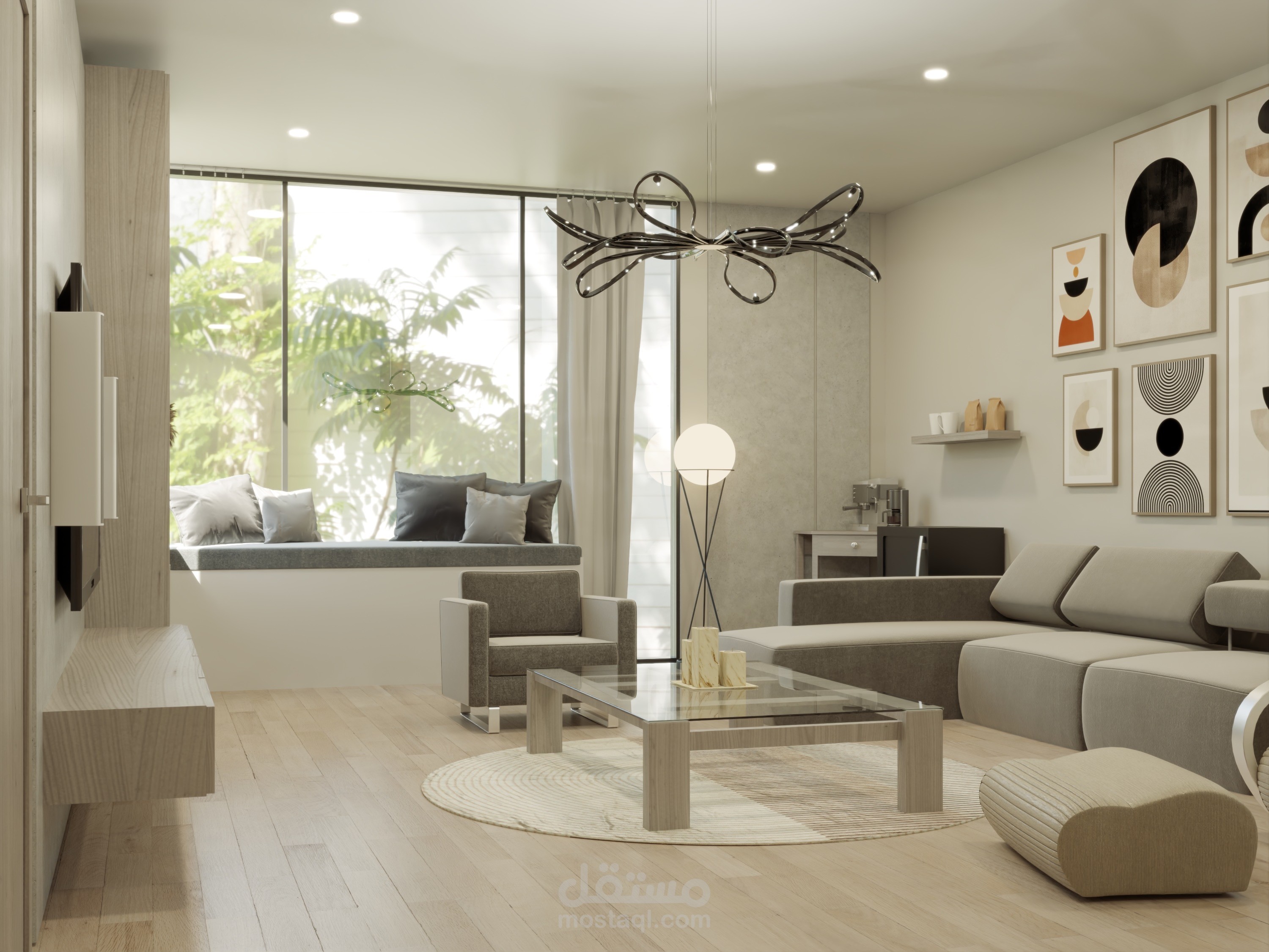 تدور غرفة المعيشة العائلية حول جمع العائلة معًا للاستمتاع و الاسترخاء وخلق ذكريات جميلة، لذا فإن المفهوم هنا هو جعل المساحة مريحة وممتعة، والأسلوب المثالي الذي يتماشى مع هذه الأجواء هو الطراز الحديث.