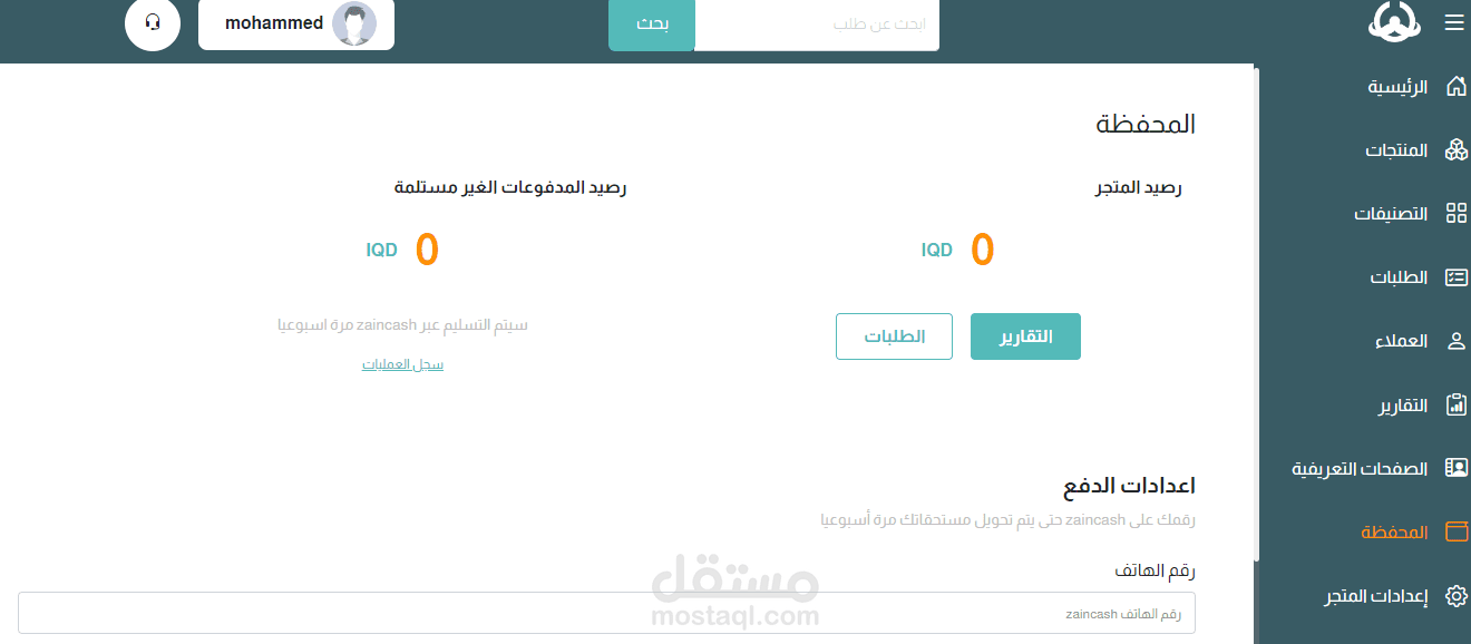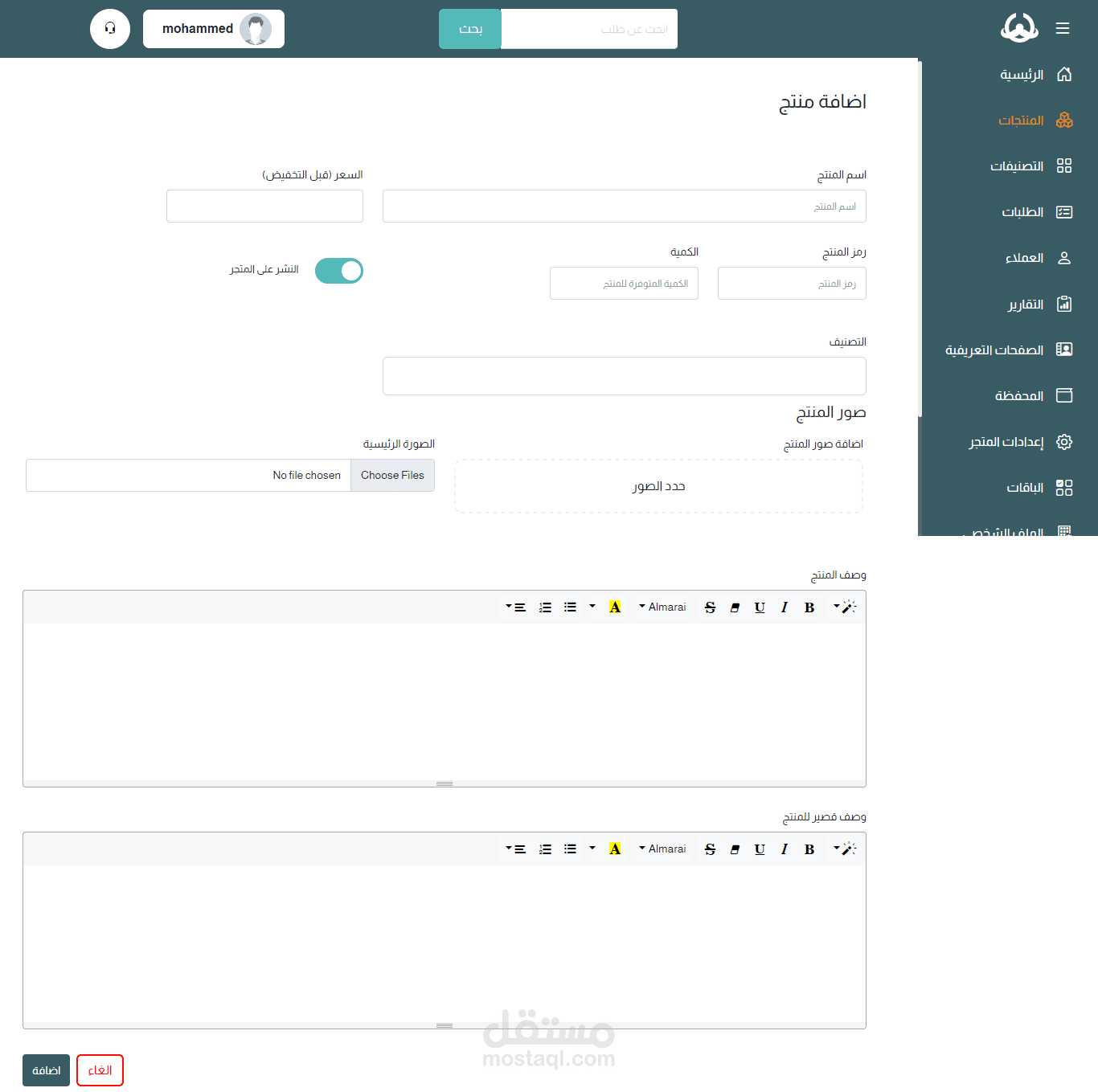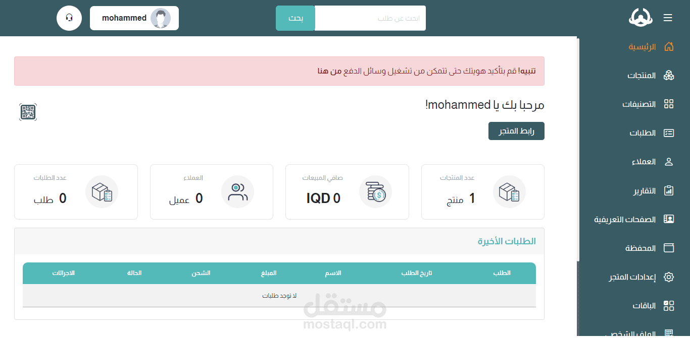 ** لوحة تحكم كاملة للتجار مع ادارة المنتوجات و الخزون و الزبائن