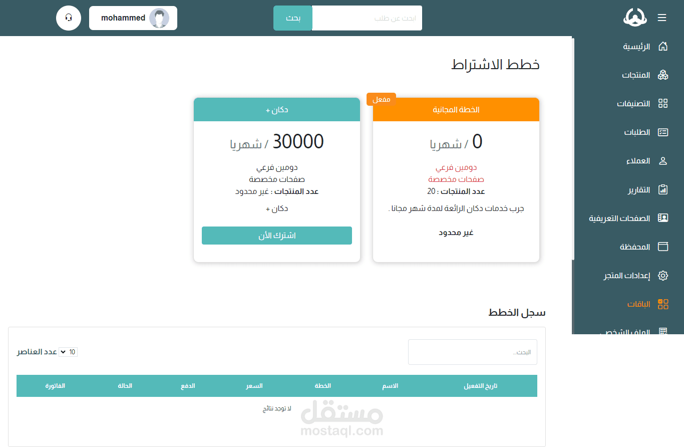 ** توفر اشتراكات بالمدة saas للحصول على متجر + نضام cms متكامل لادارة المتجر و الفواتير