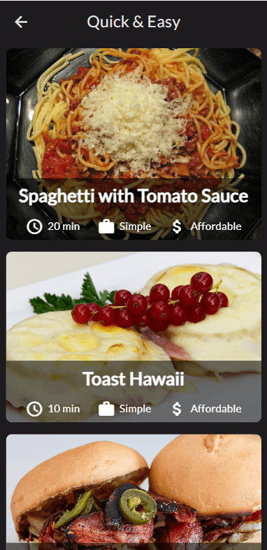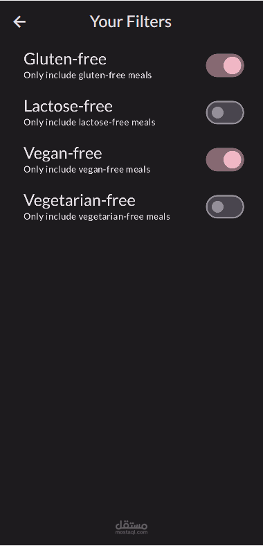 Meals app: You can navigate between screens, filter data, and save it to favorites using libraries