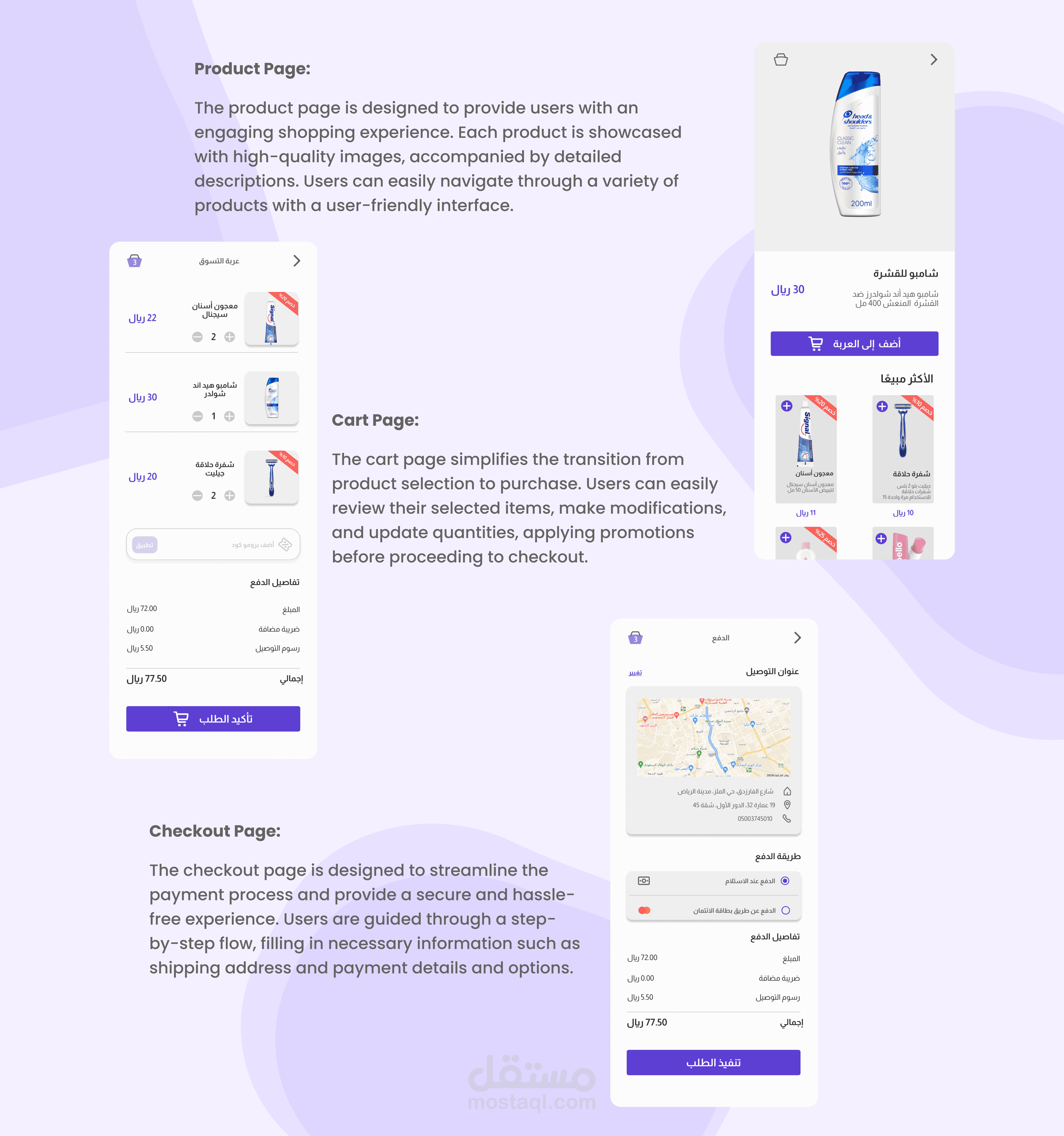 The app includes essential features such as a visually appealing home page, a user-friendly cart system, secure login and signup processes, a streamlined checkout experience, a personalized profile section, the ability to manage personal information, convenient alarm settings, and more.