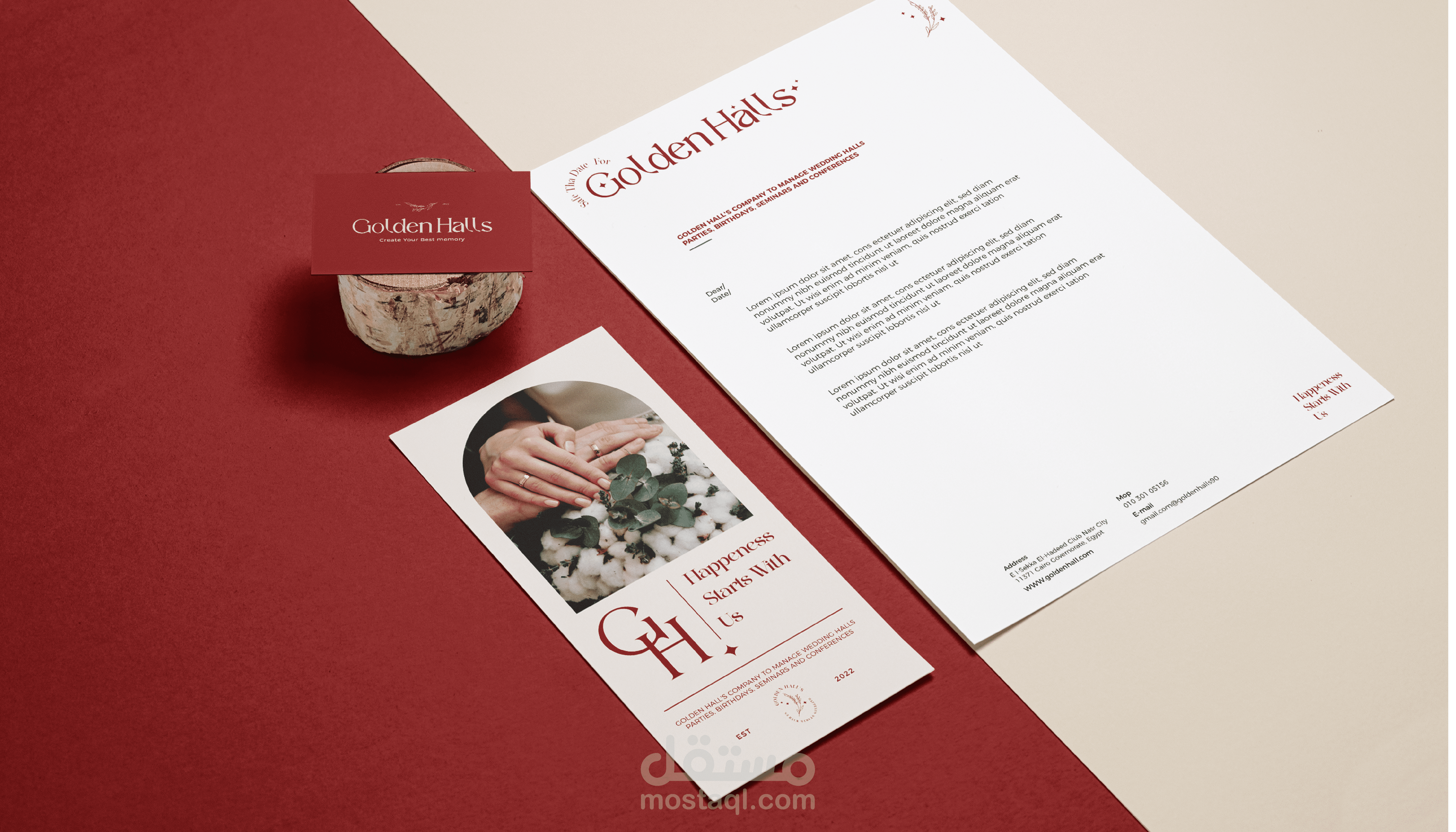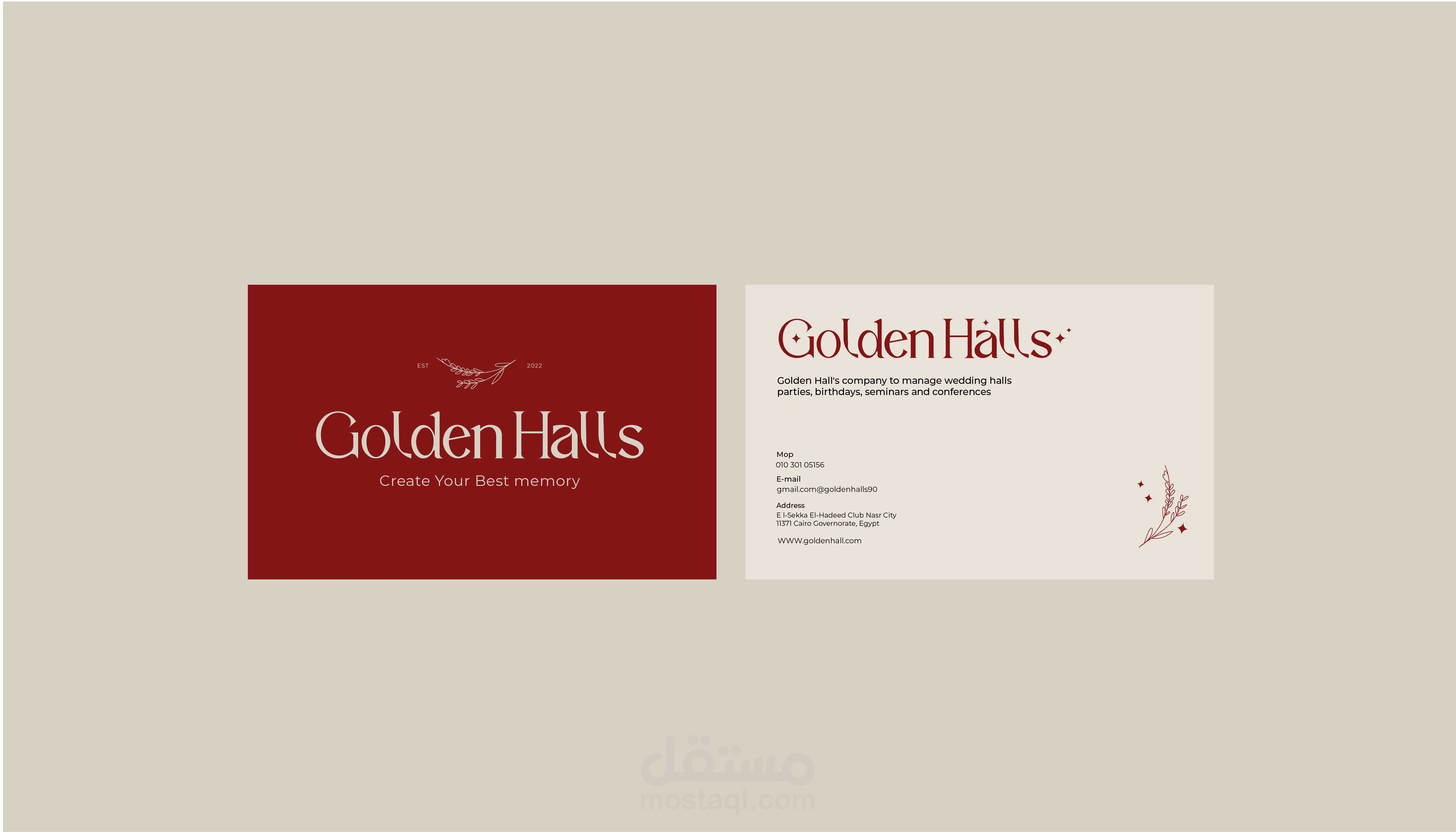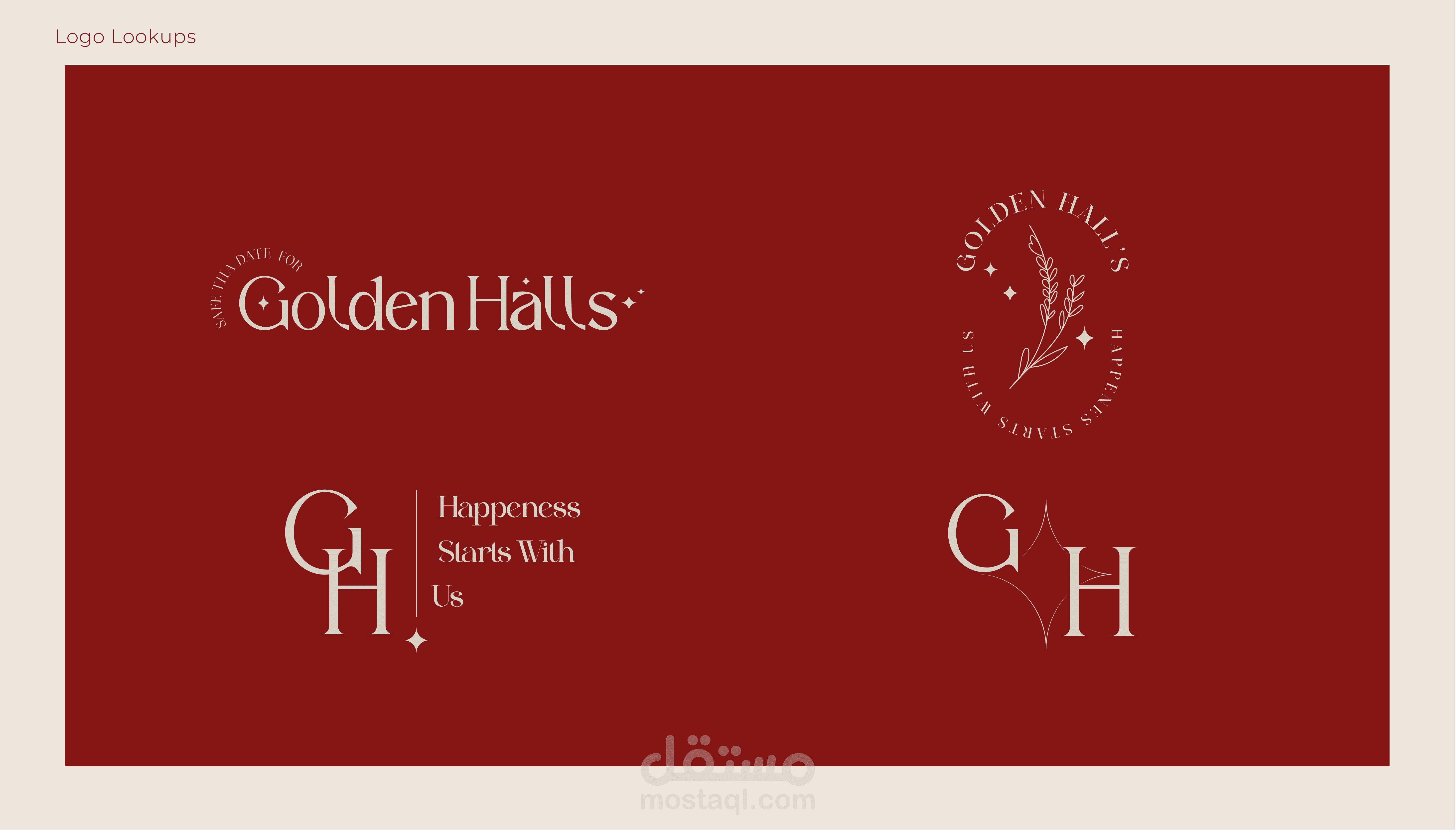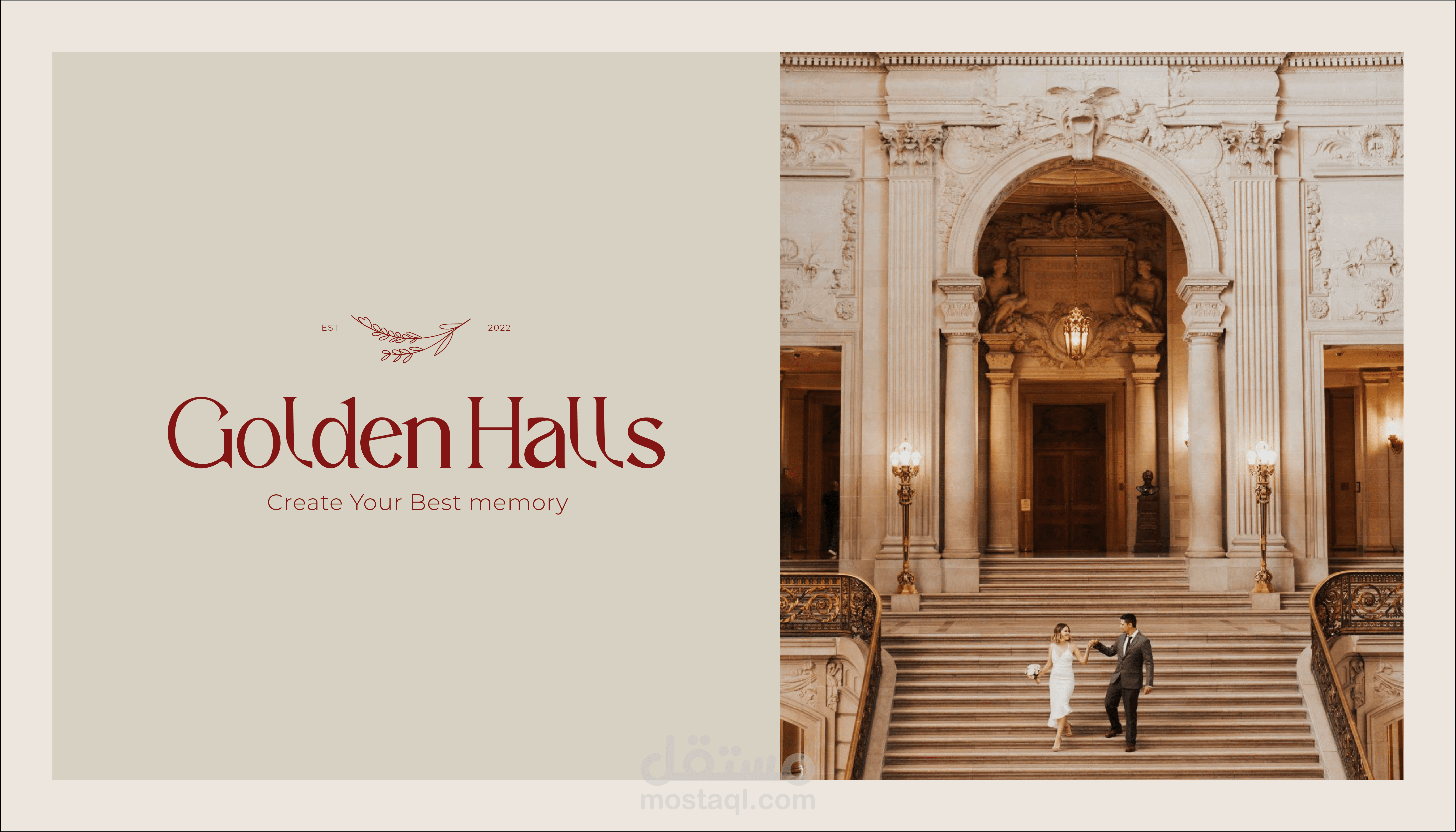 Golden Hall's company to manage wedding halls parties, birthdays, seminars and conferences It is located in Cairo, logo is designed as a typelogo with a modern and luxury look. Egypt